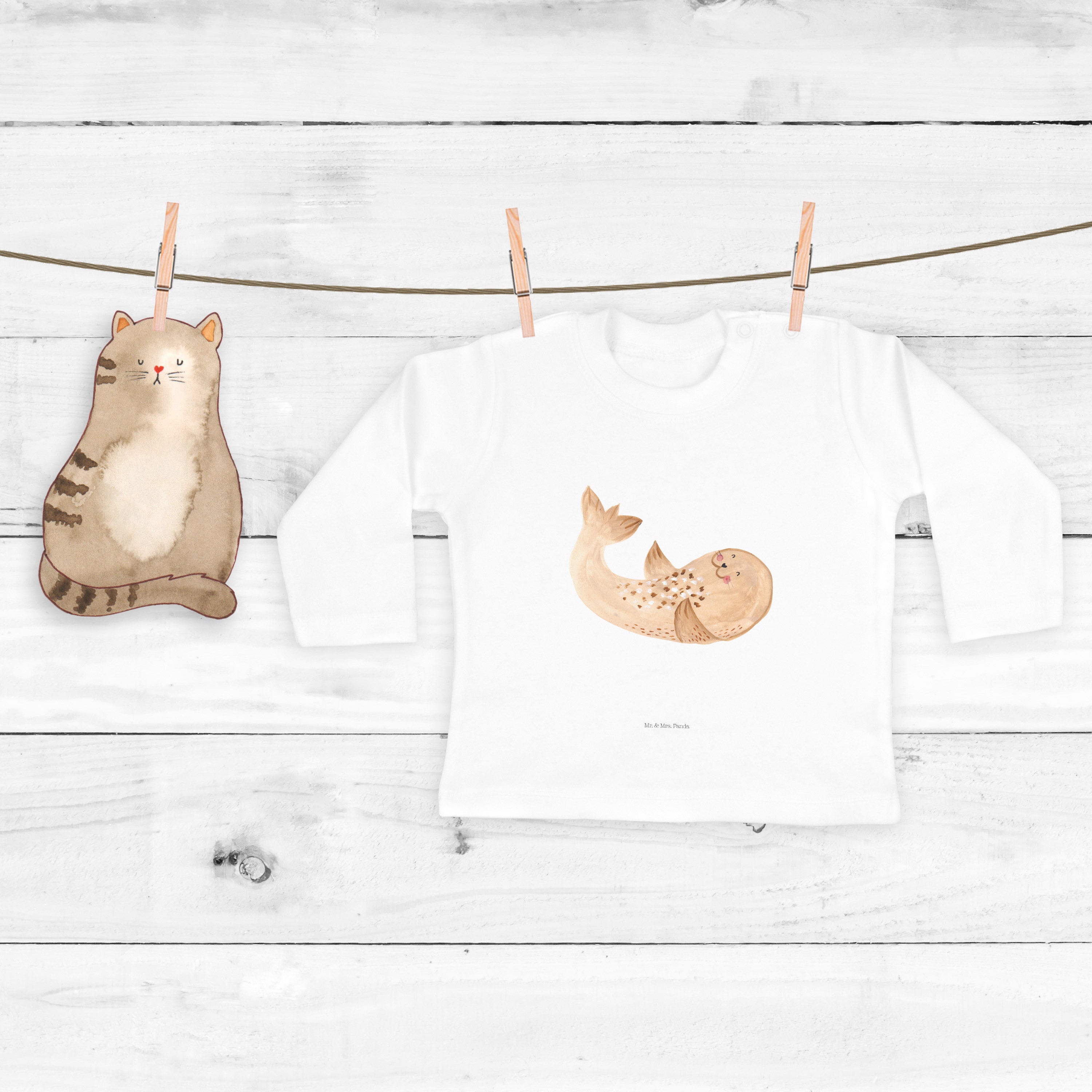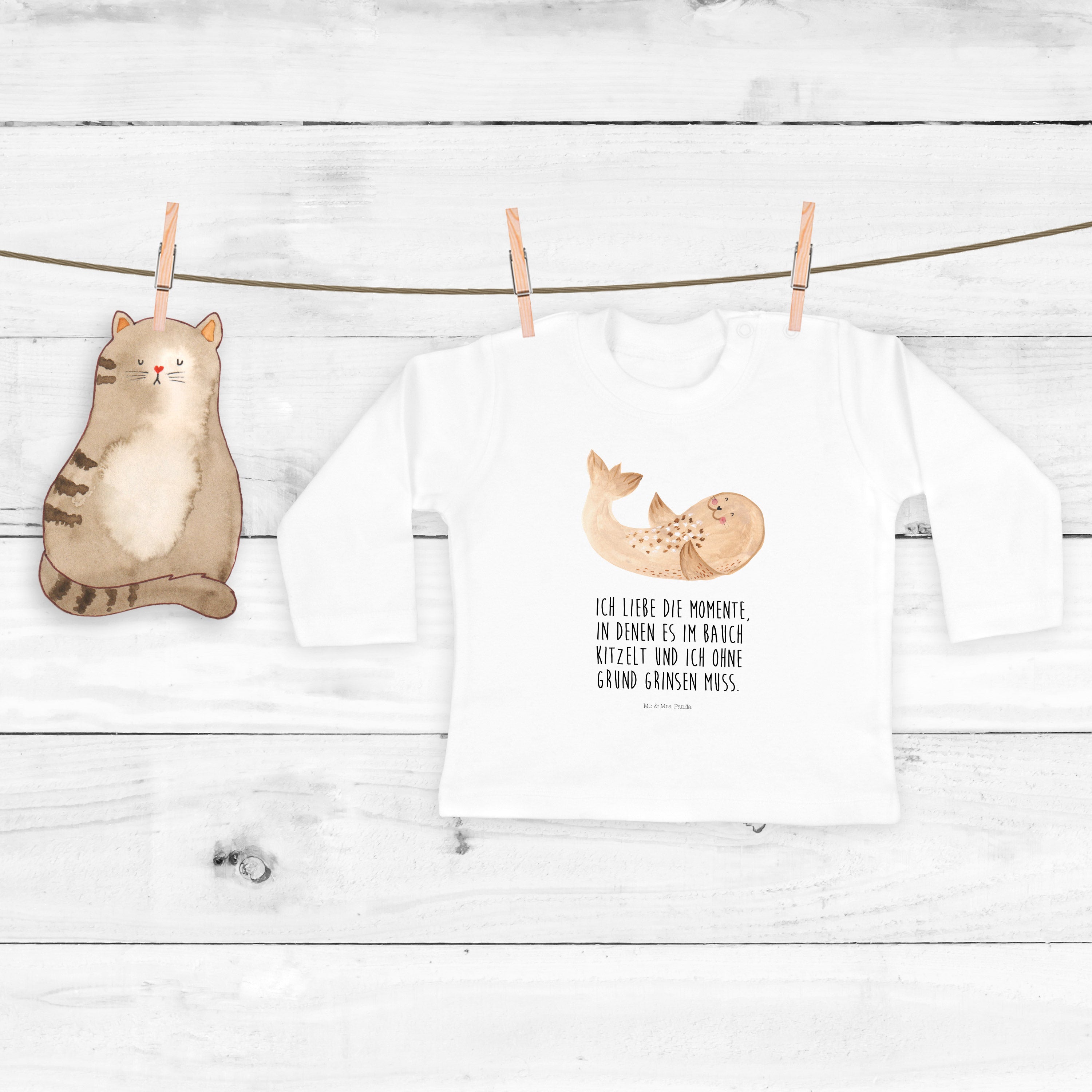 6-12 Monate Baby Longsleeve Robbe liegend - mit Spruch