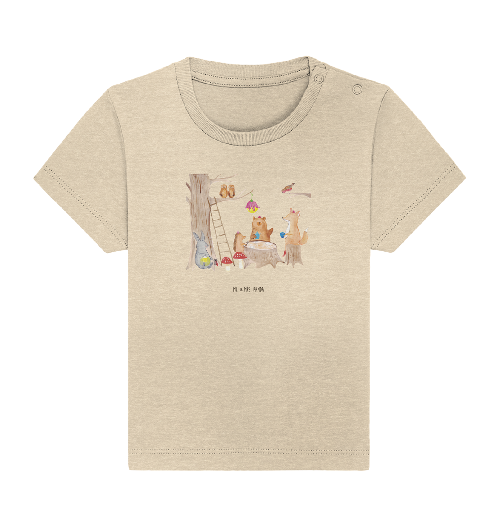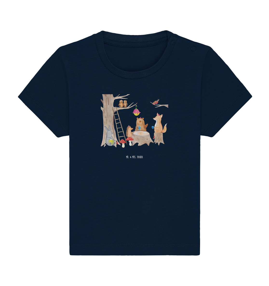 Organic Baby Shirt Waldtiere Picknick - 0. - 6. Monat - mit Spruch - Weiß