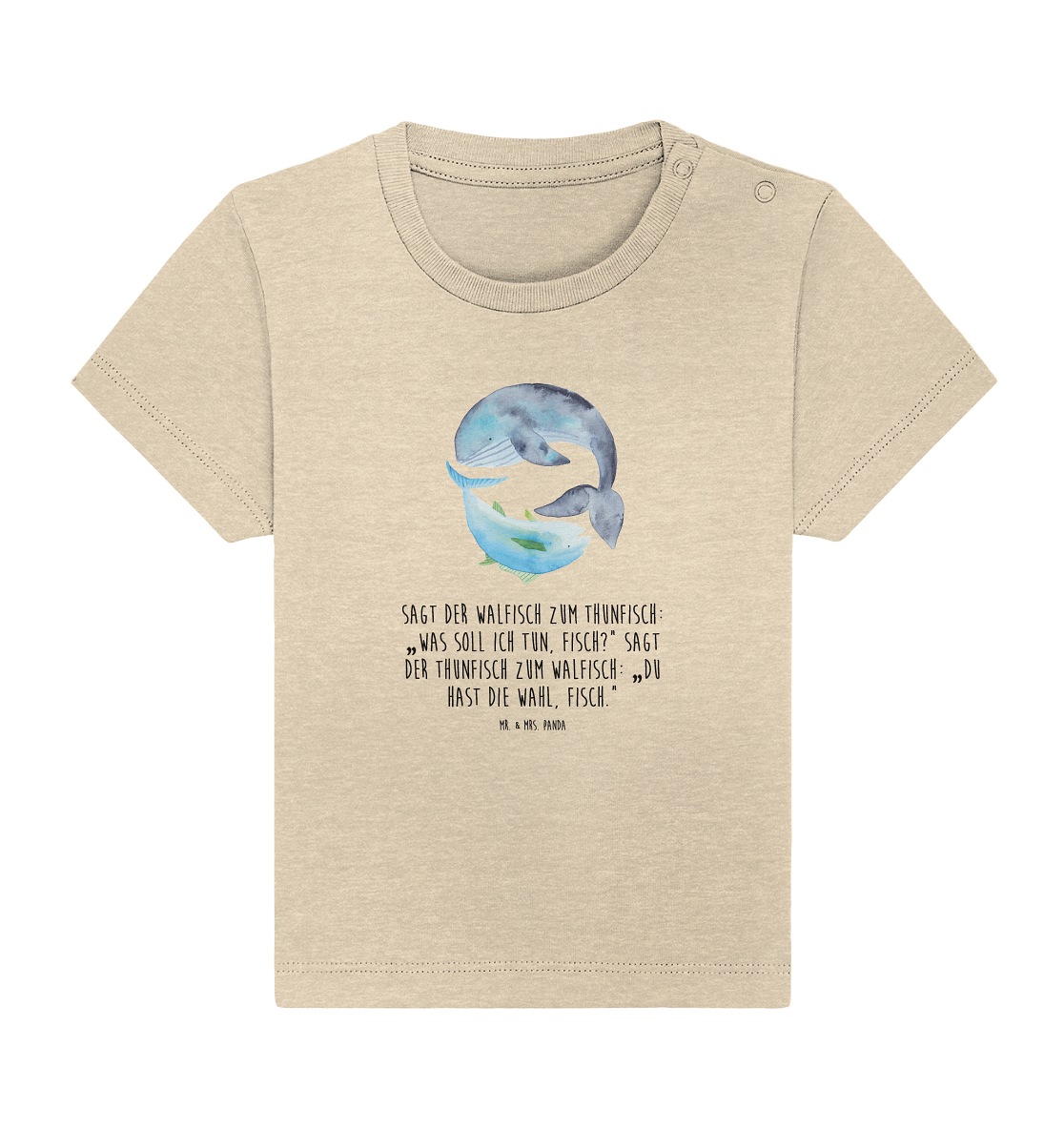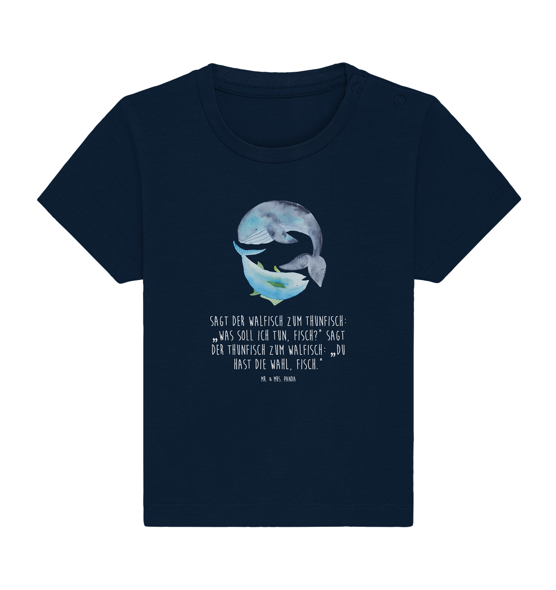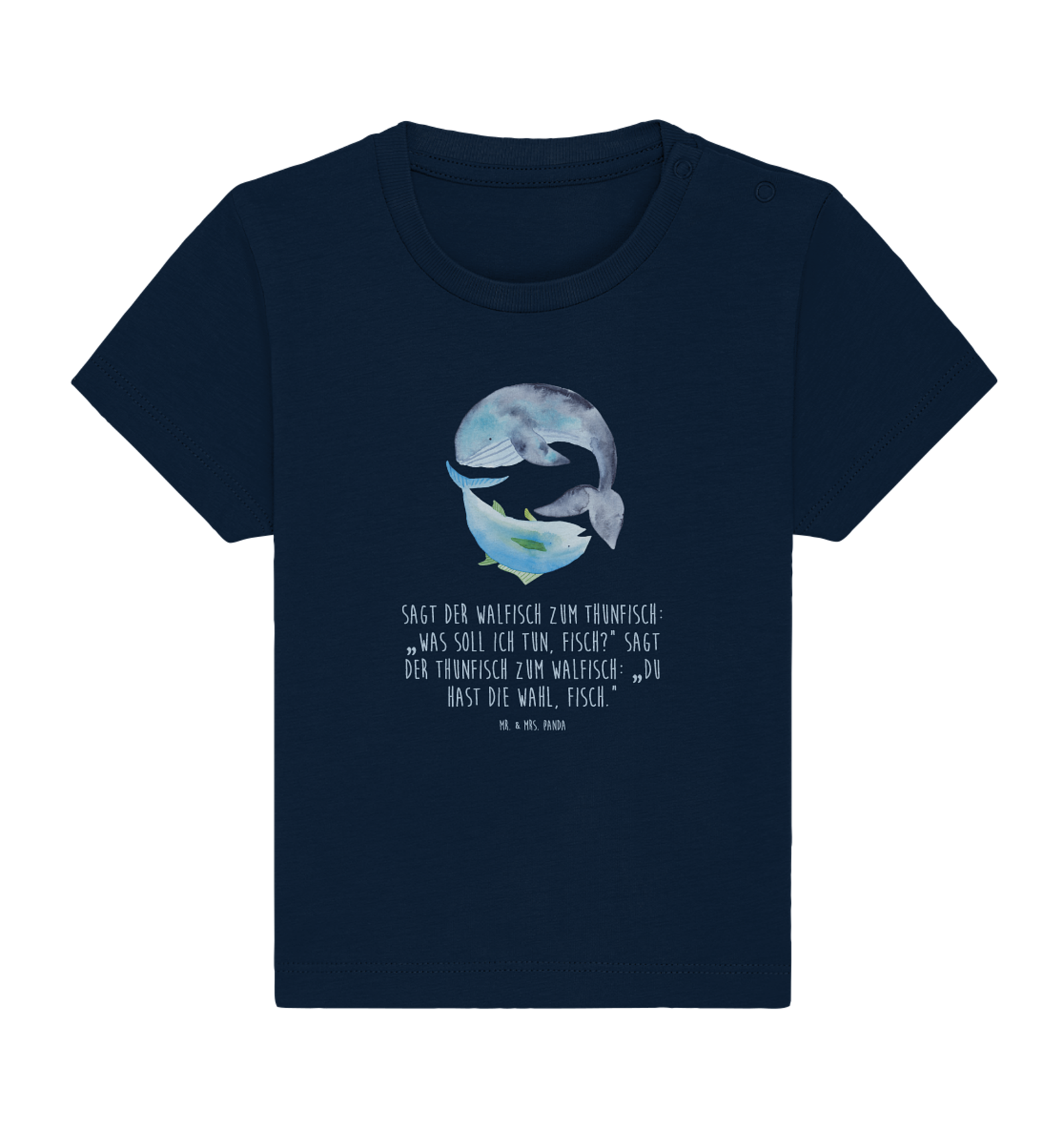 Organic Baby Shirt Walfisch & Thunfisch - 0. - 6. Monat - mit Spruch - Weiß