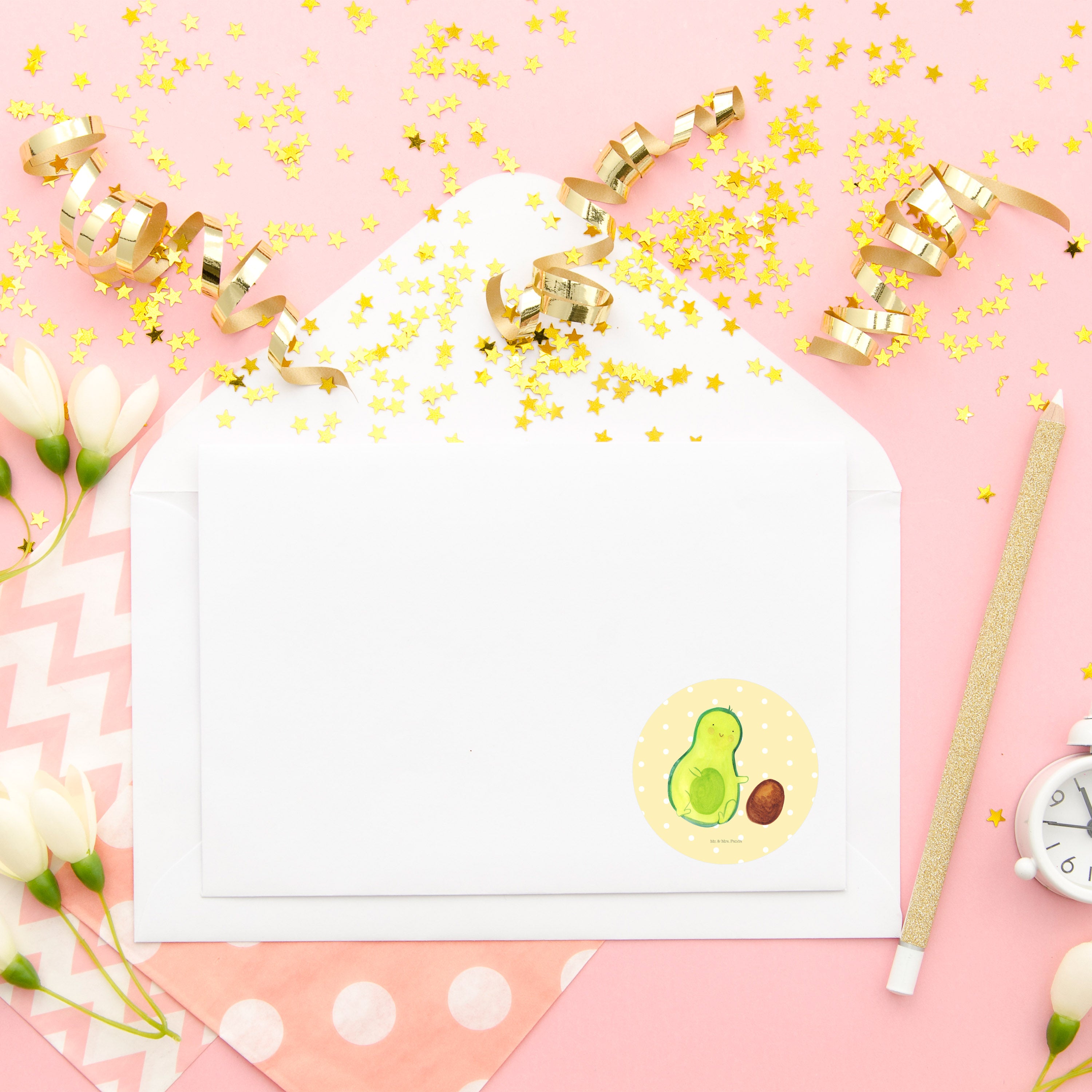 40mm Rund Aufkleber Avocado rollt Kern - mit Spruch - Weiß