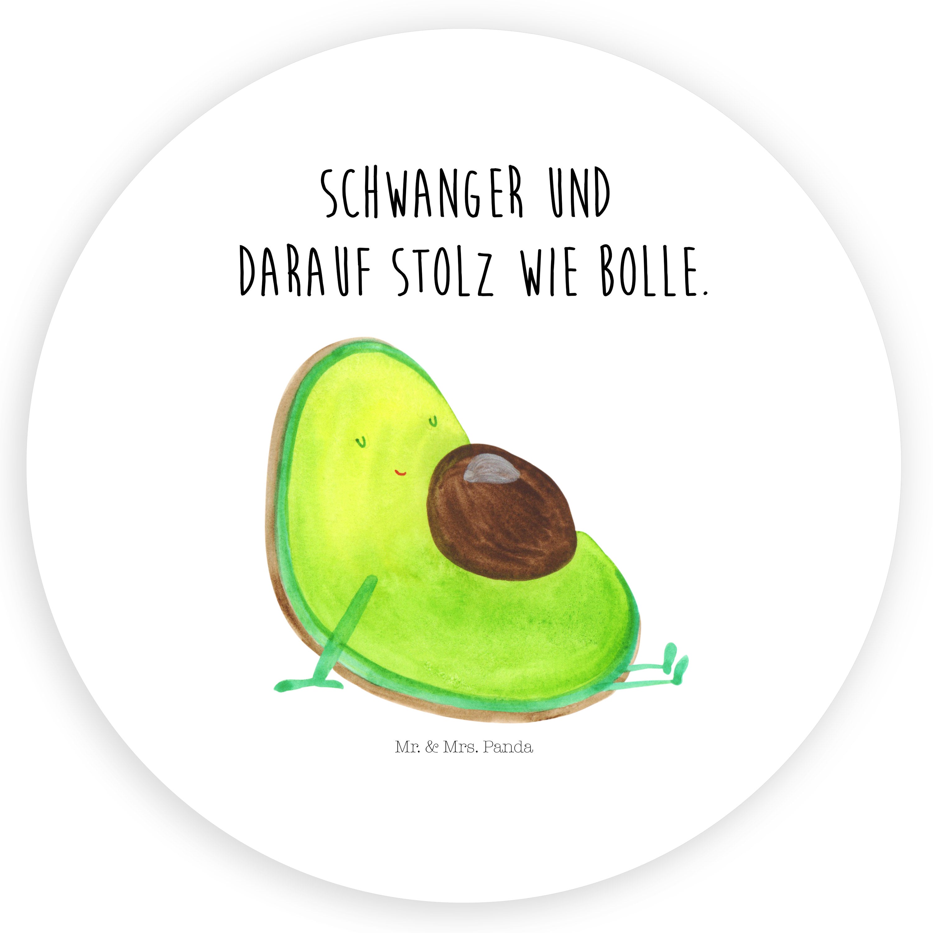 40mm Rund Aufkleber Avocado schwanger - mit Spruch - Weiß
