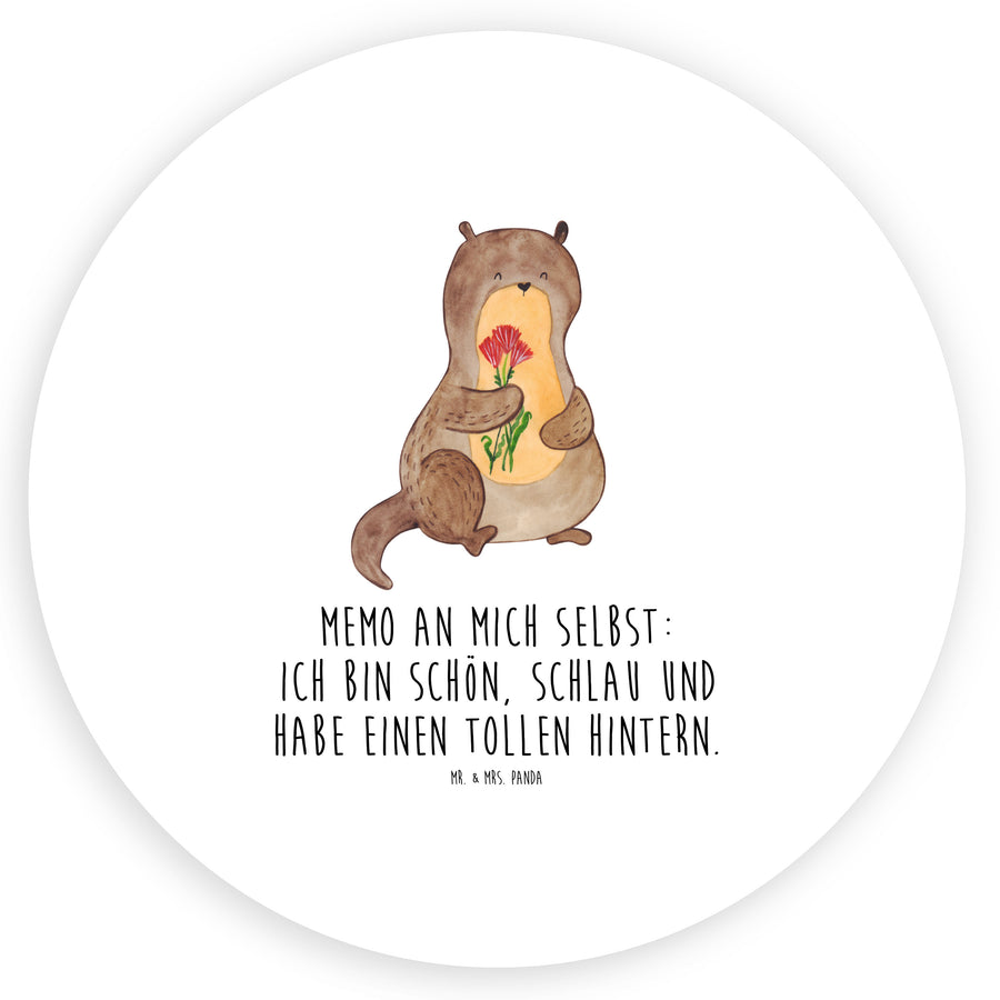 40mm Rund Aufkleber Otter Blumenstrauß - mit Spruch - Weiß
