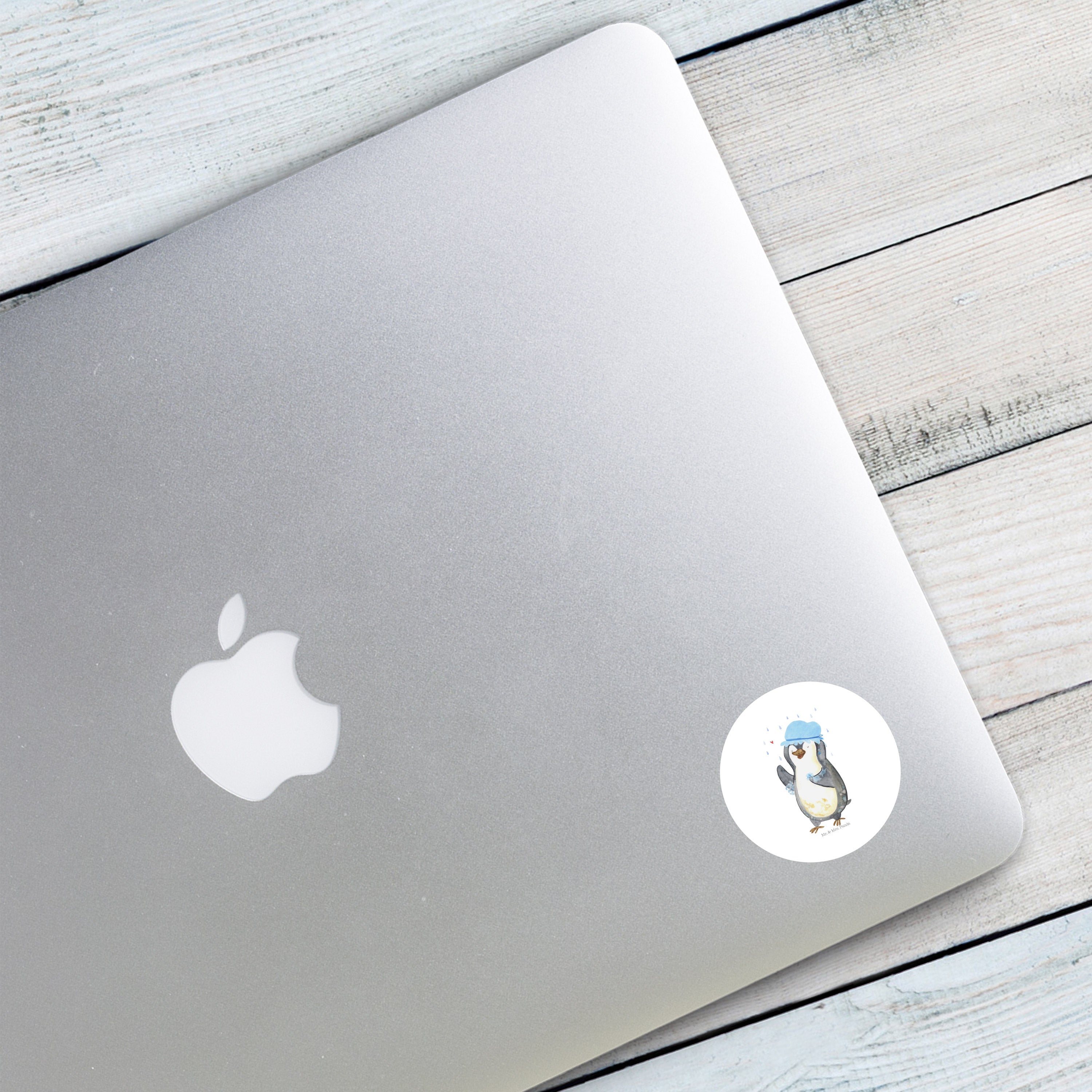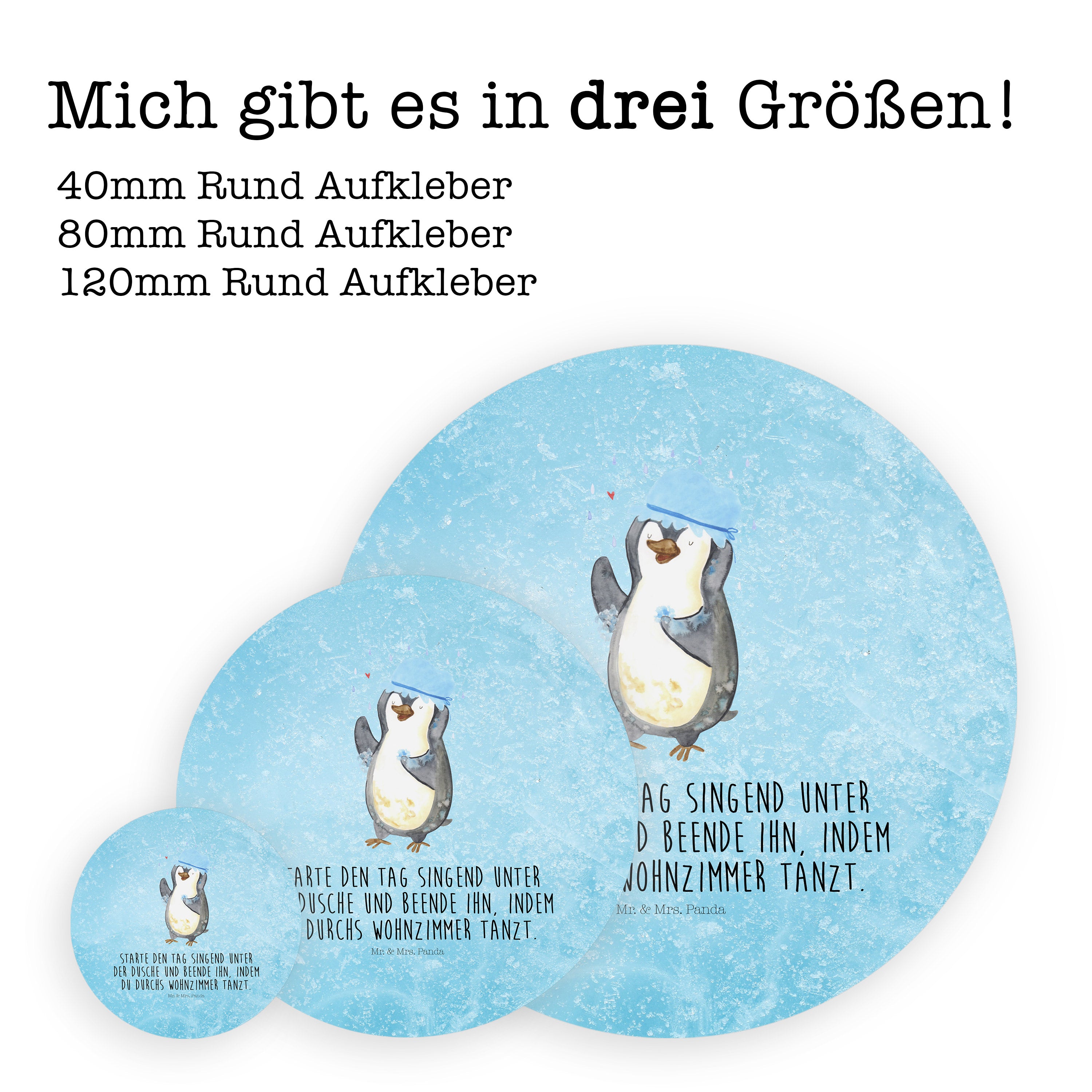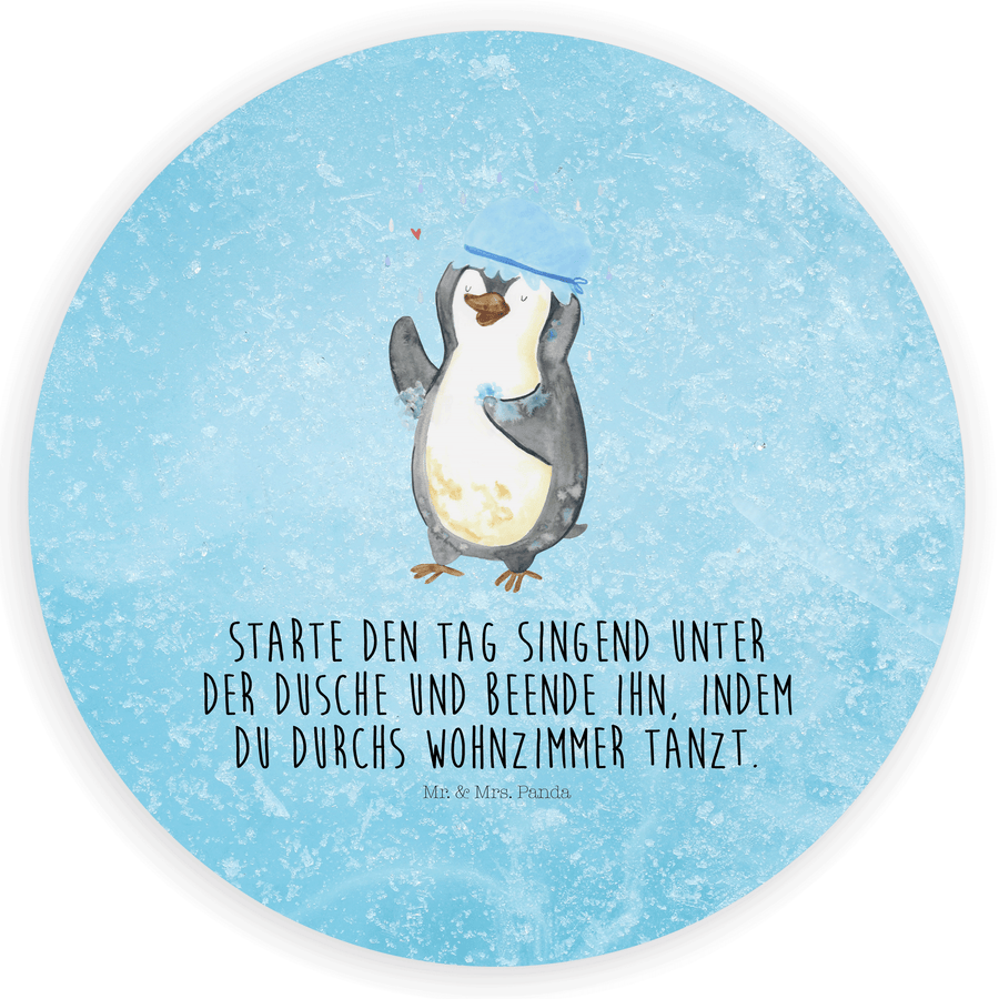 40mm Rund Aufkleber Pinguin duscht - mit Spruch - Eisblau