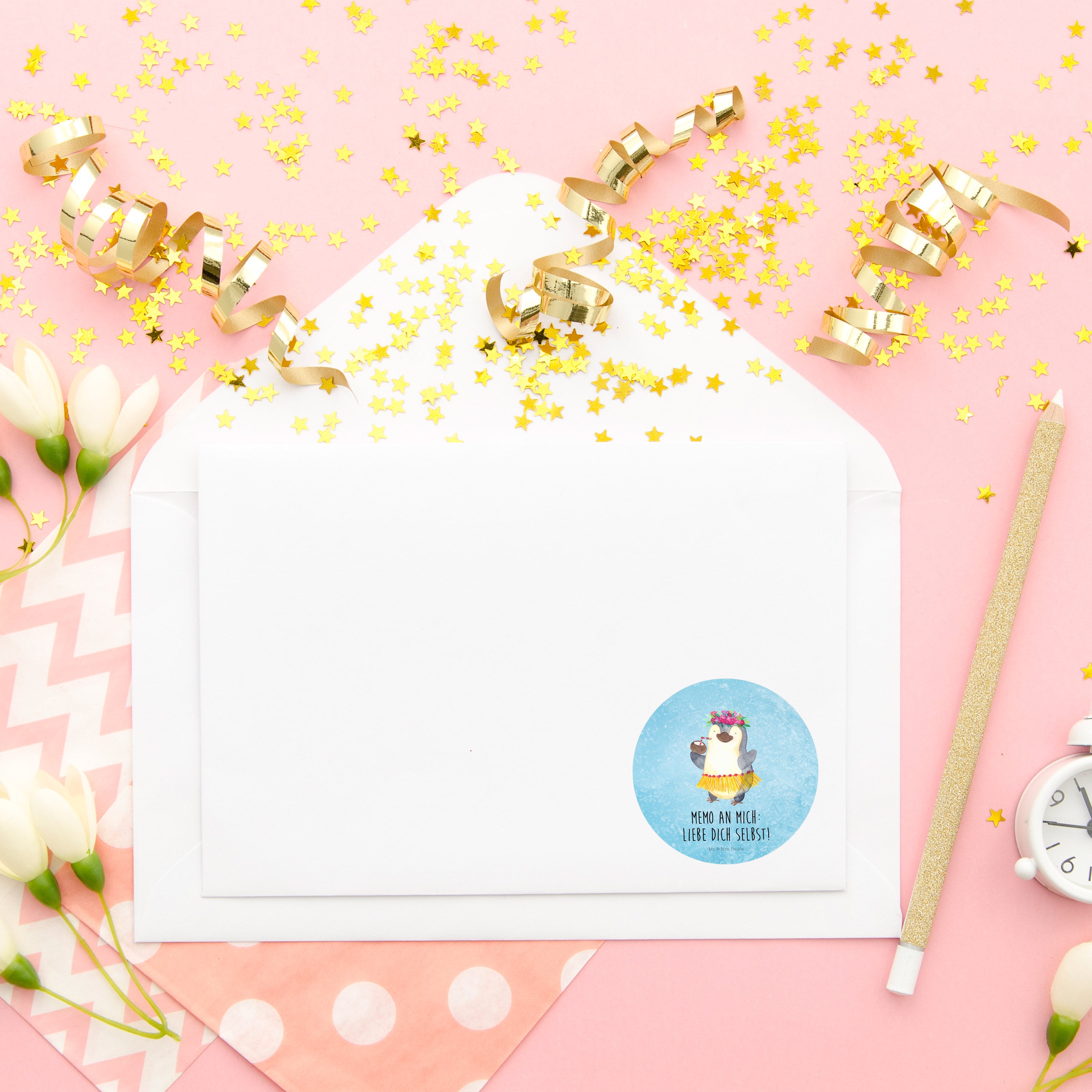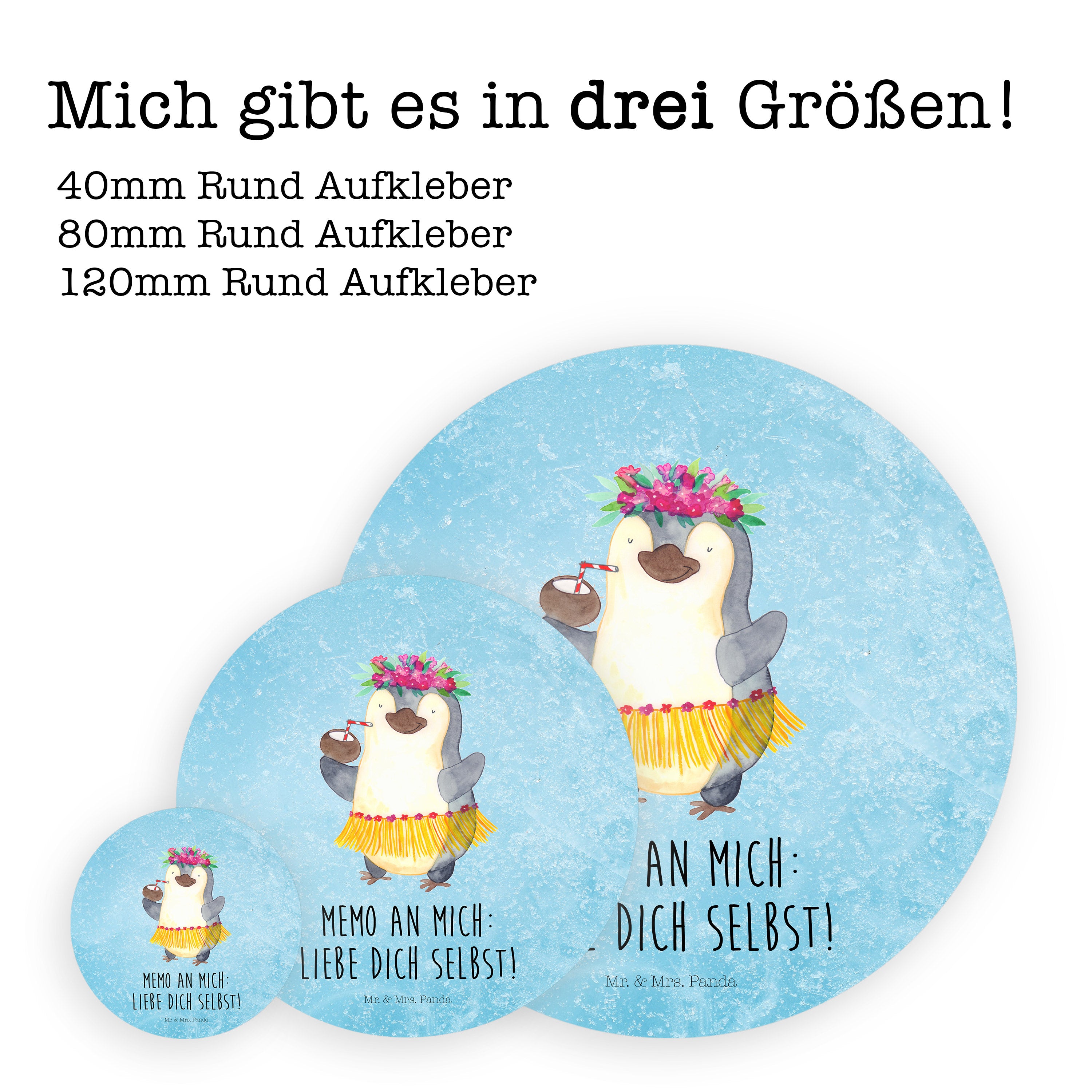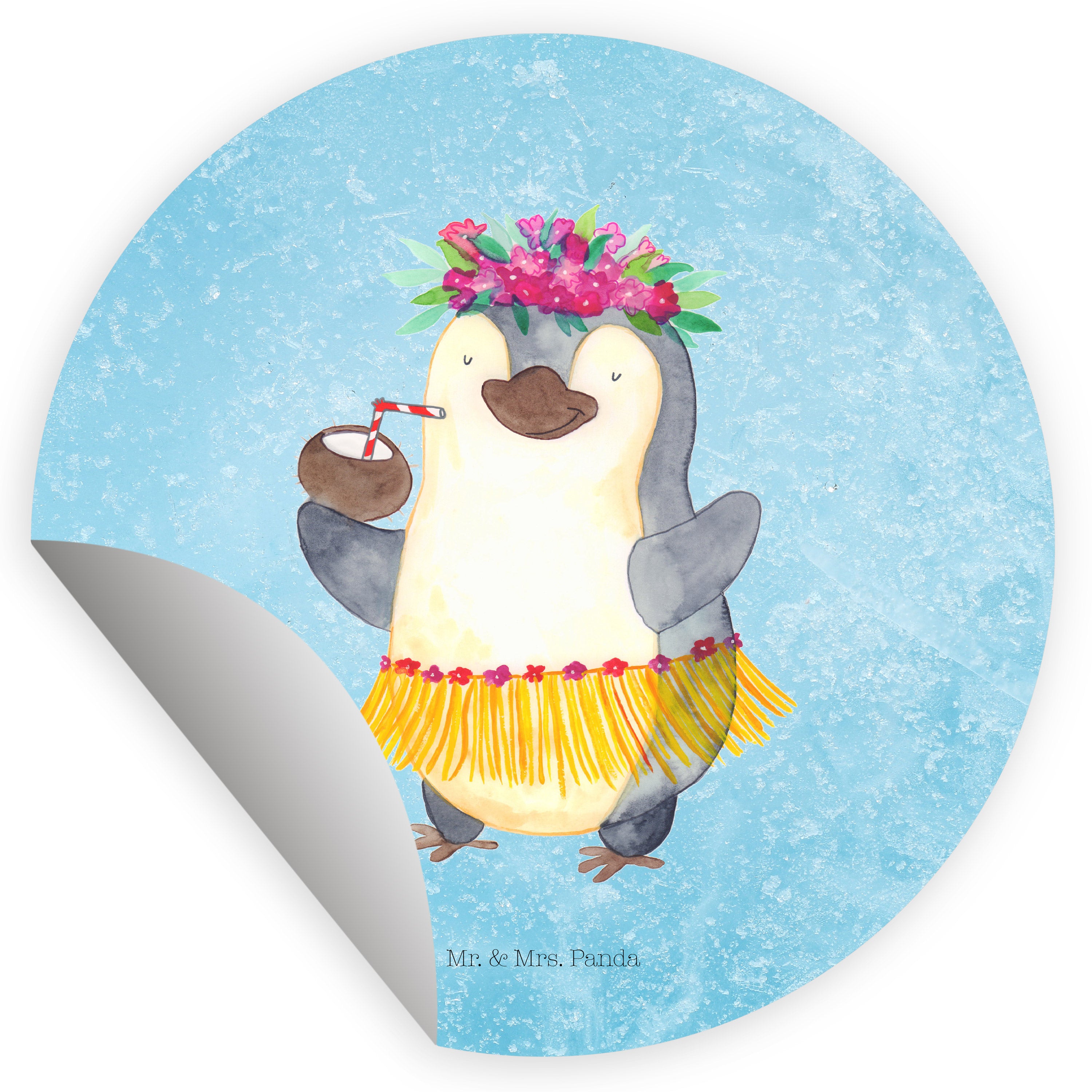 40mm Rund Aufkleber Pinguin Kokosnuss - mit Spruch - Eisblau