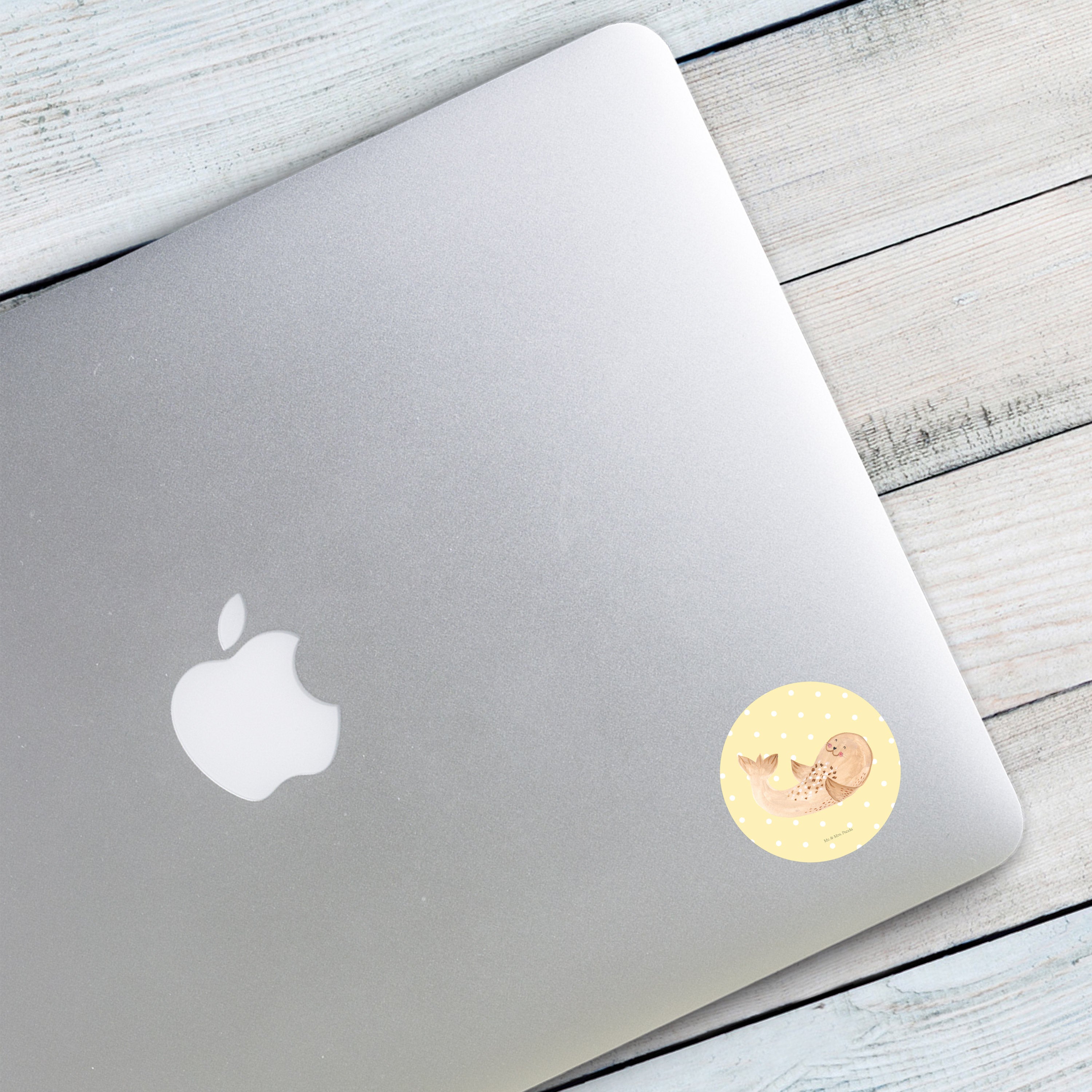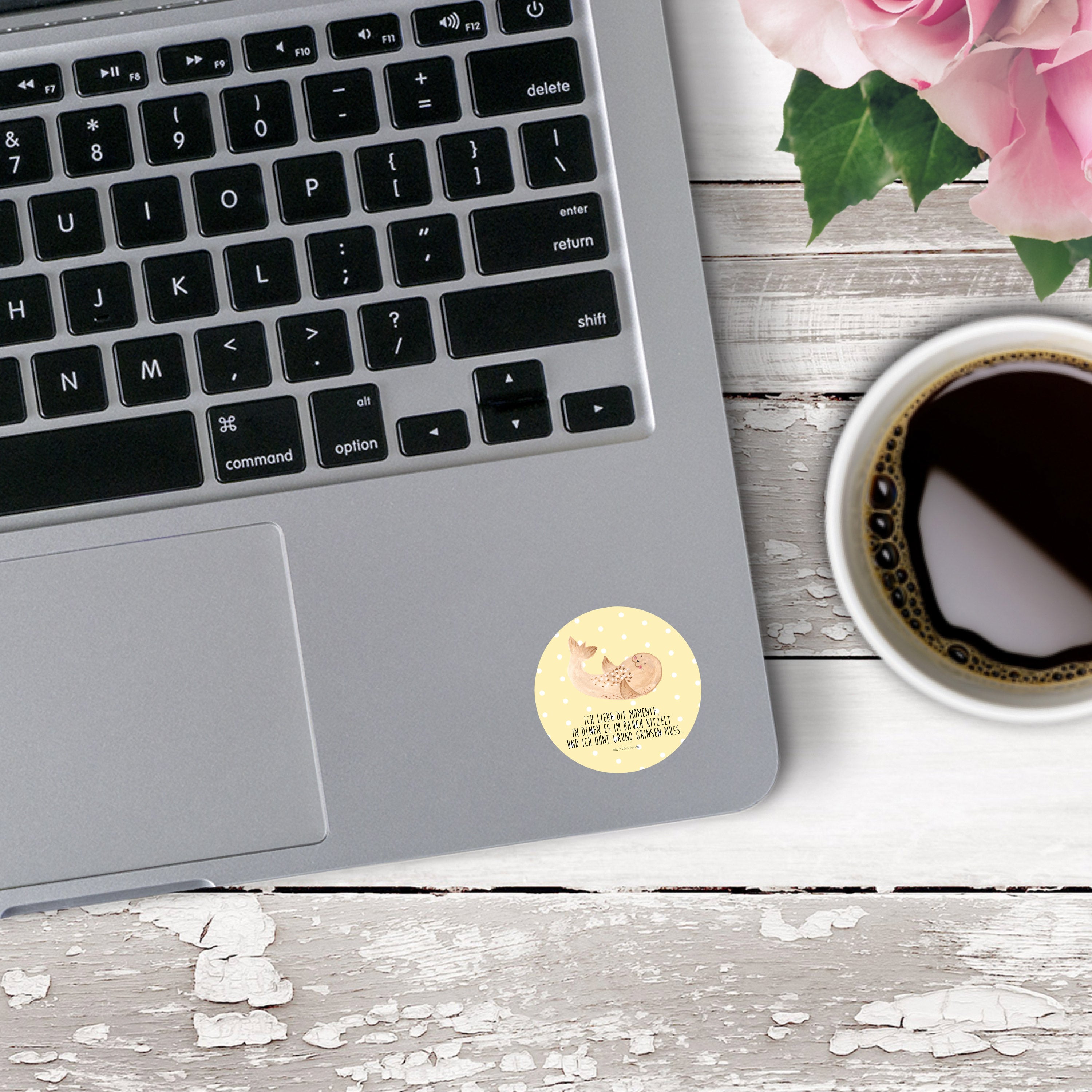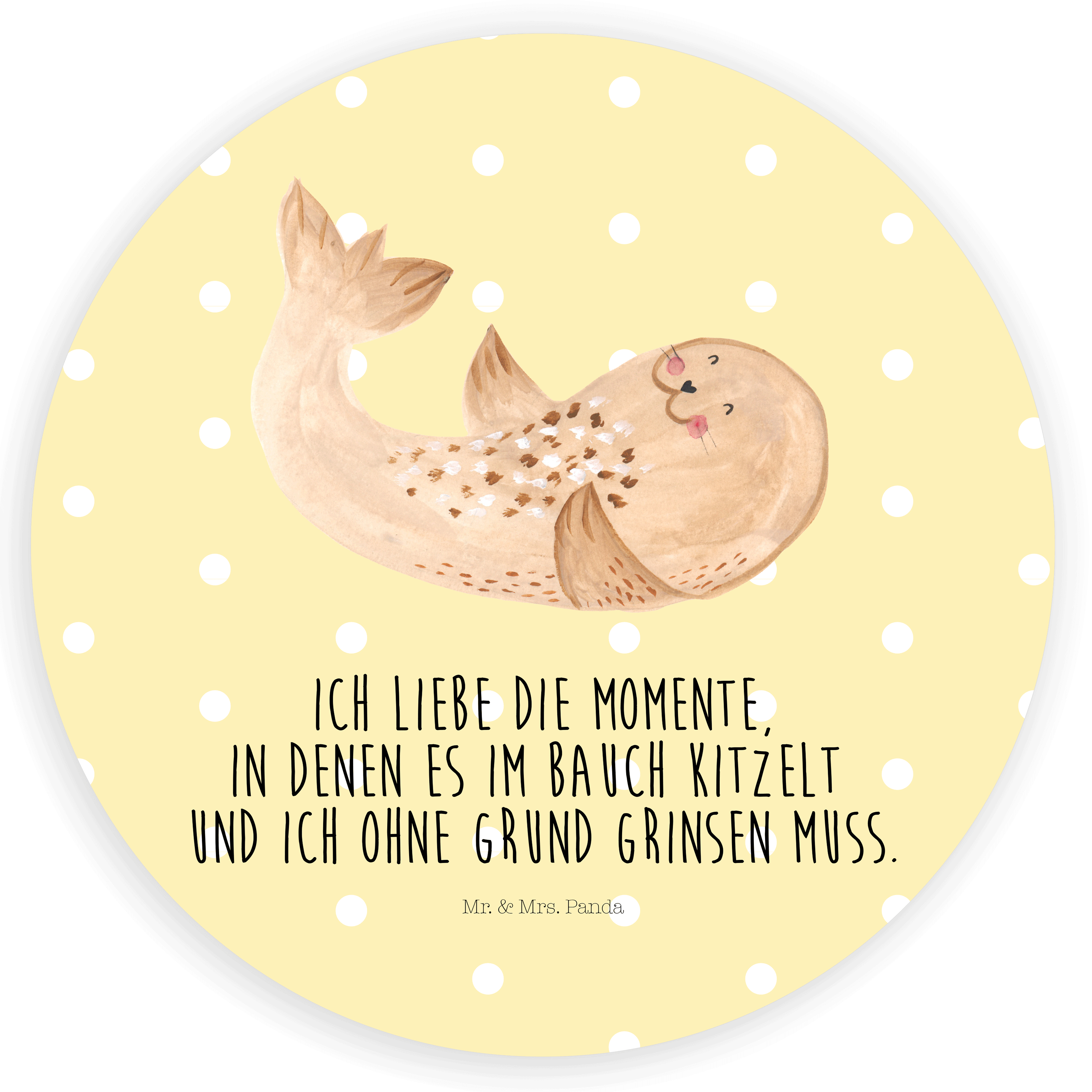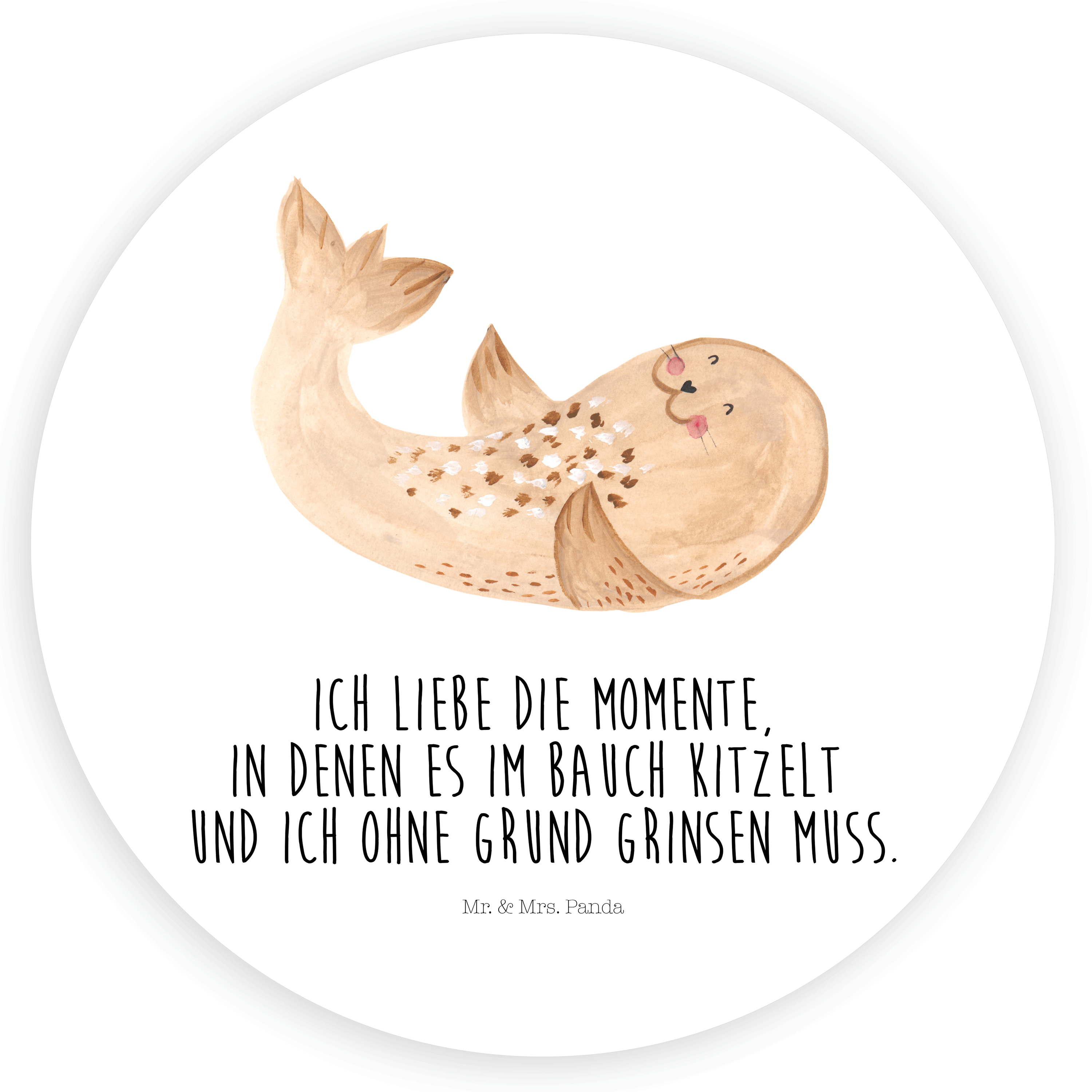 40mm Rund Aufkleber Robbe liegend - mit Spruch - Weiß
