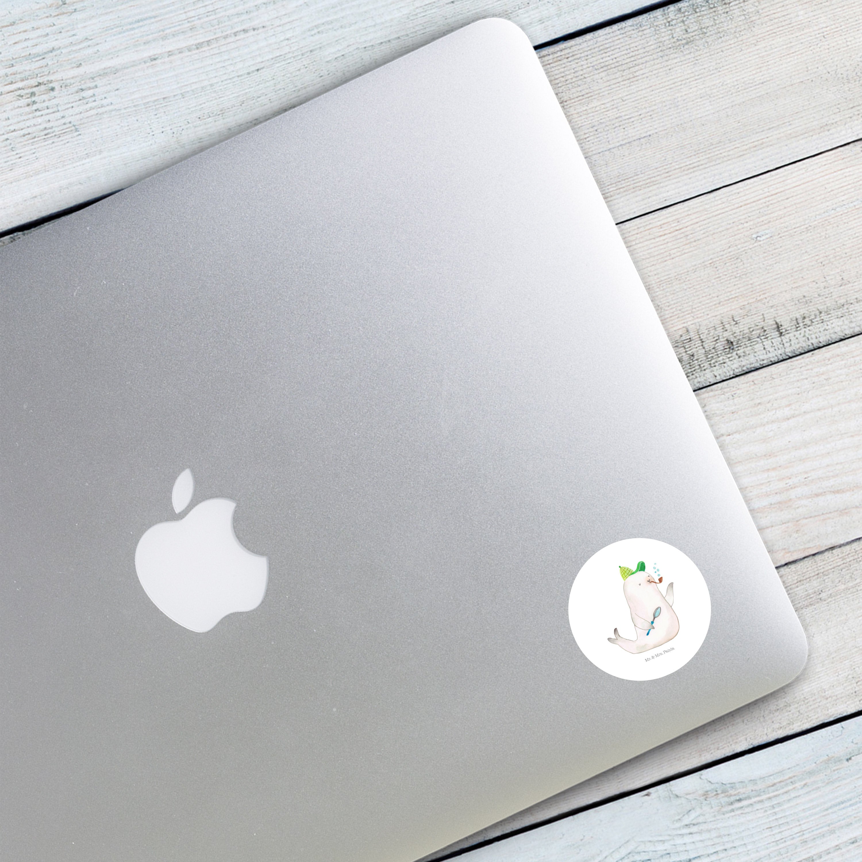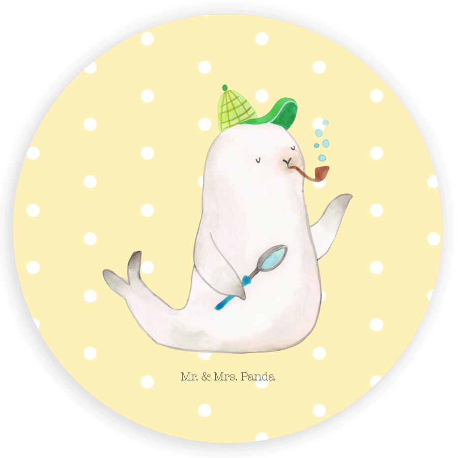 40mm Rund Aufkleber Robbe Sherlock - Gelb Pastell