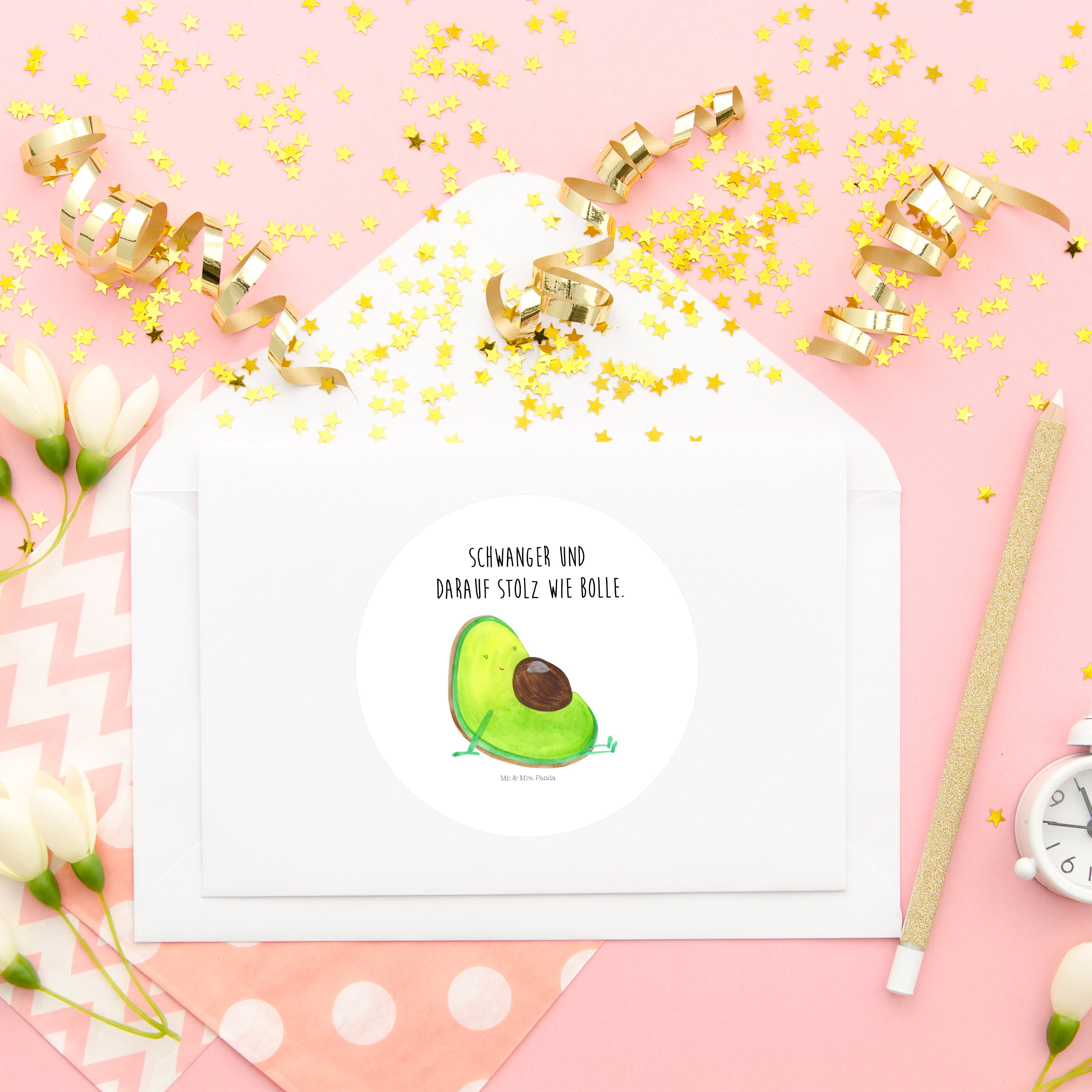 80mm Rund Aufkleber Avocado schwanger - mit Spruch - Weiß