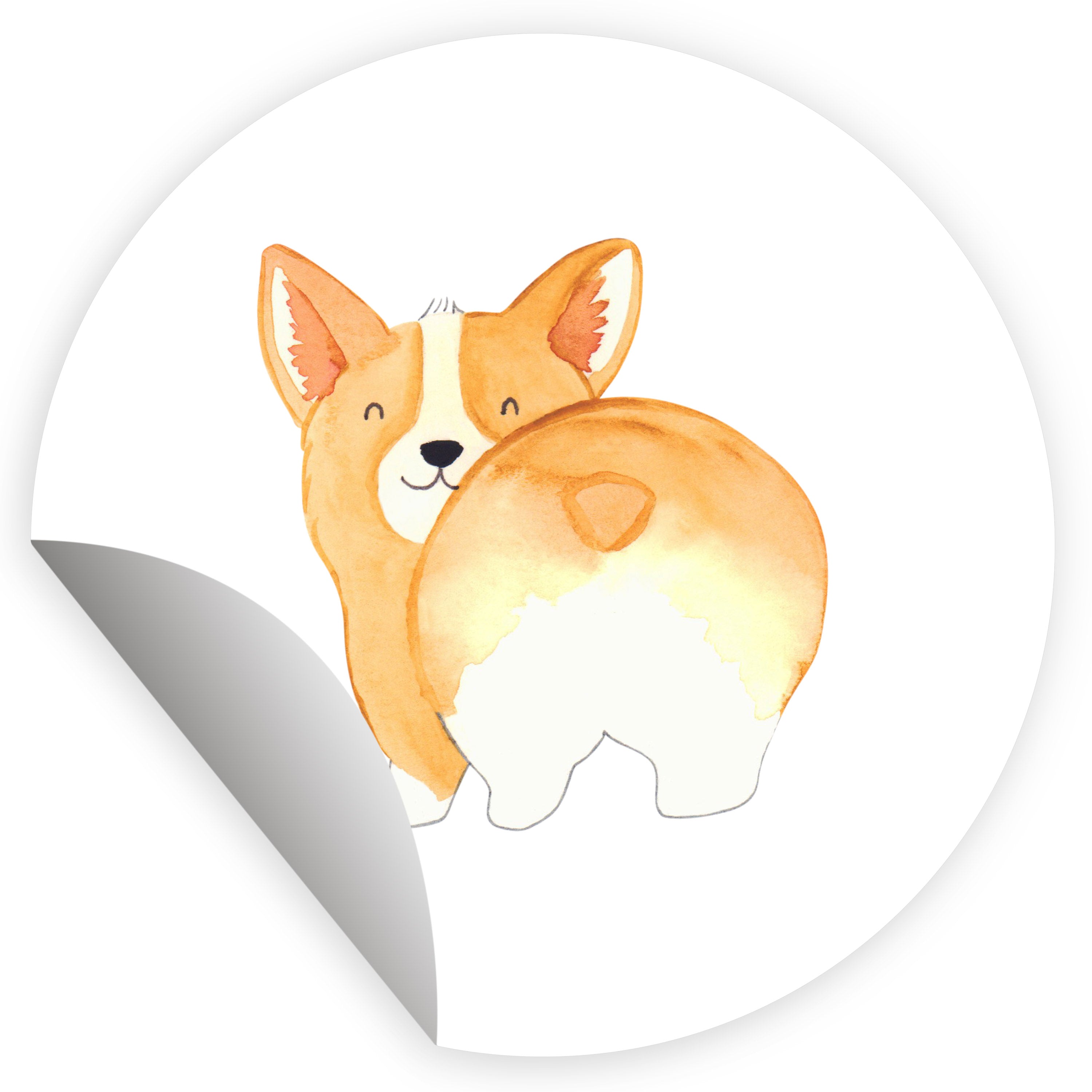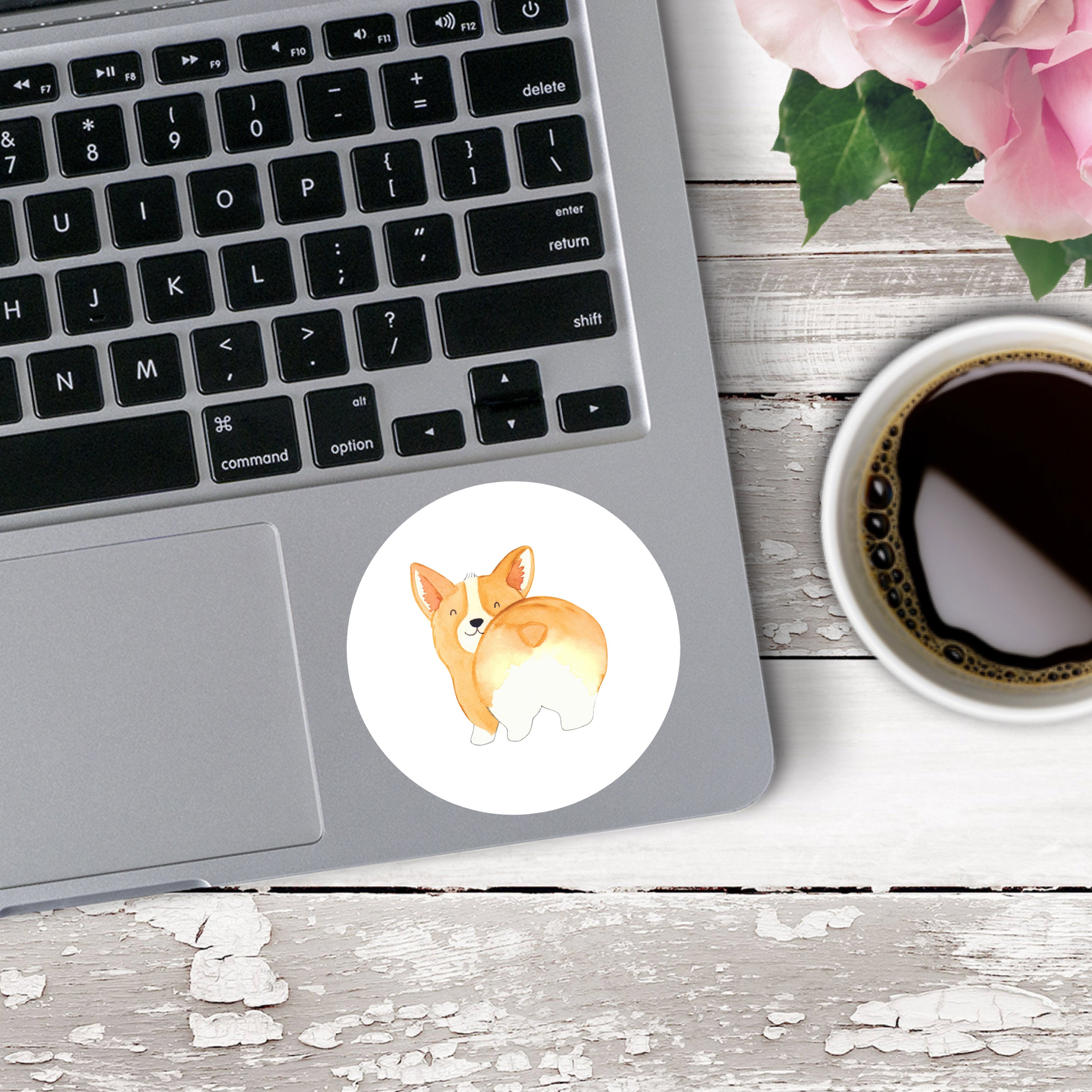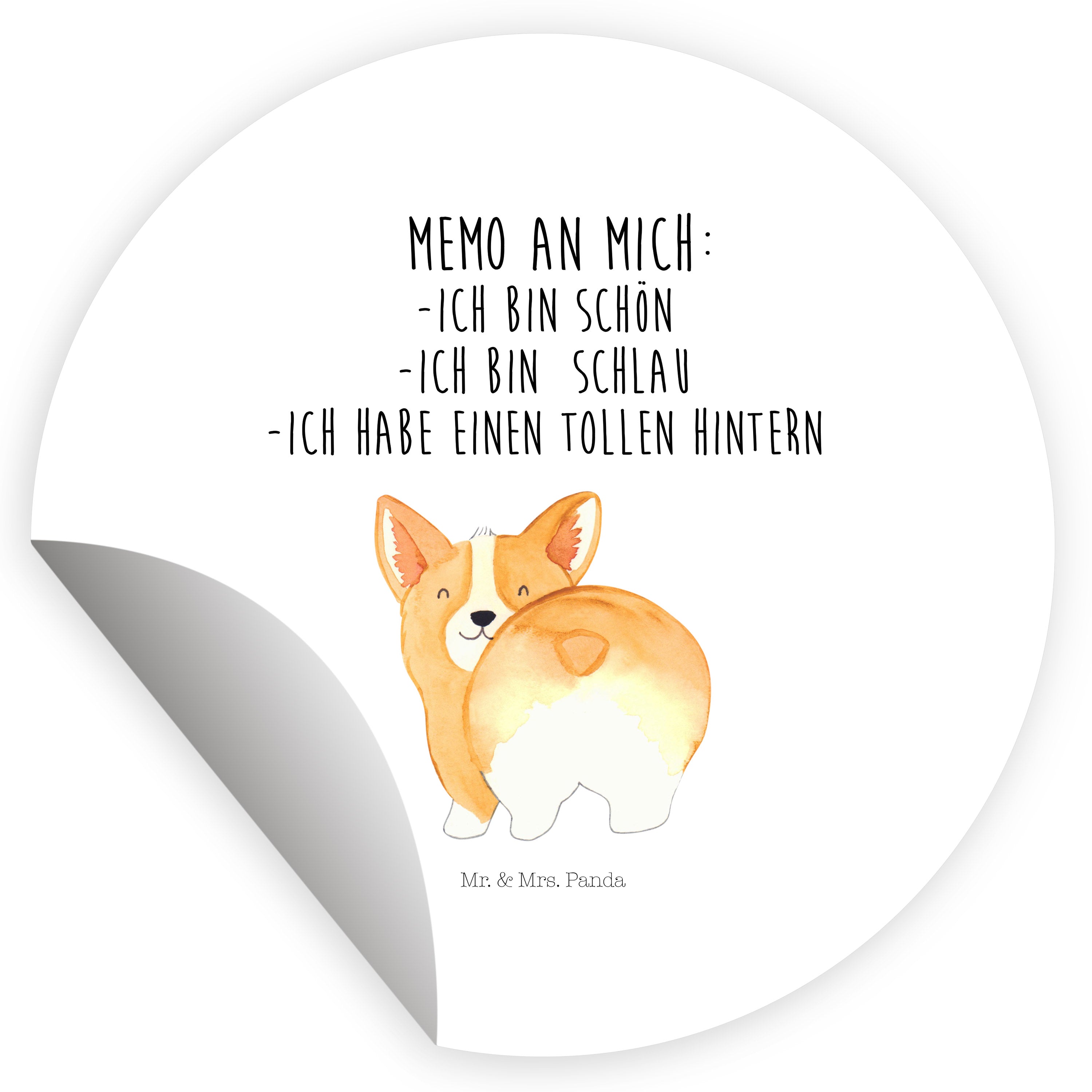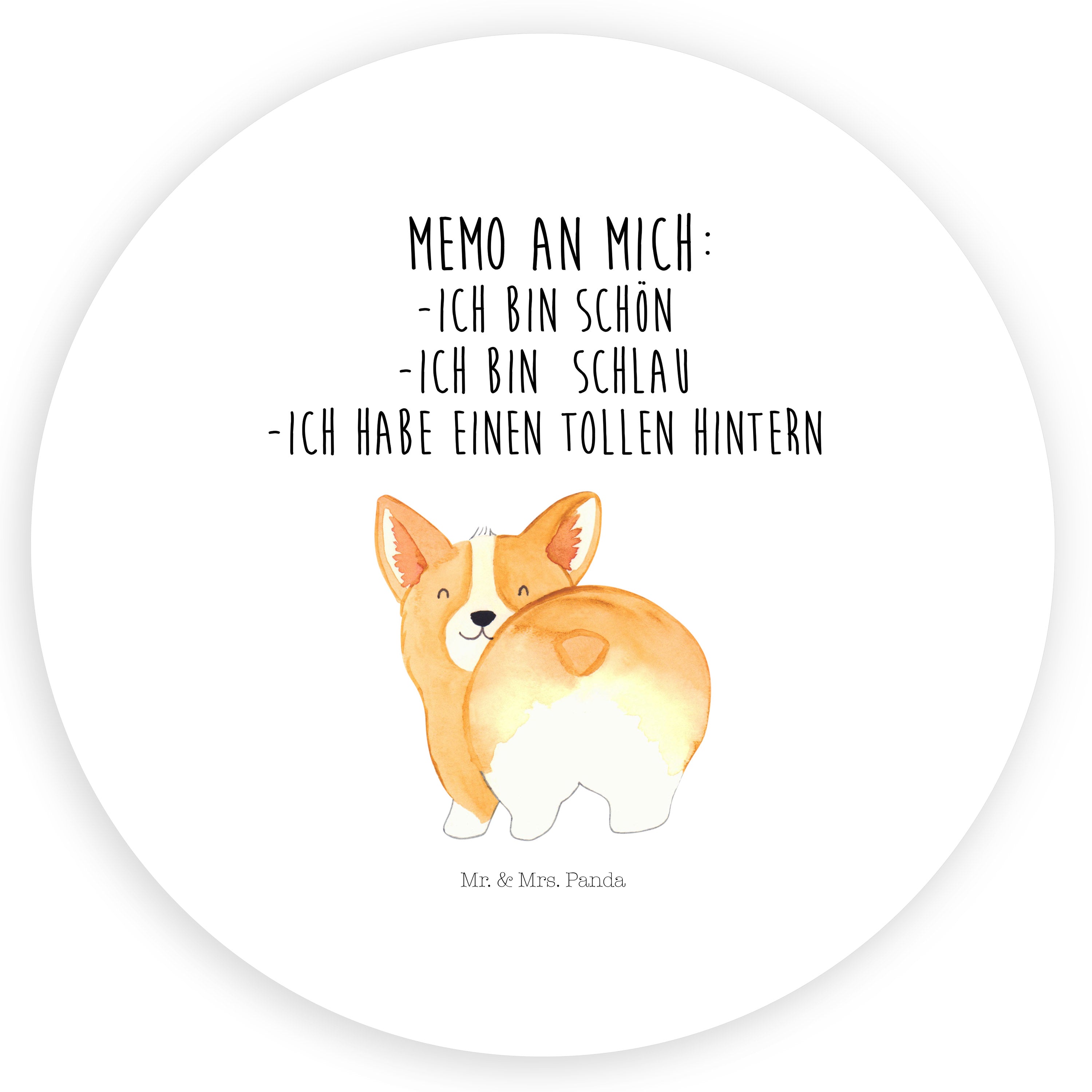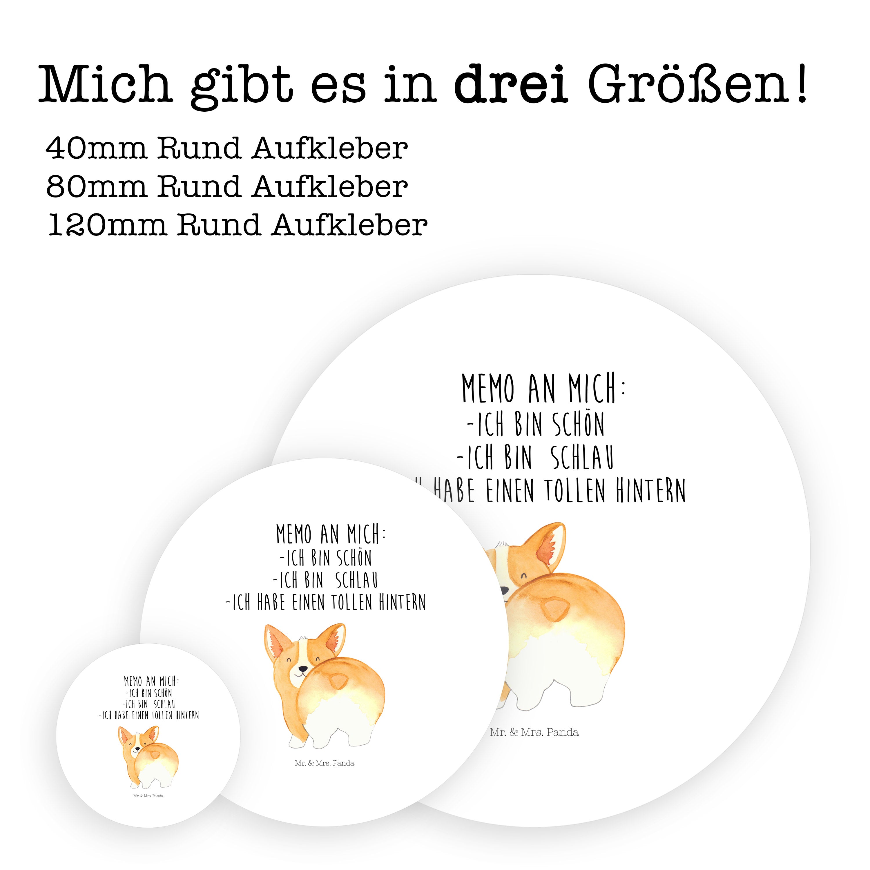 80mm Rund Aufkleber Corgie Po - mit Spruch - Weiß