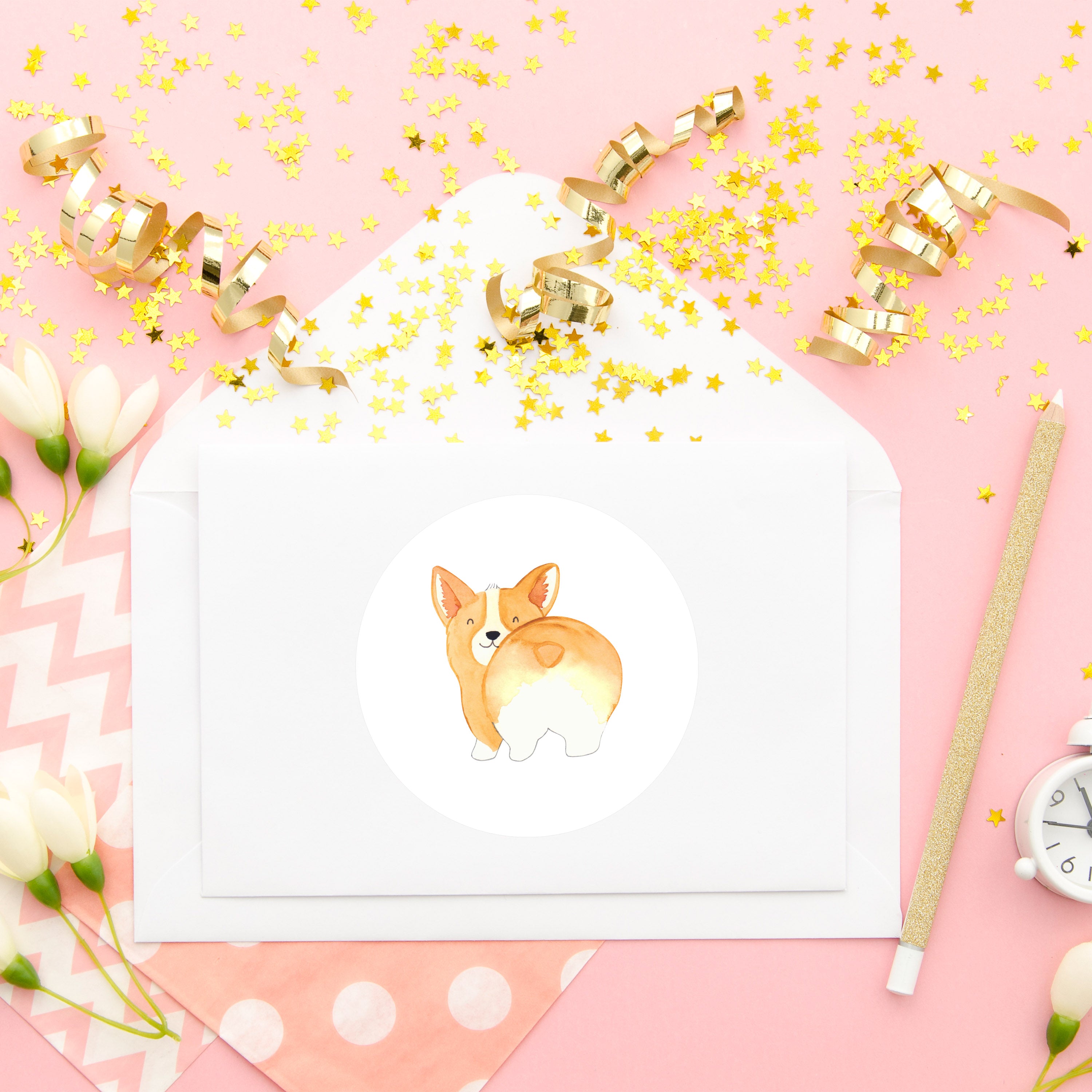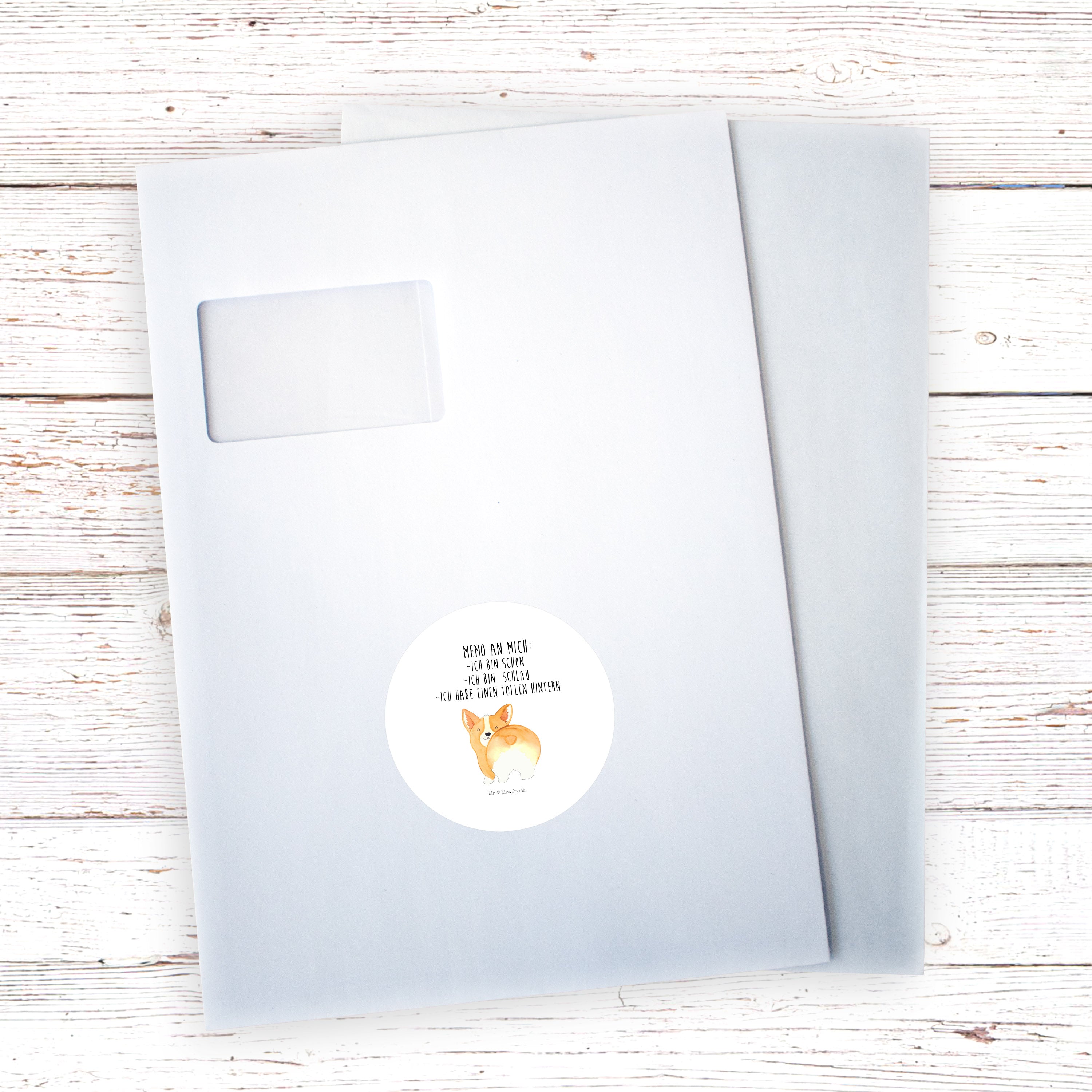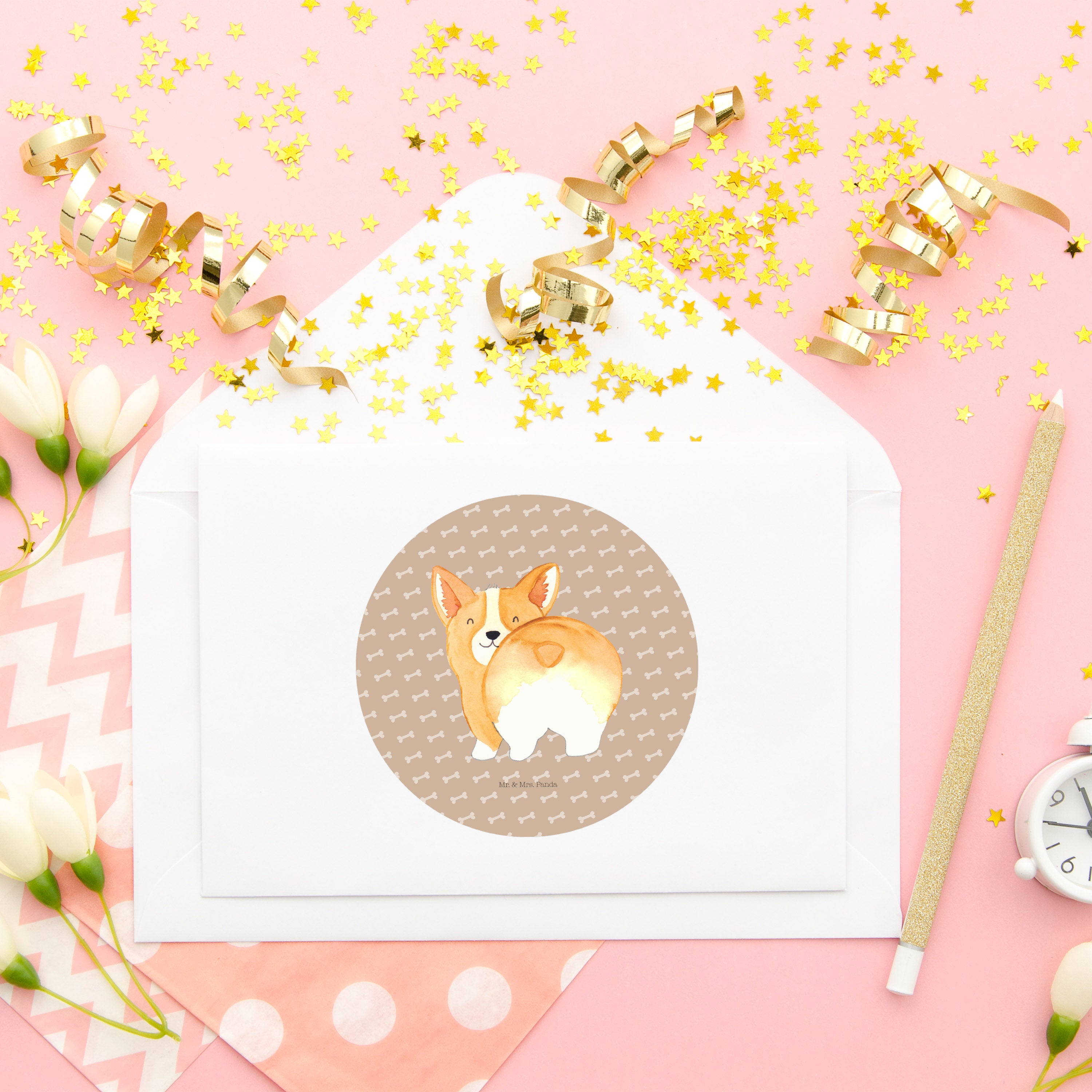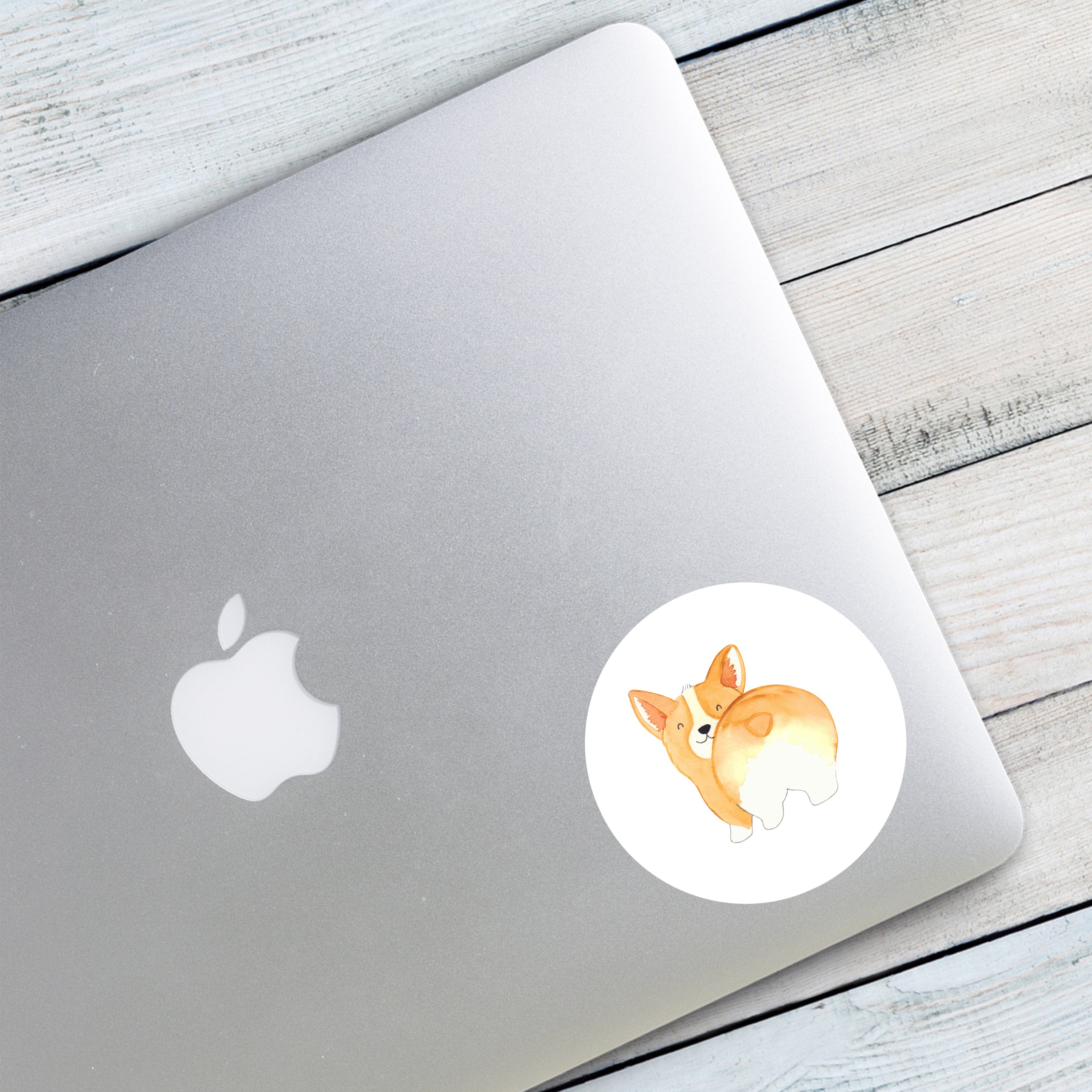 80mm Rund Aufkleber Corgie Po - mit Spruch - Weiß
