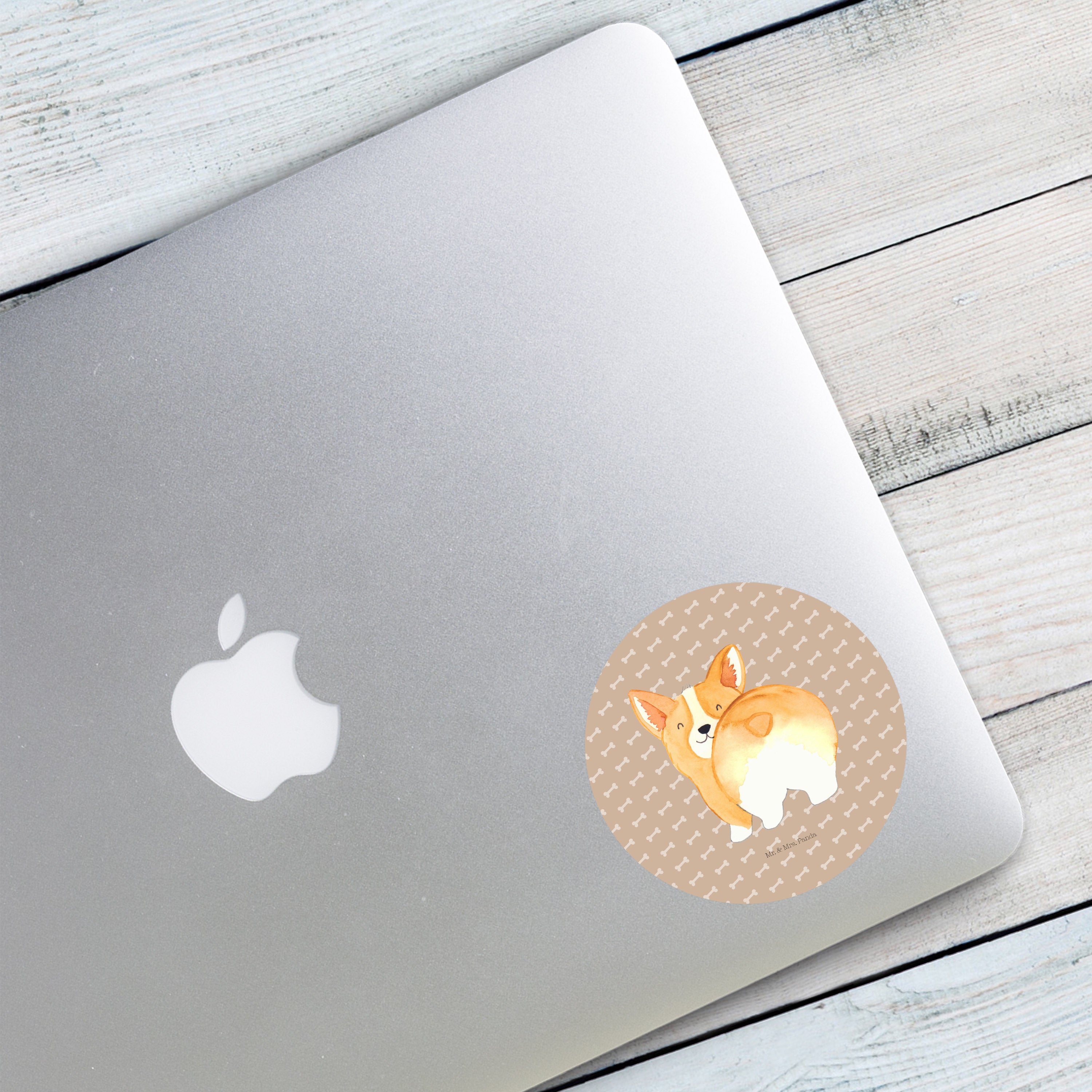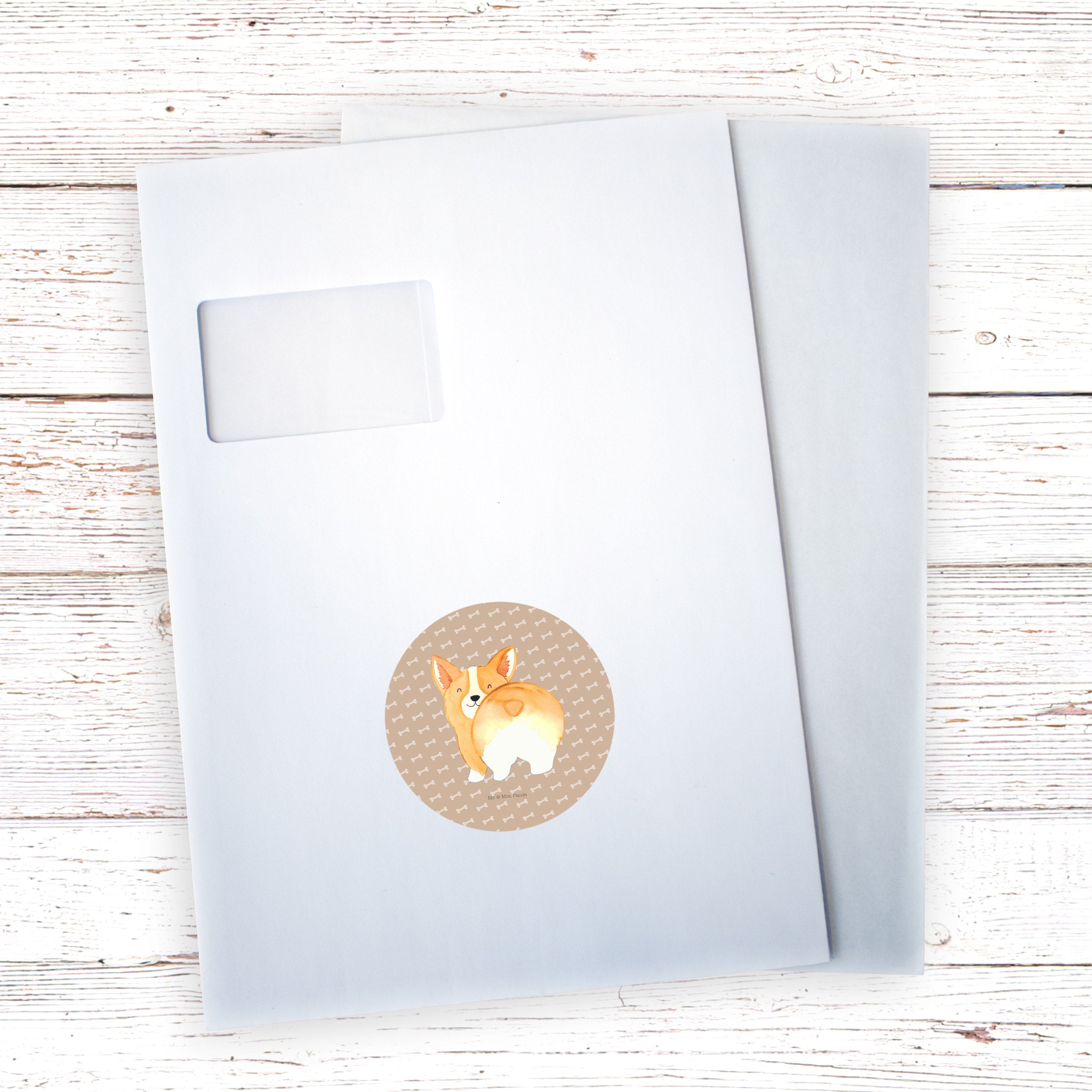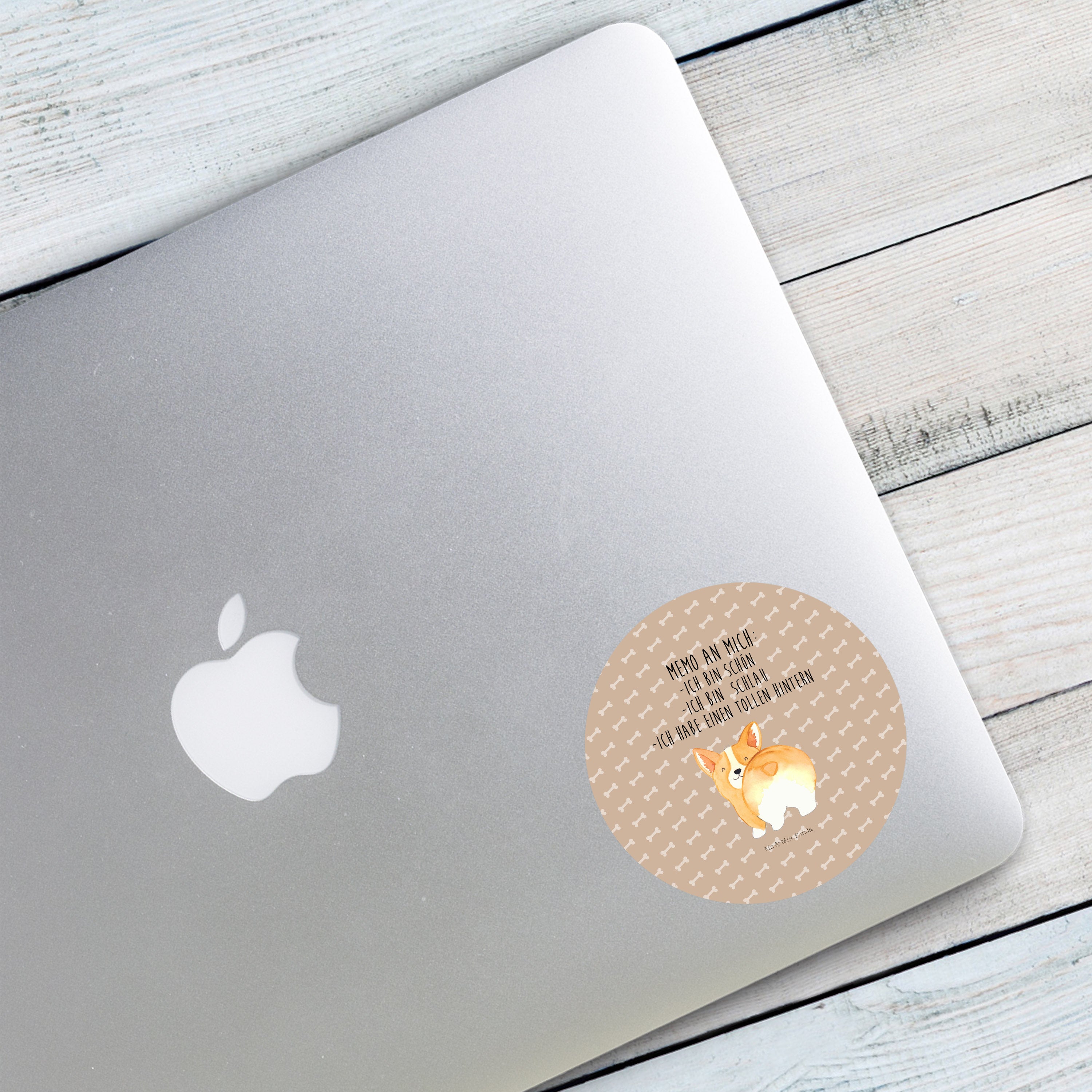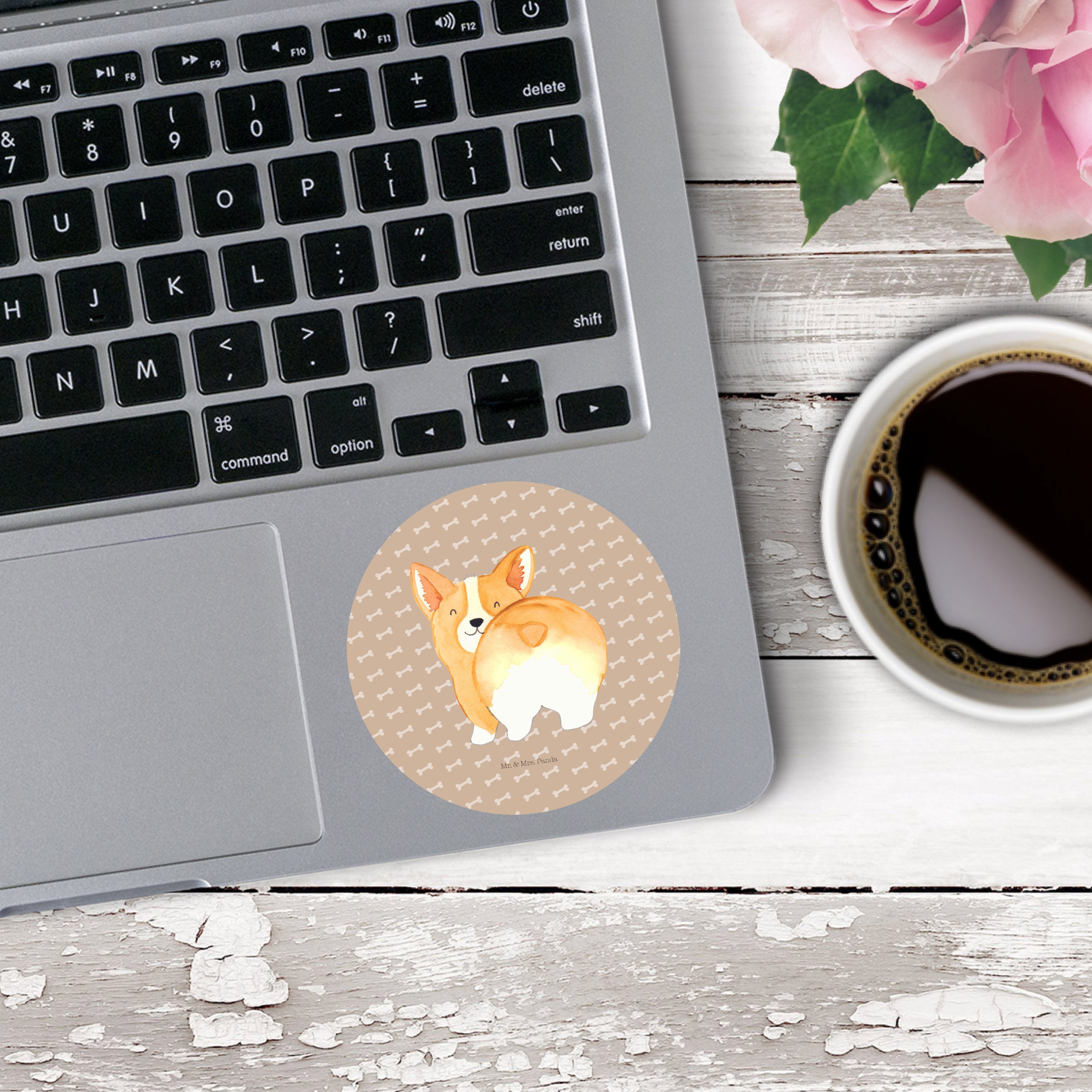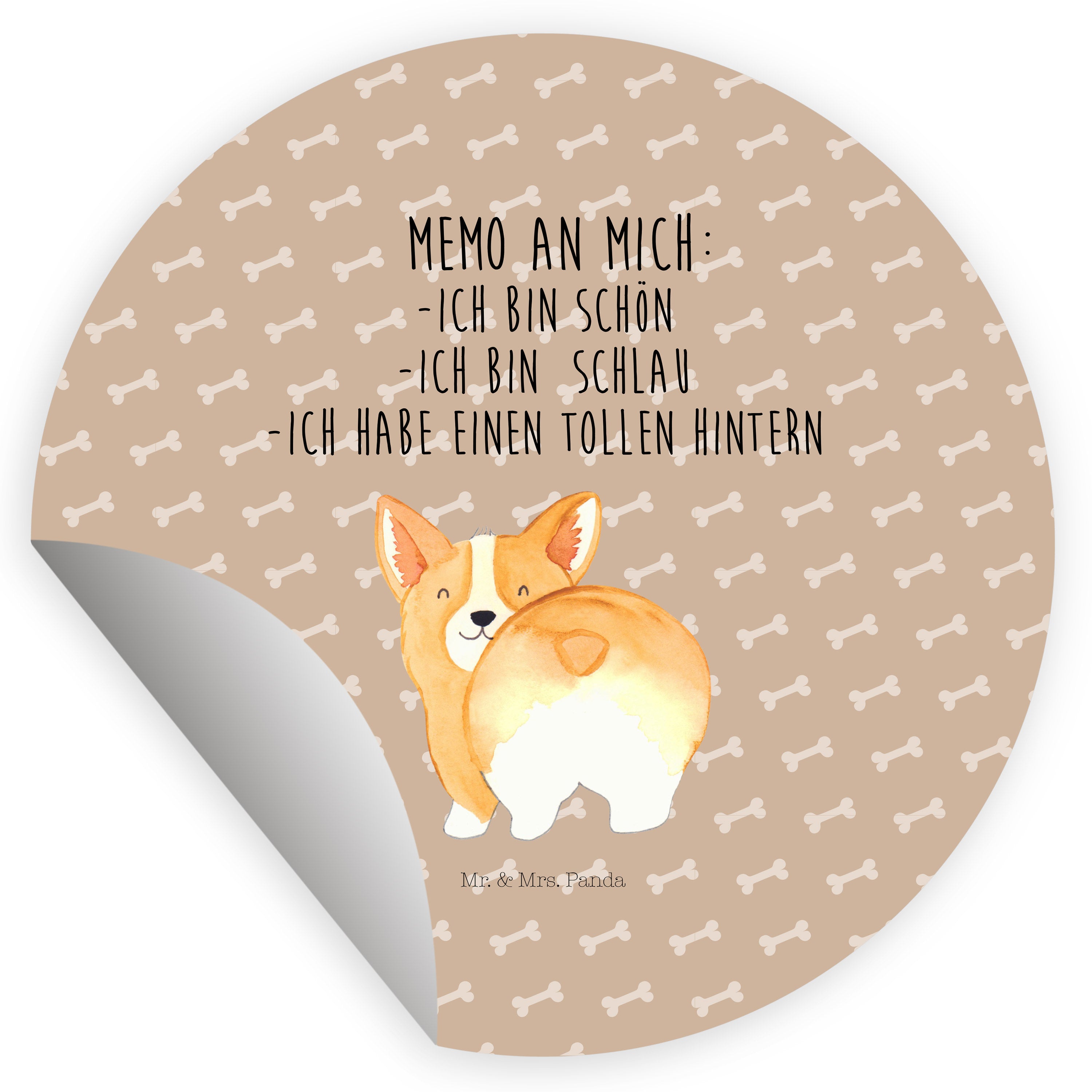 80mm Rund Aufkleber Corgie Po - mit Spruch - Weiß