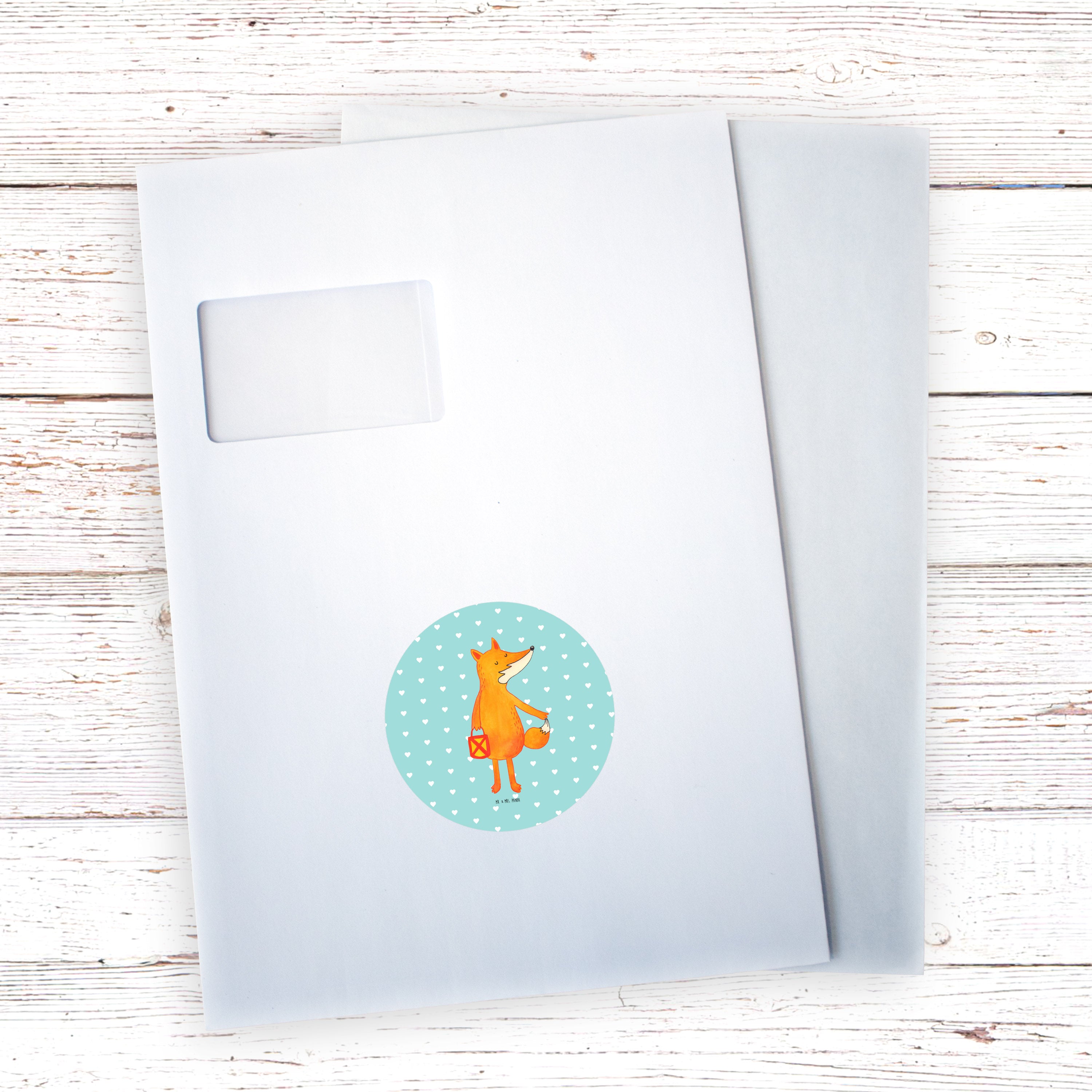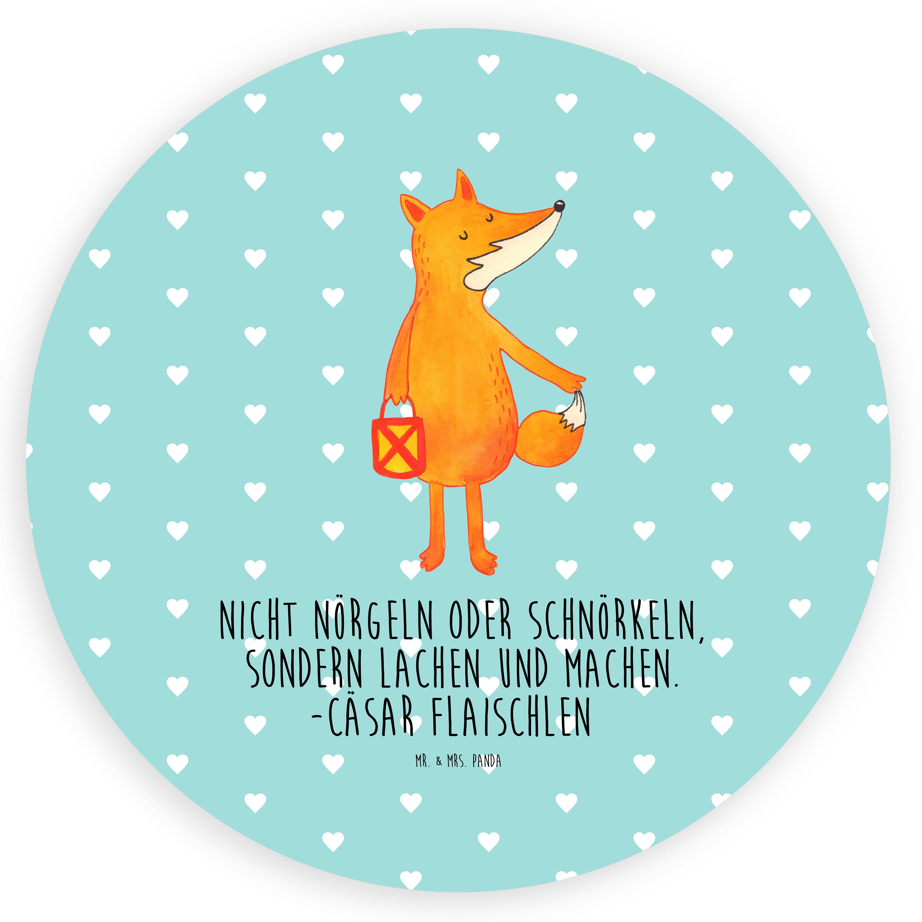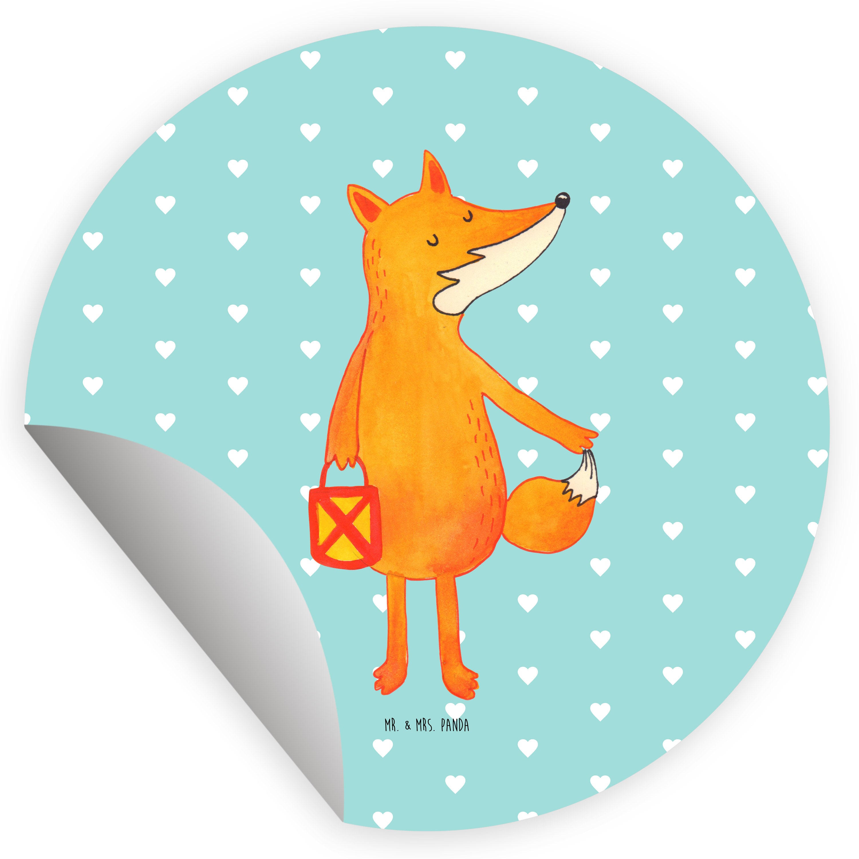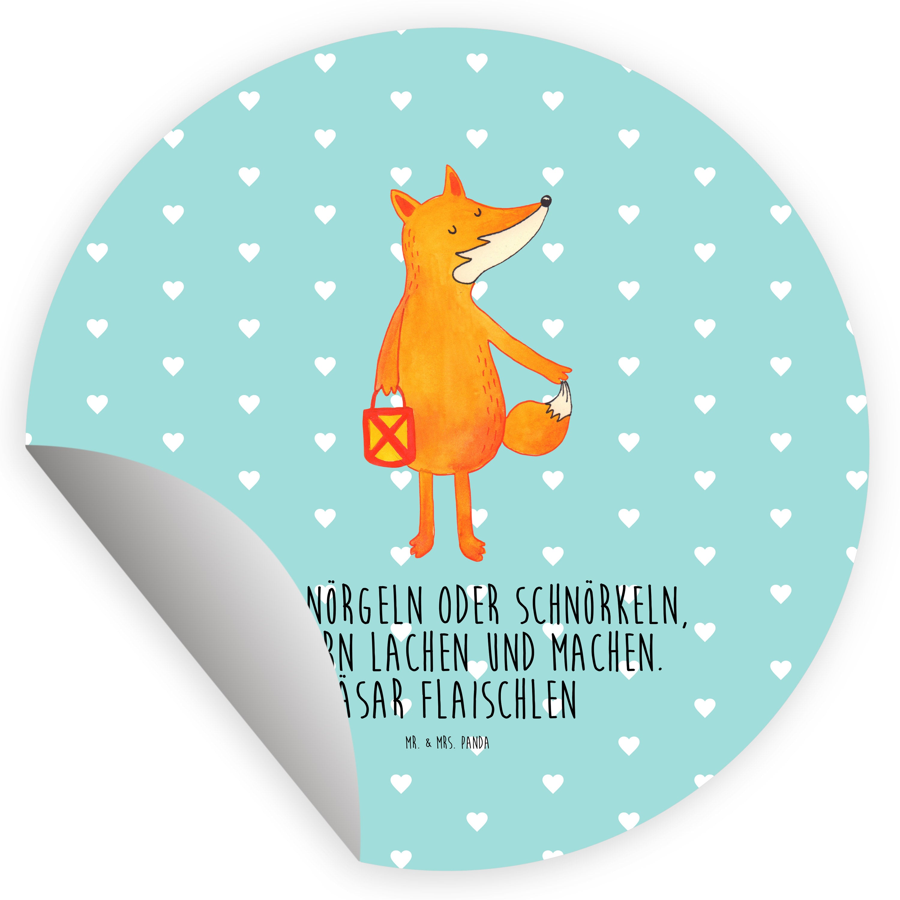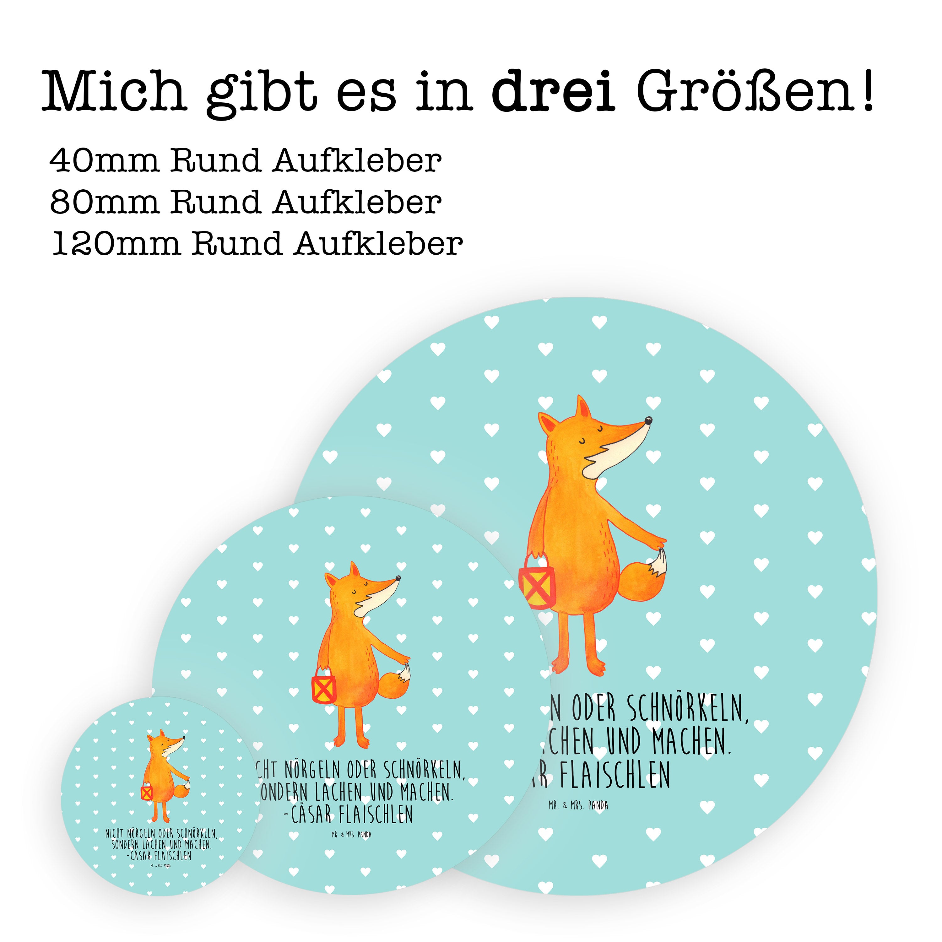 80mm Rund Aufkleber Fuchs Laterne - mit Spruch - Türkis Pastell