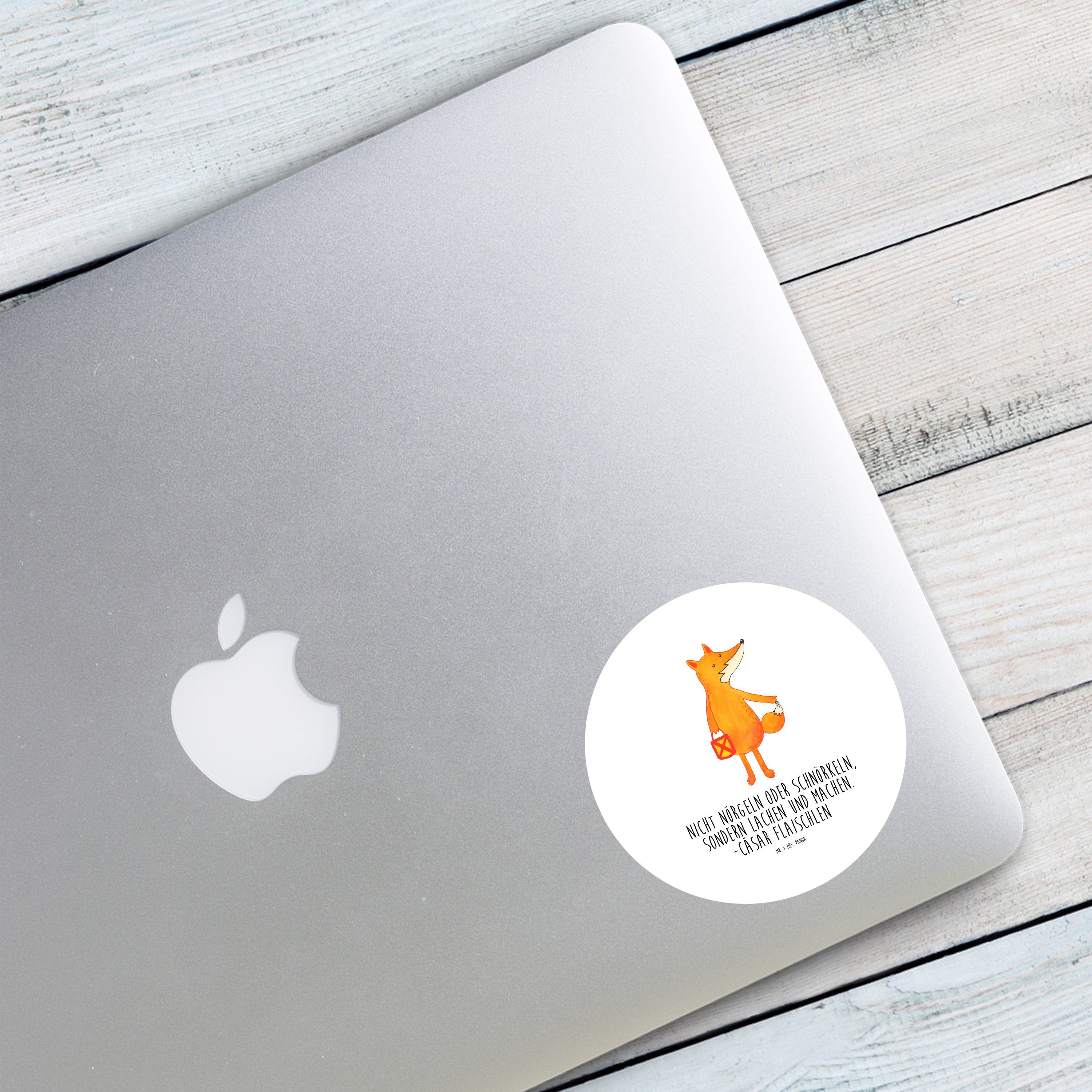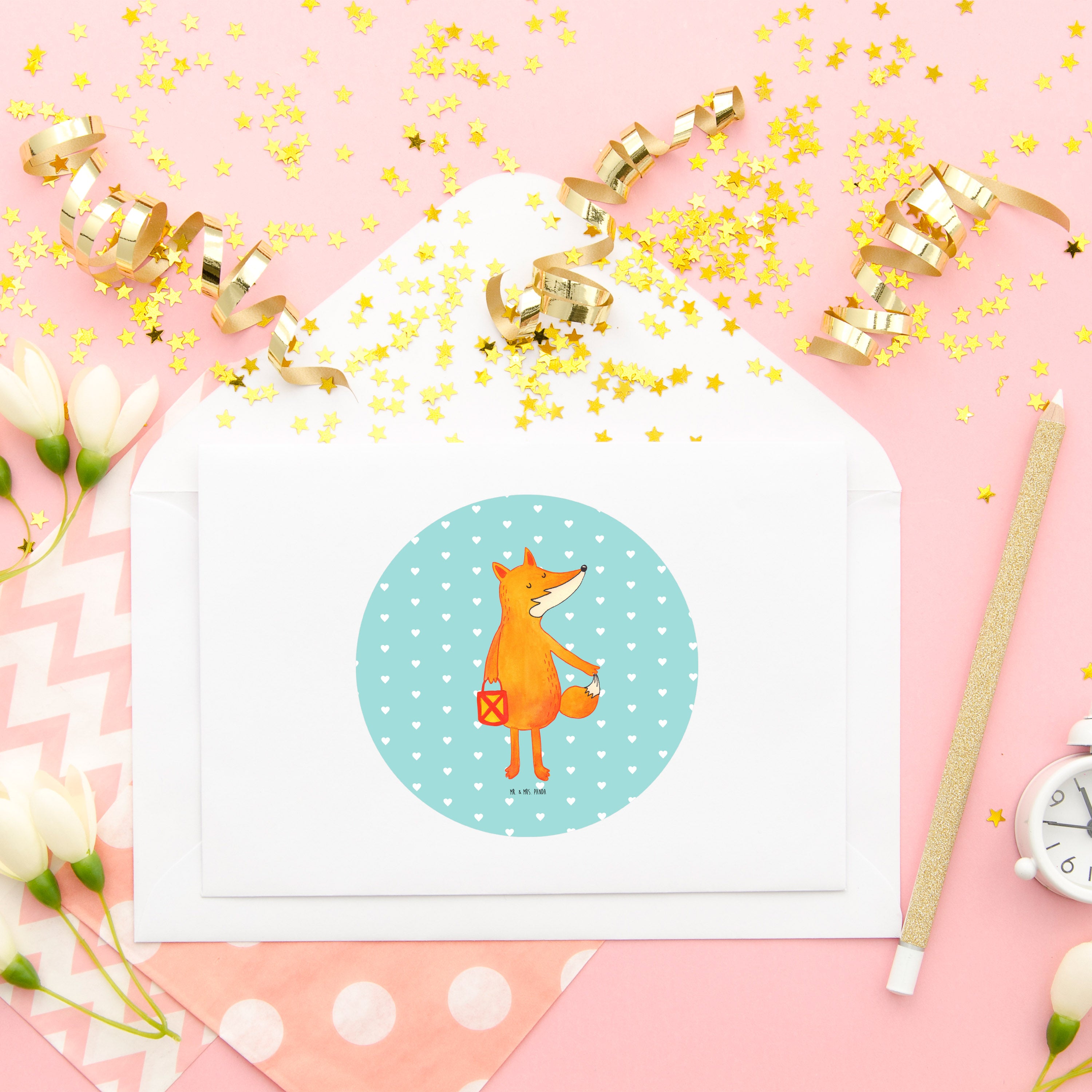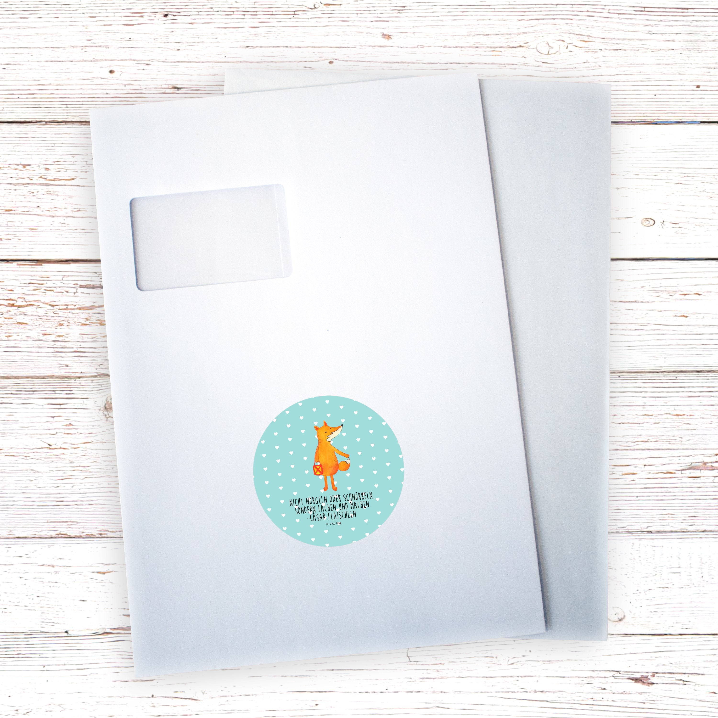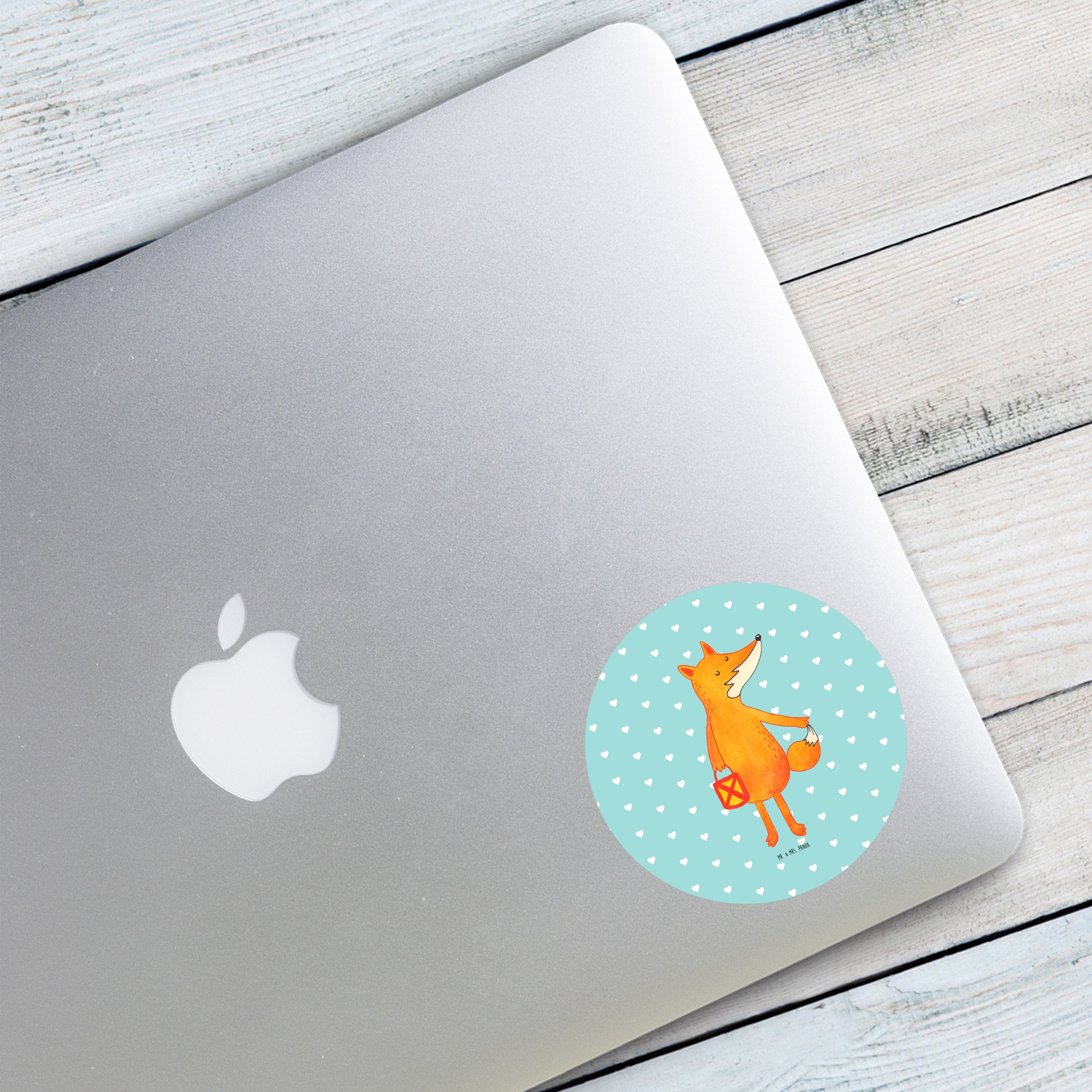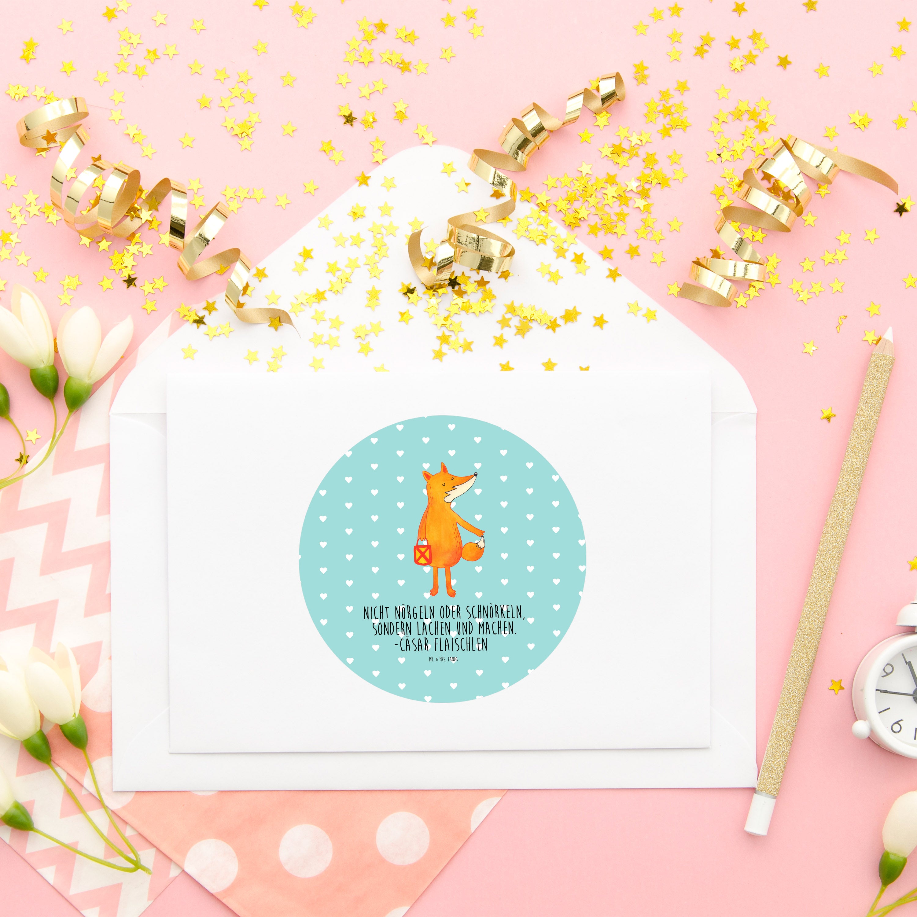 80mm Rund Aufkleber Fuchs Laterne - mit Spruch - Türkis Pastell