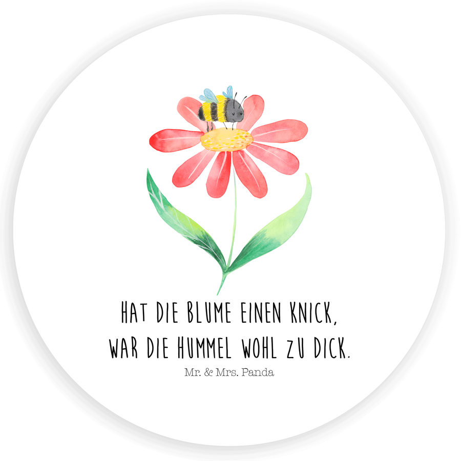 80mm Rund Aufkleber Hummel Blume - mit Spruch - Weiß