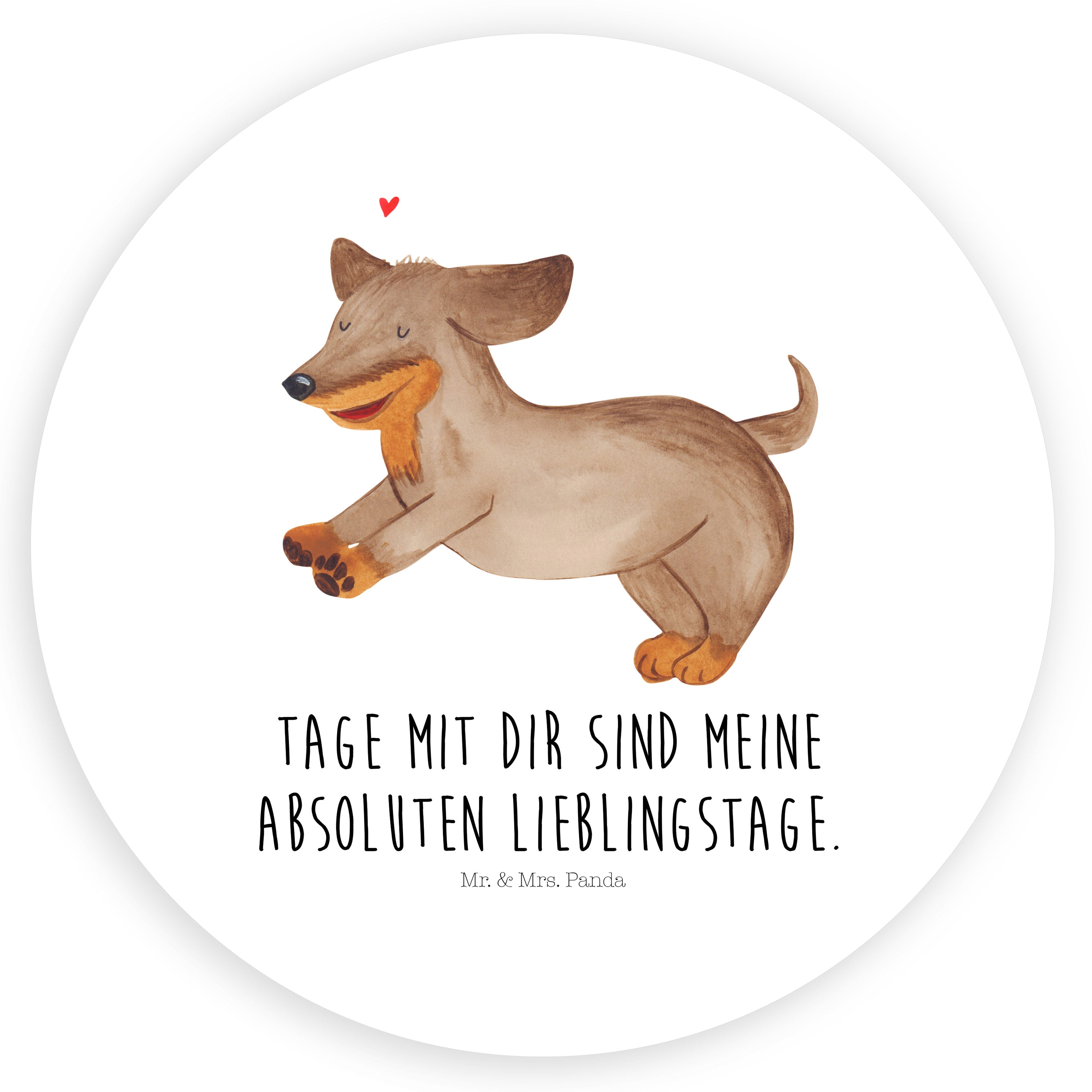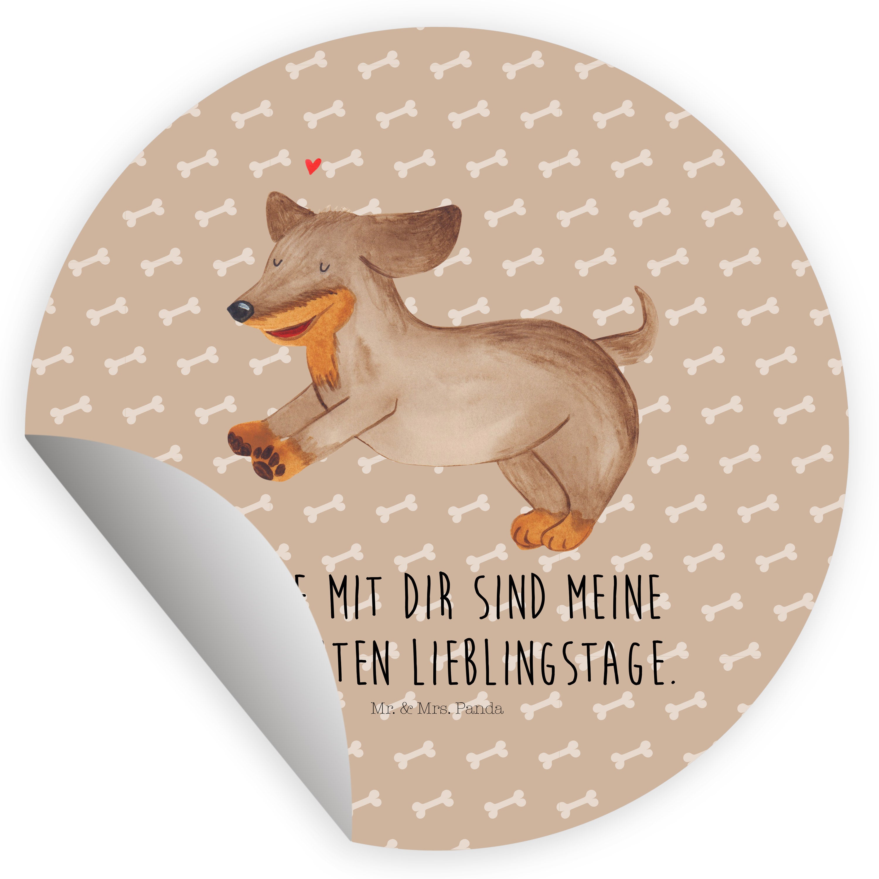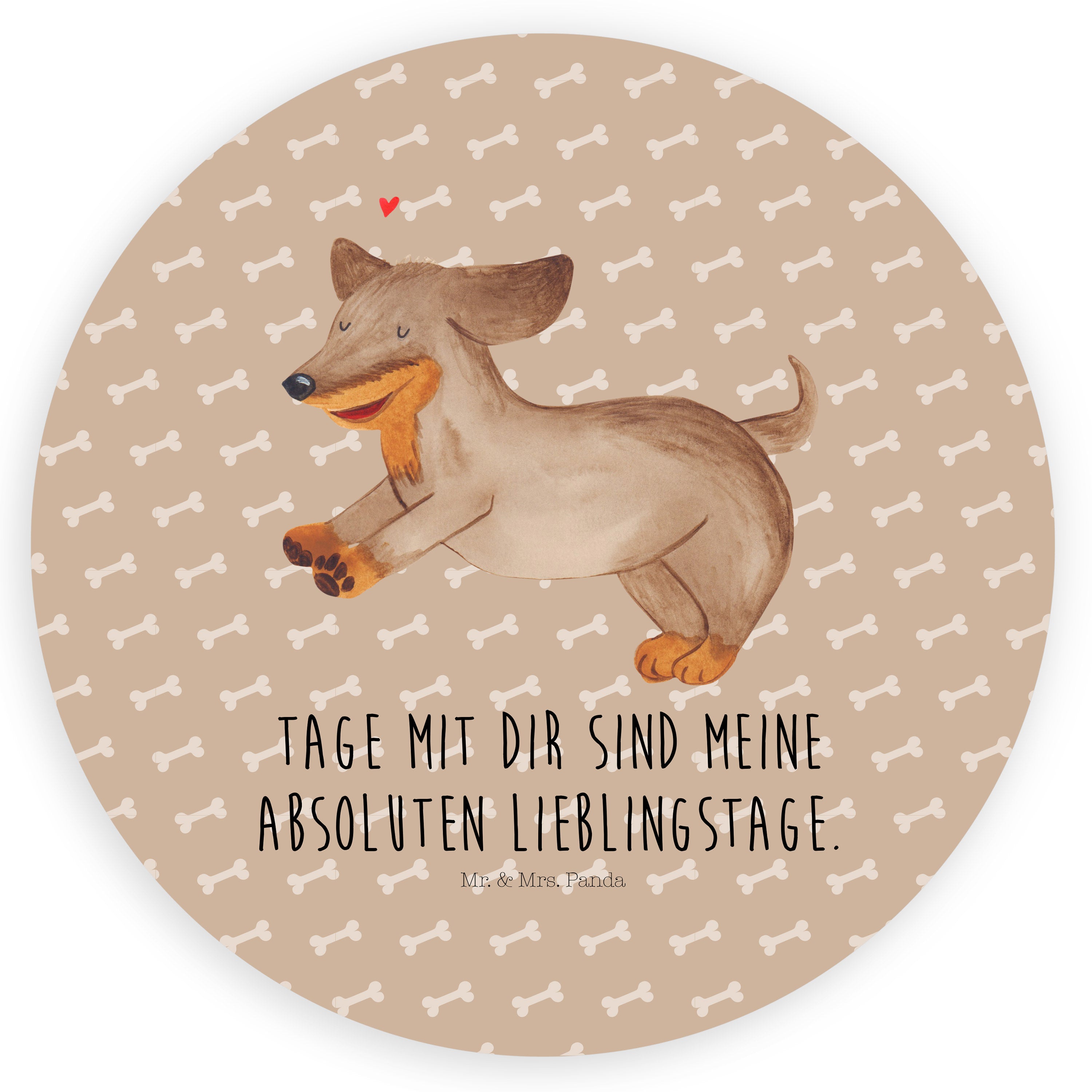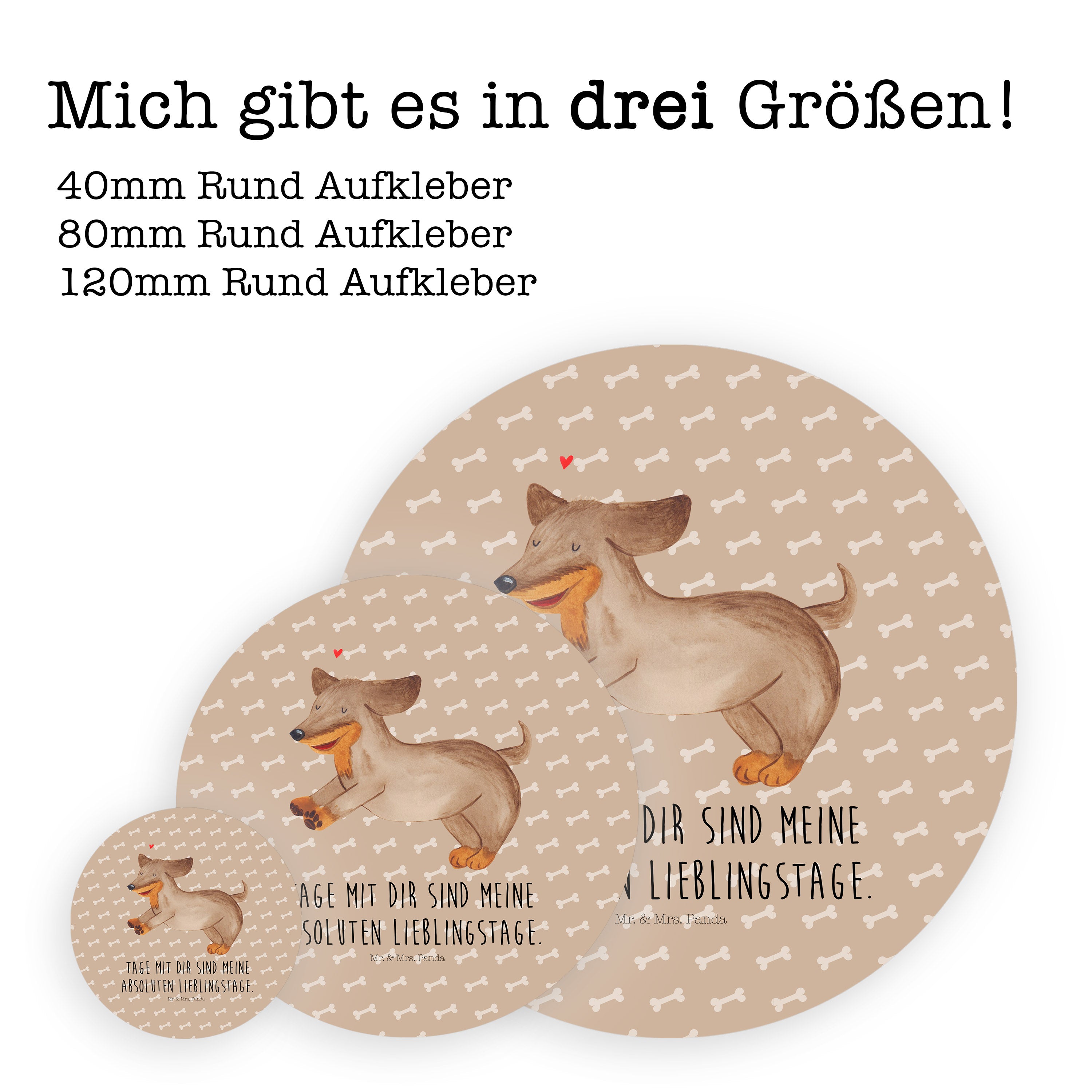 80mm Rund Aufkleber Hund Dackel fröhlich - mit Spruch - Hundeglück