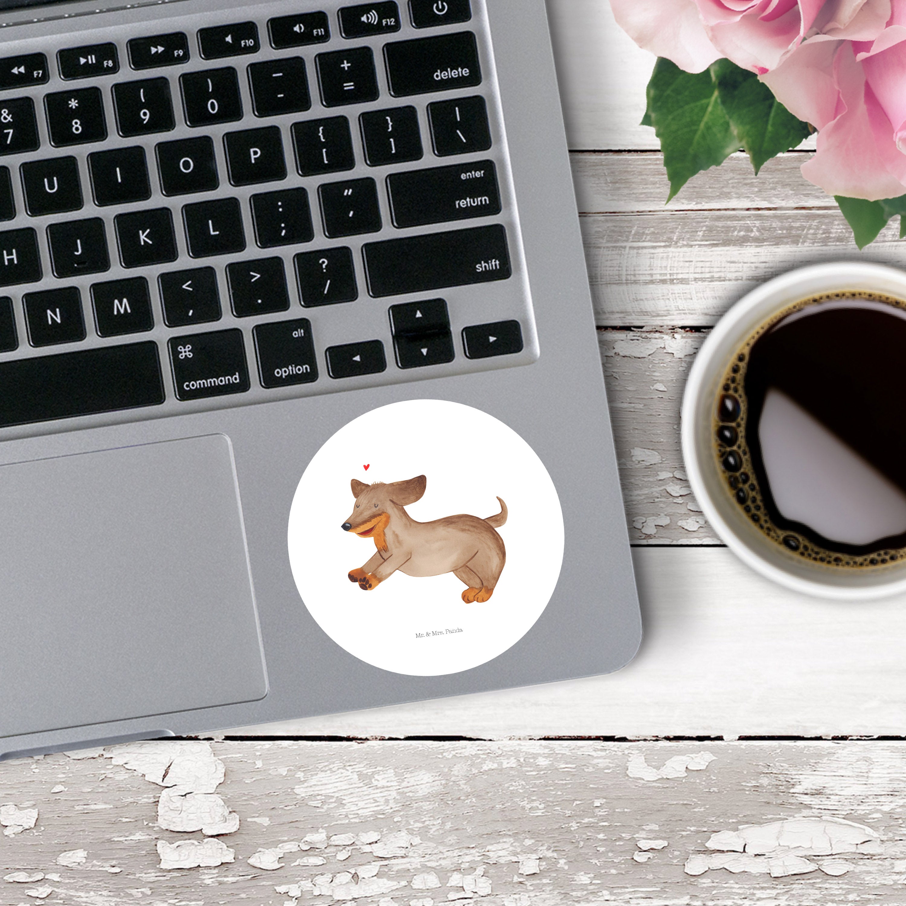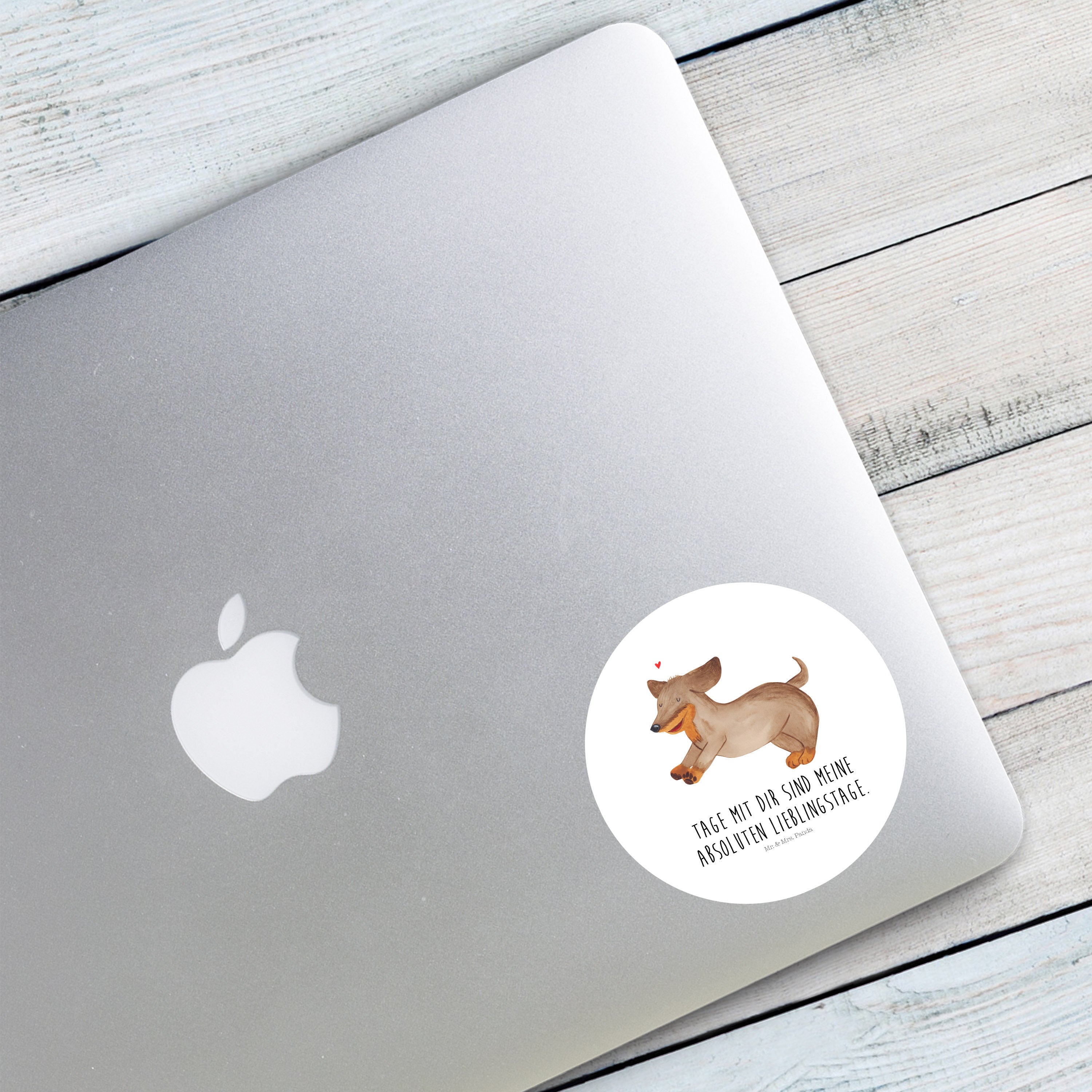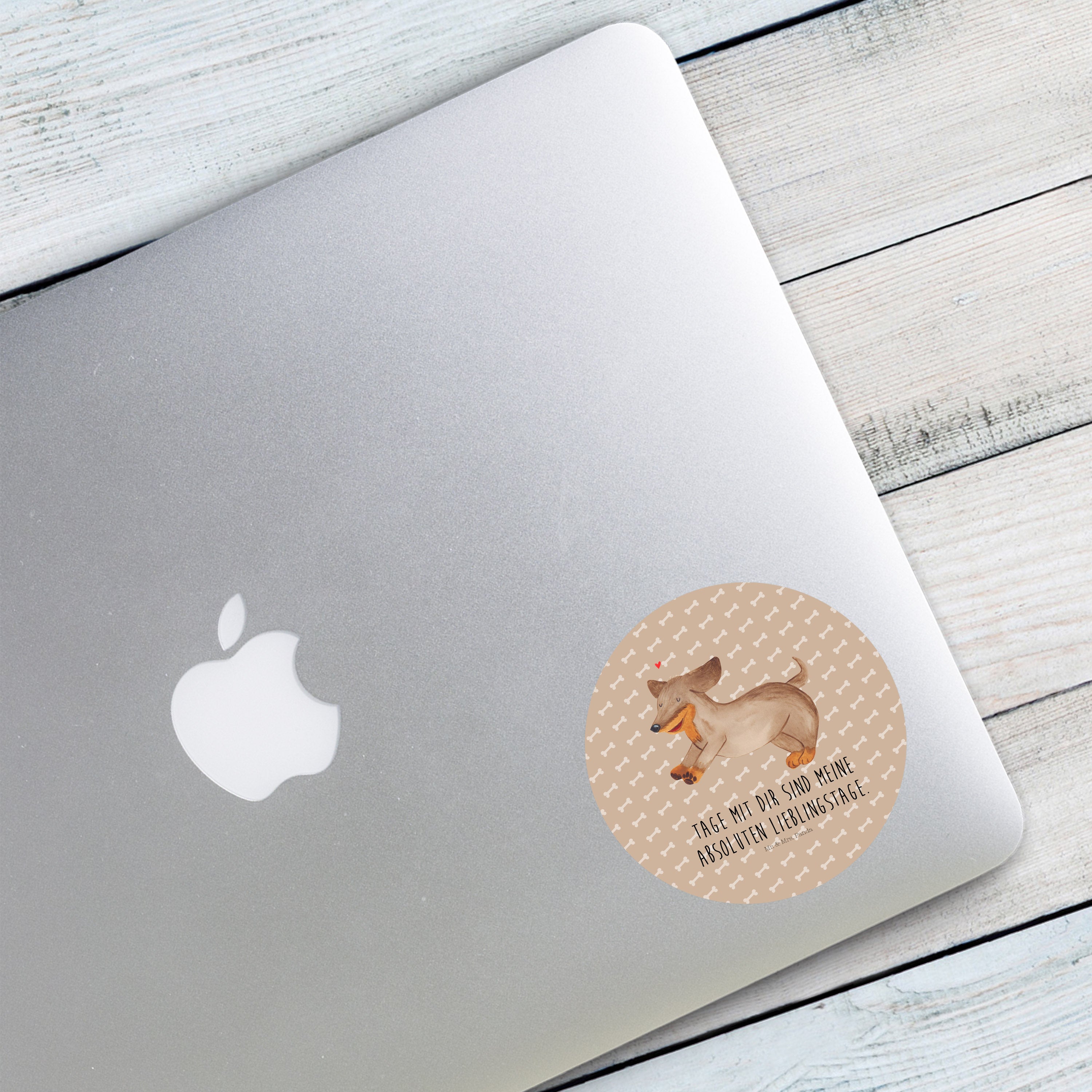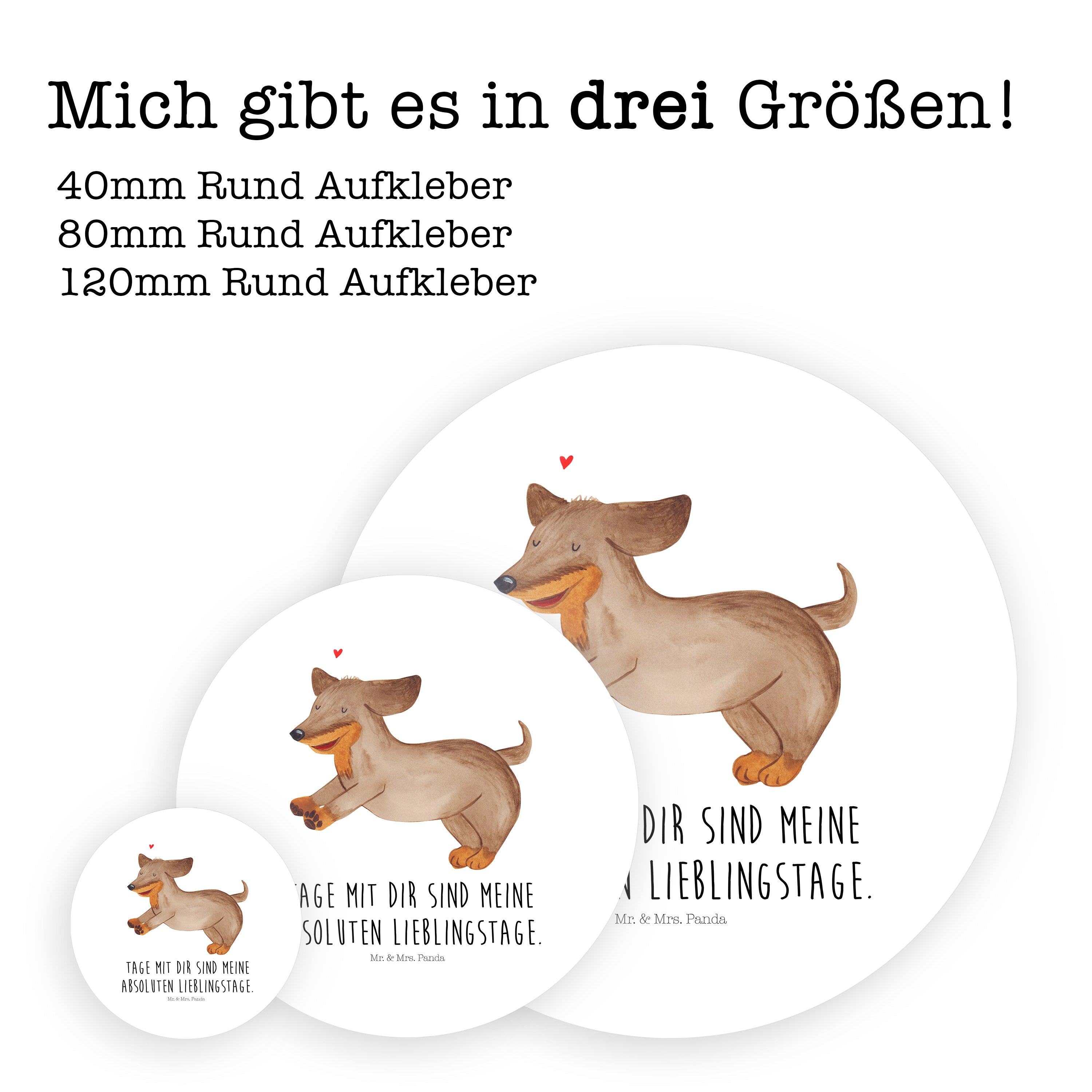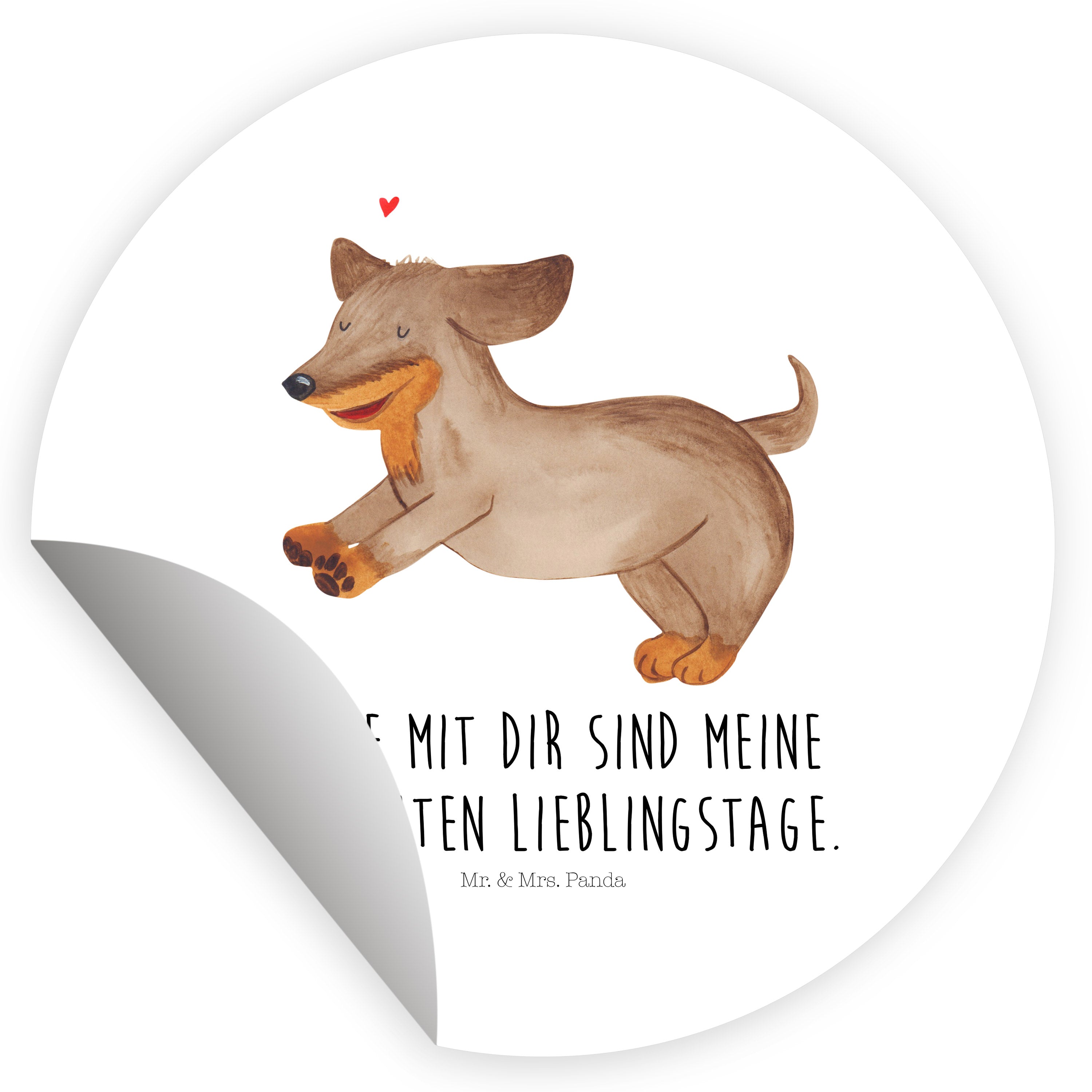 80mm Rund Aufkleber Hund Dackel fröhlich - mit Spruch - Hundeglück
