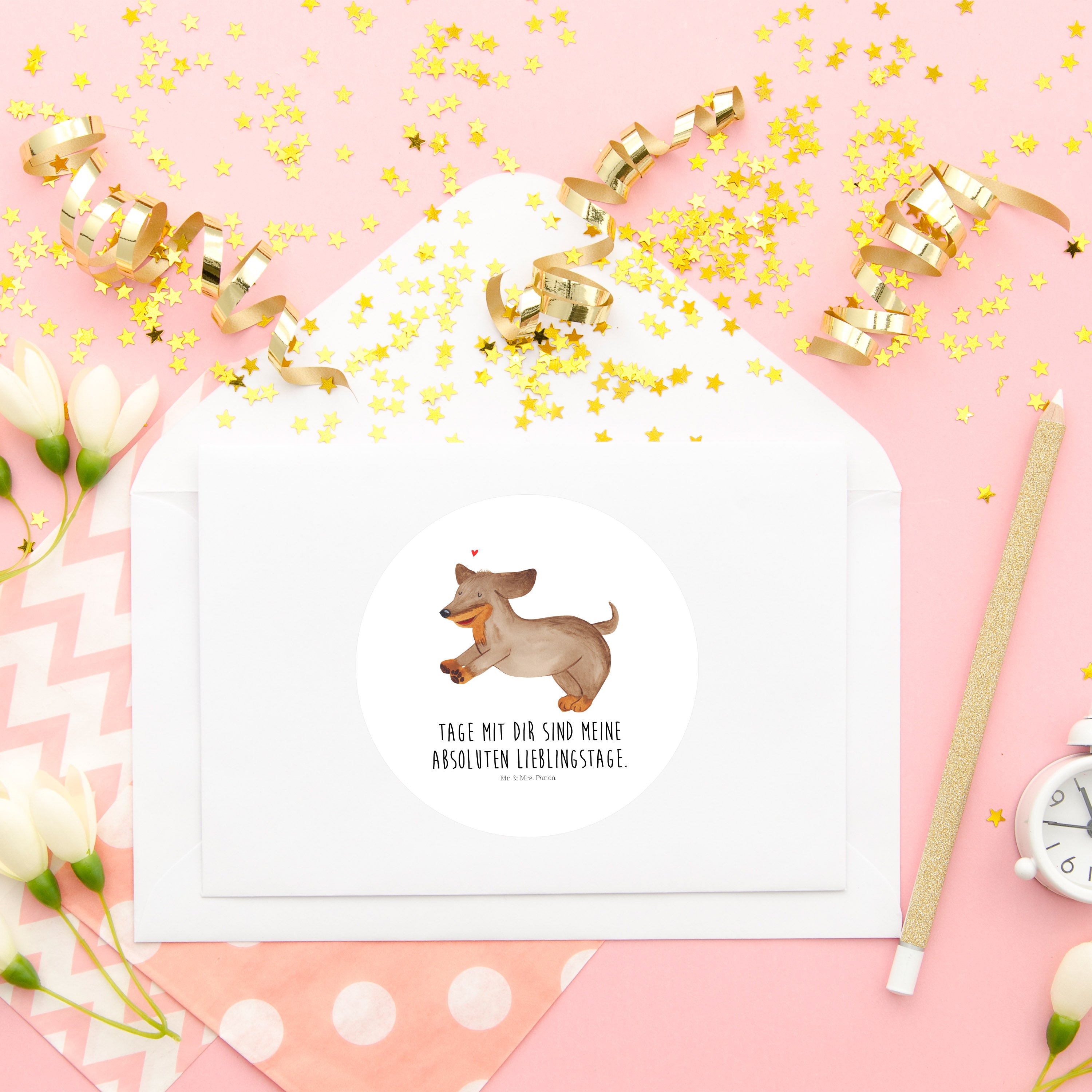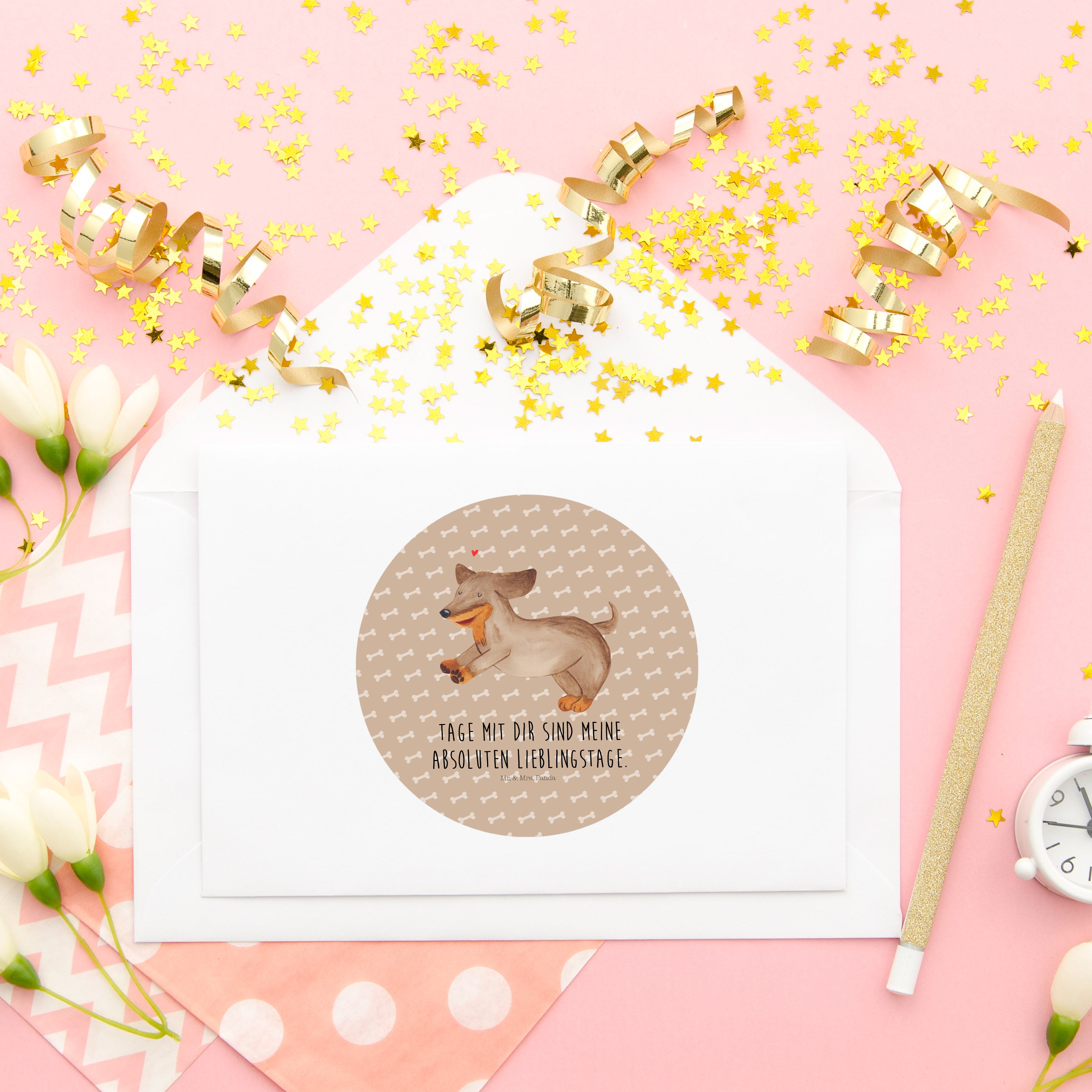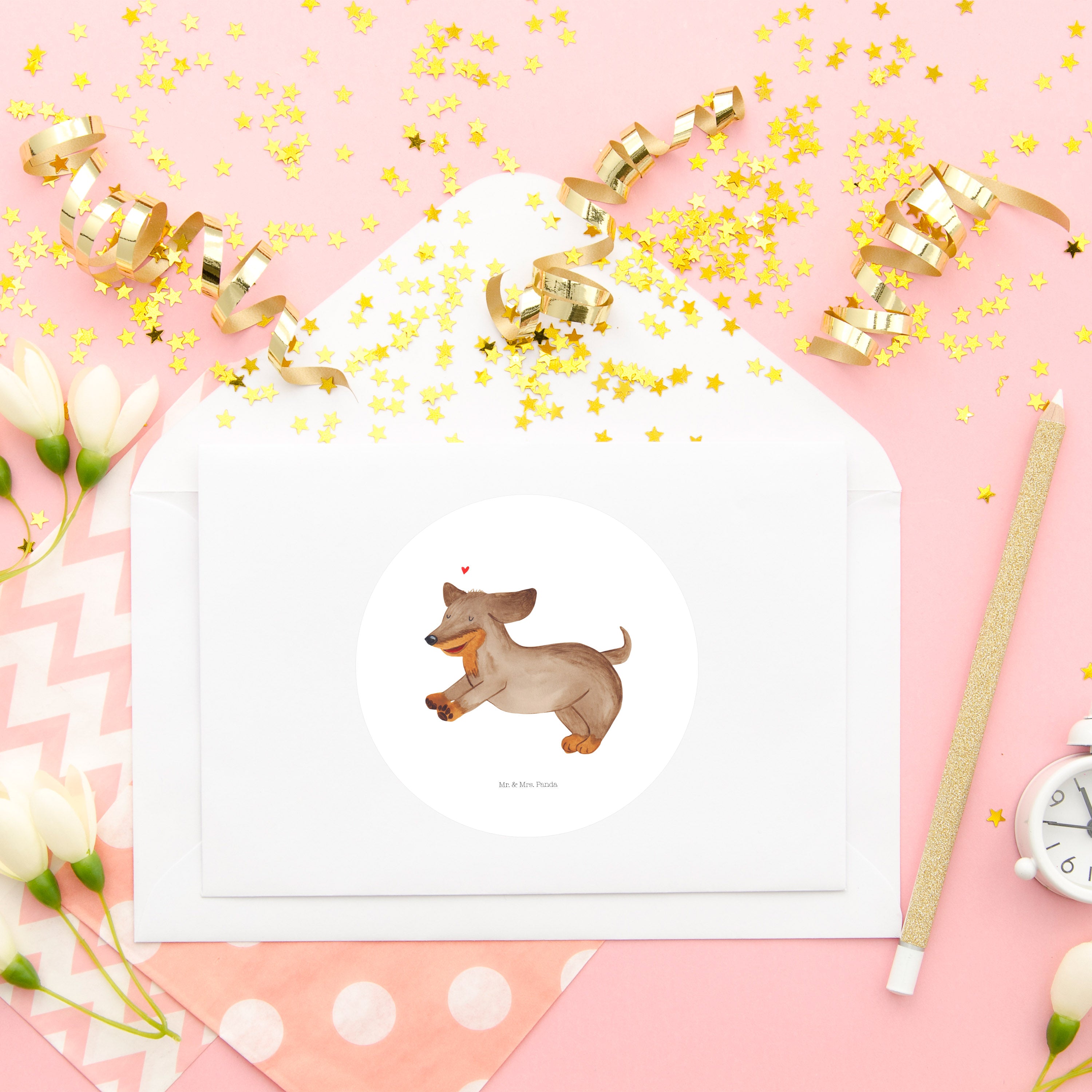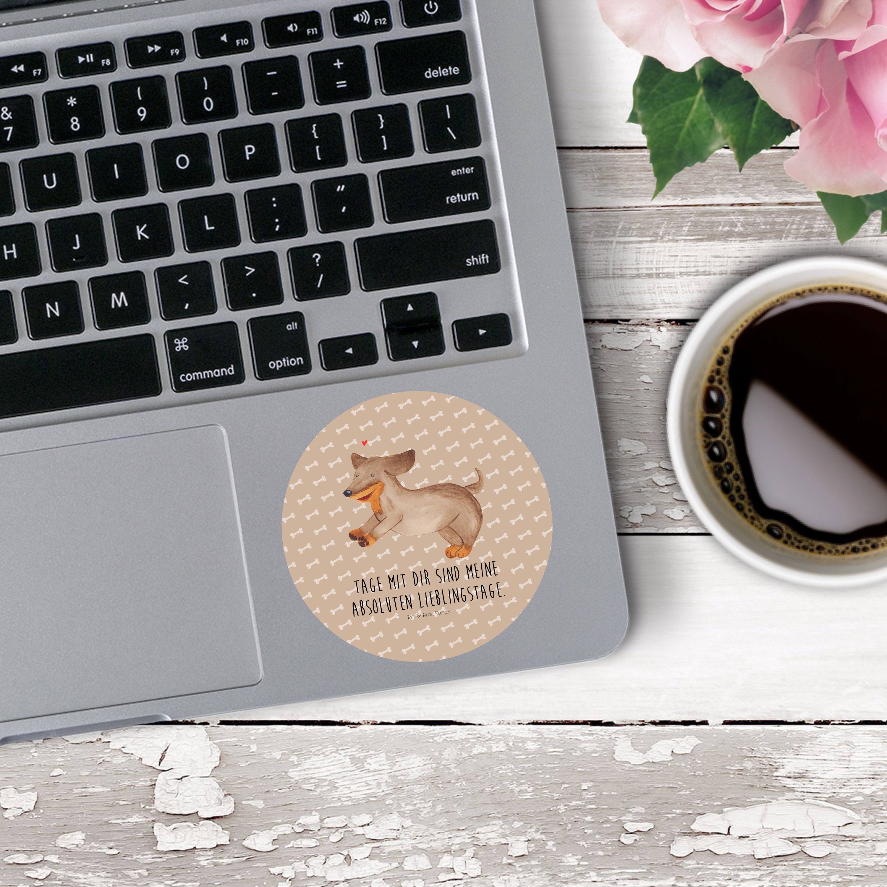 80mm Rund Aufkleber Hund Dackel fröhlich - mit Spruch - Hundeglück