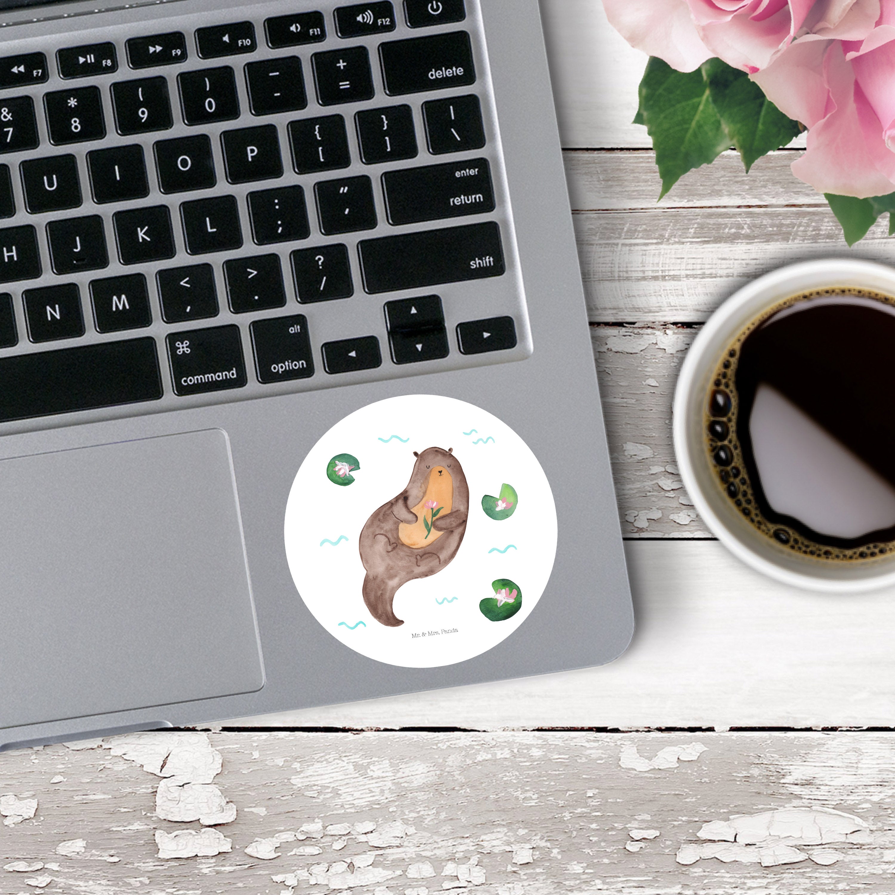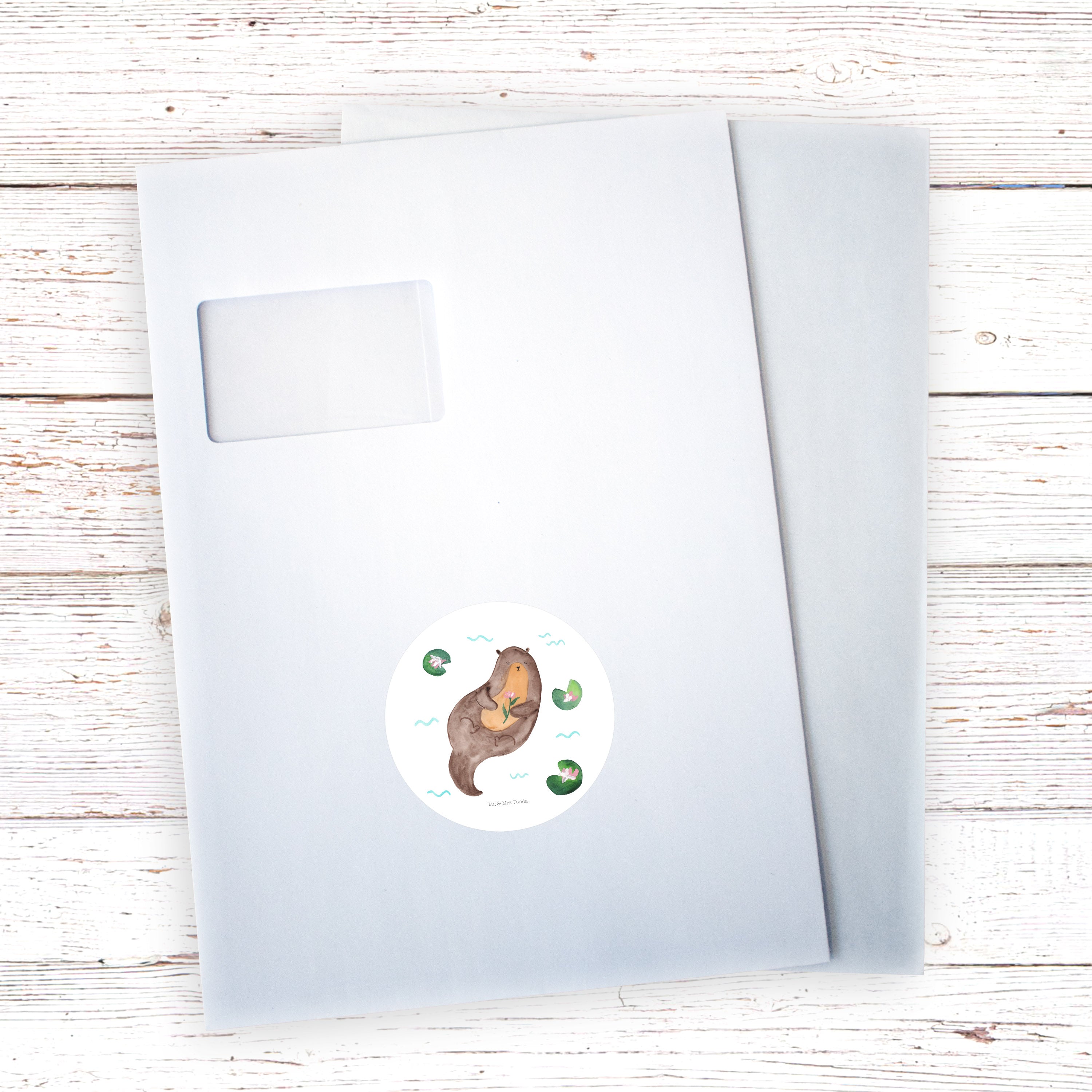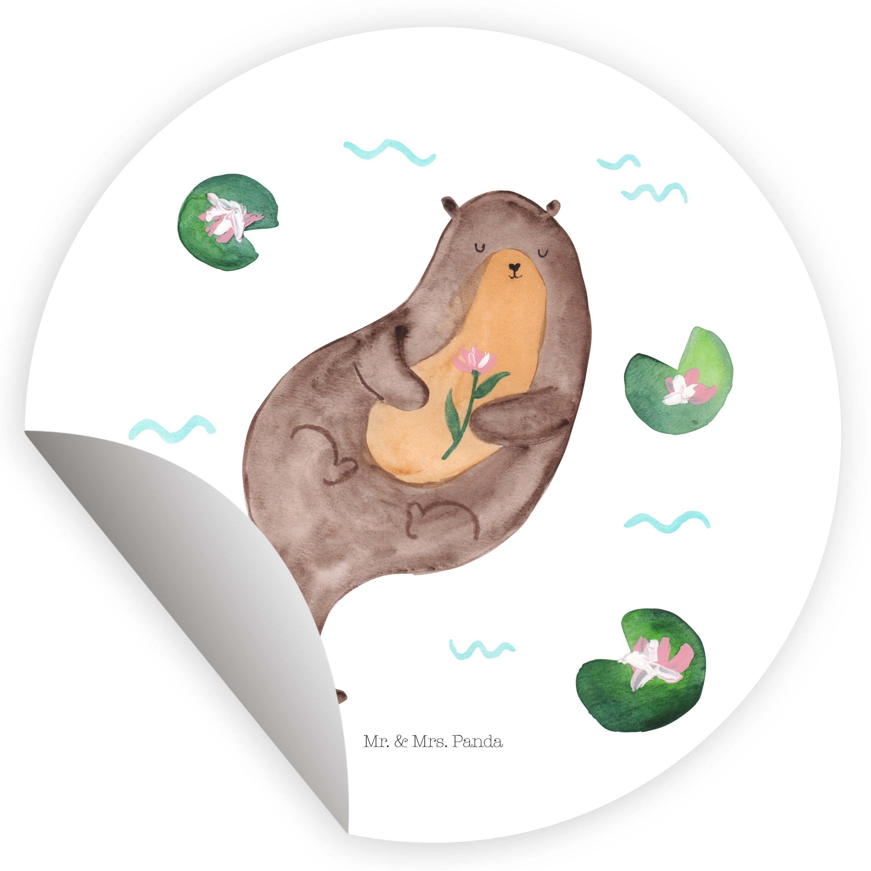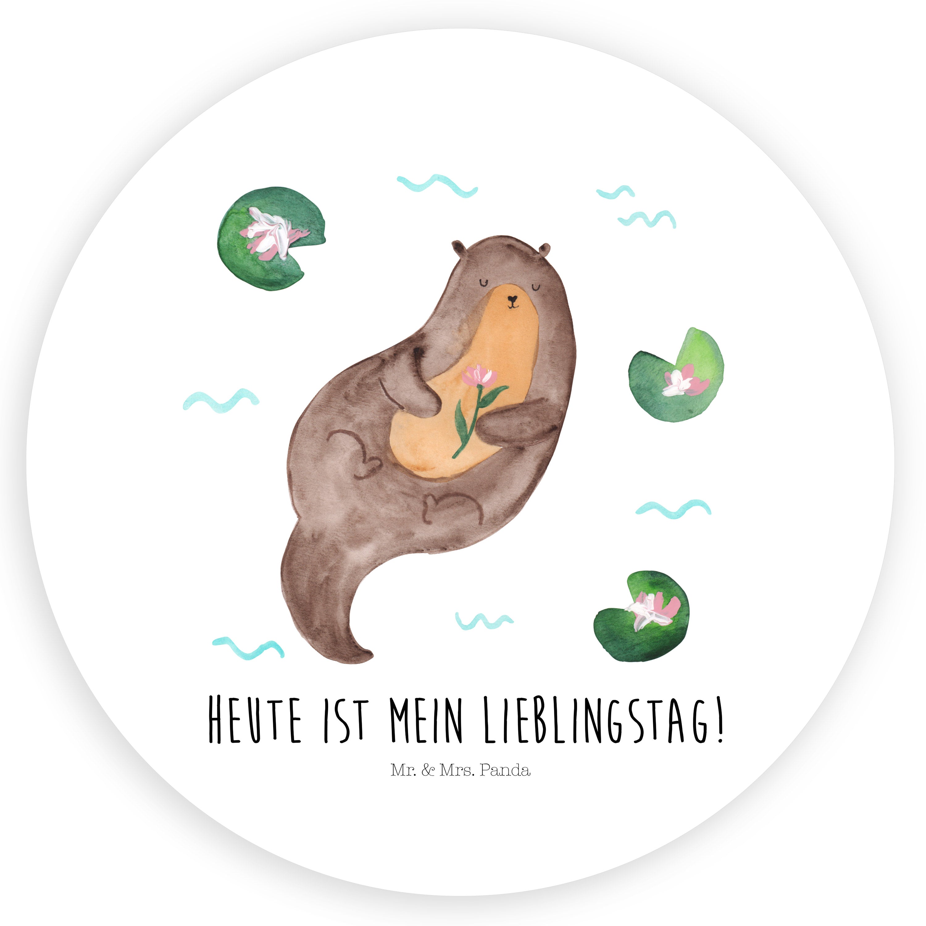 80mm Rund Aufkleber Otter mit Seerose - mit Spruch - Weiß