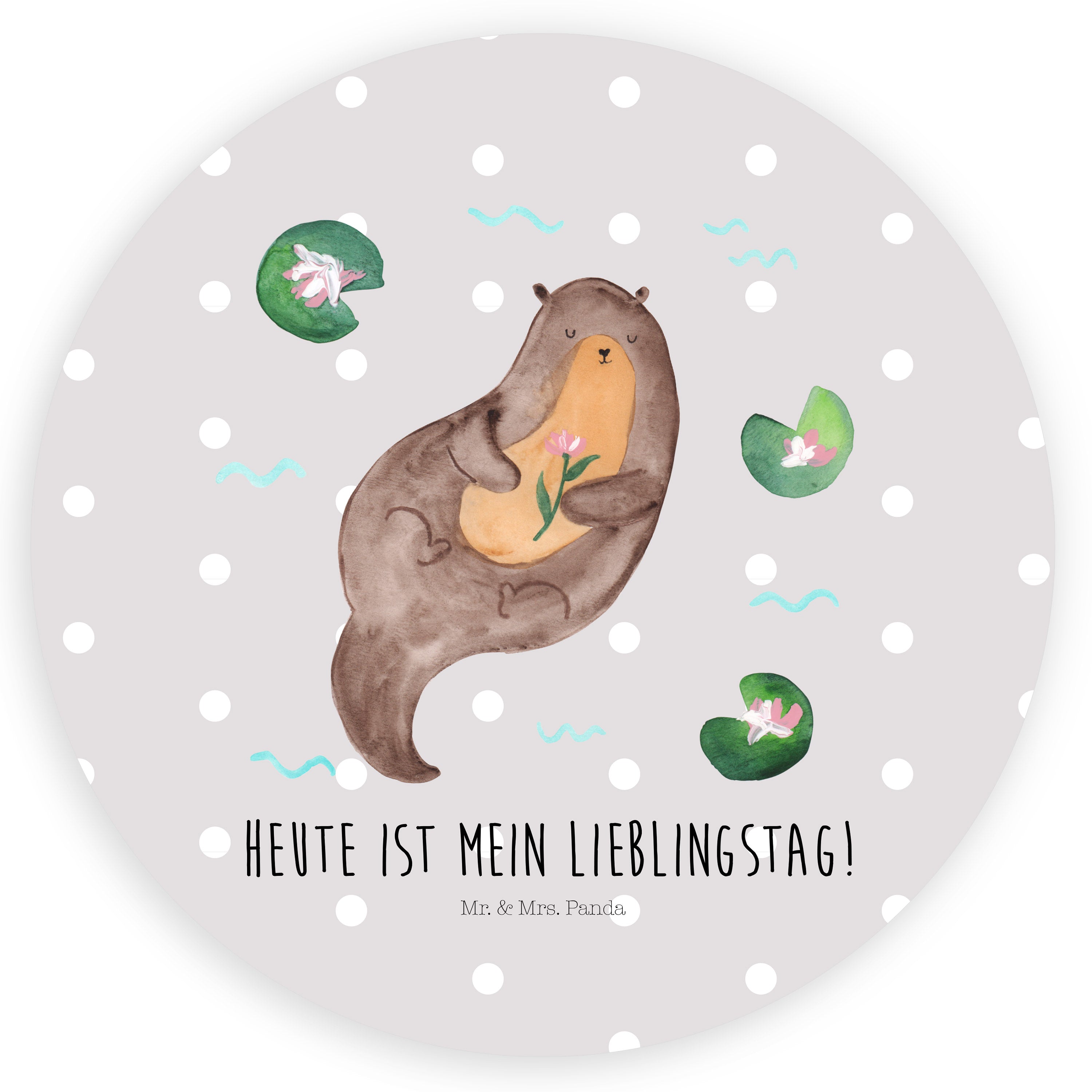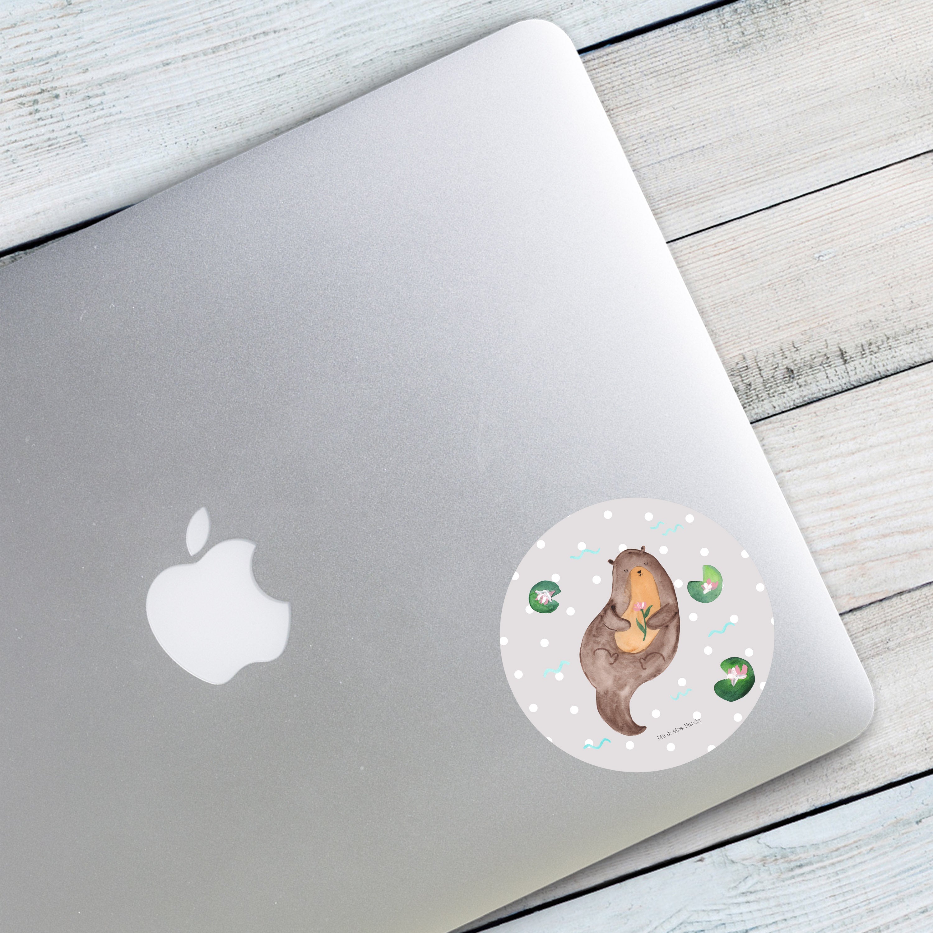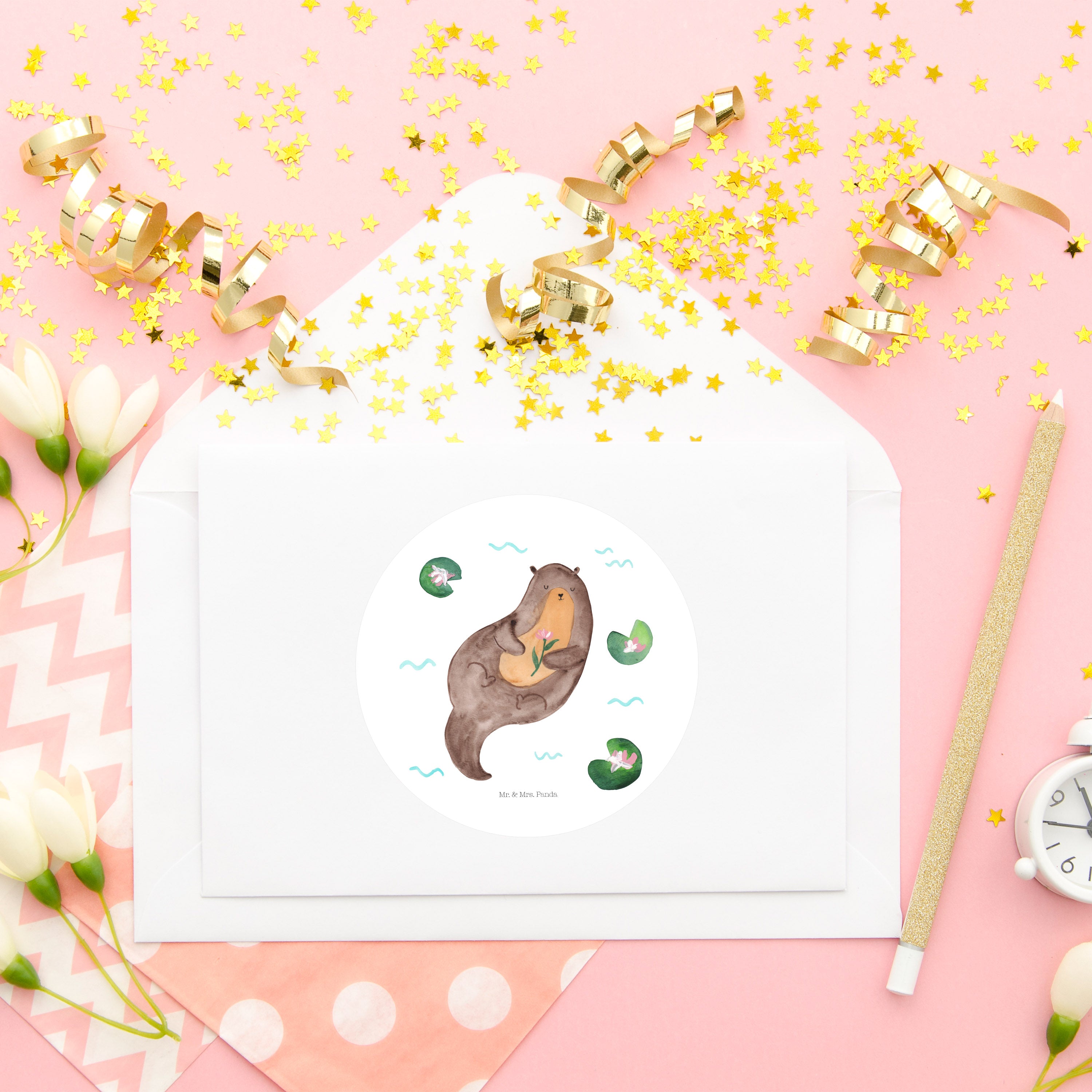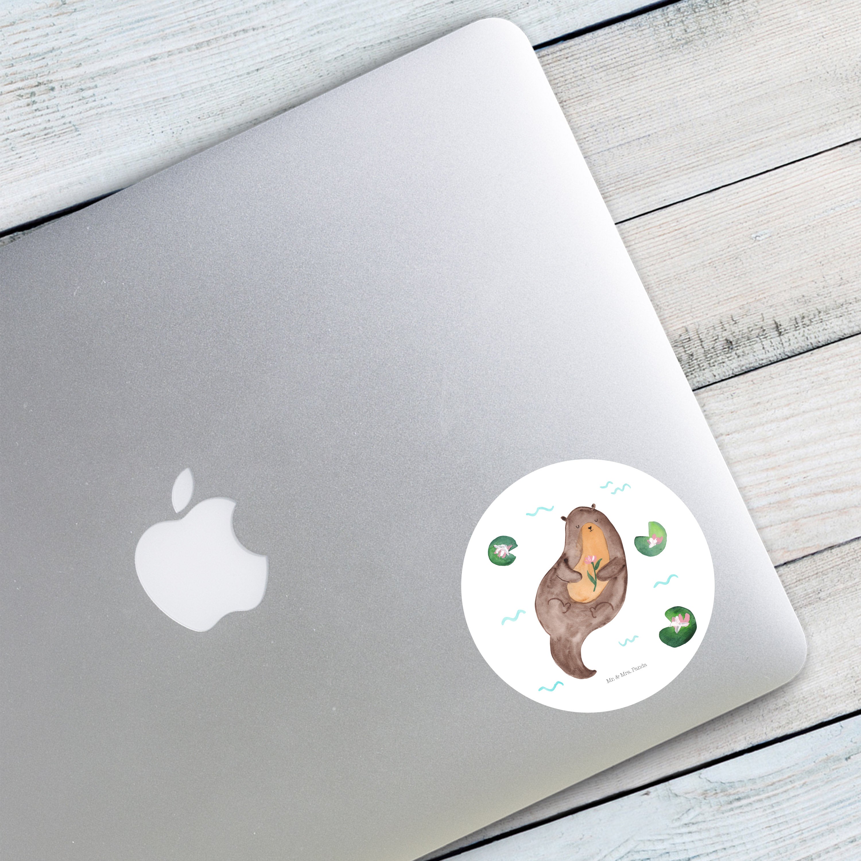 80mm Rund Aufkleber Otter mit Seerose - mit Spruch - Weiß