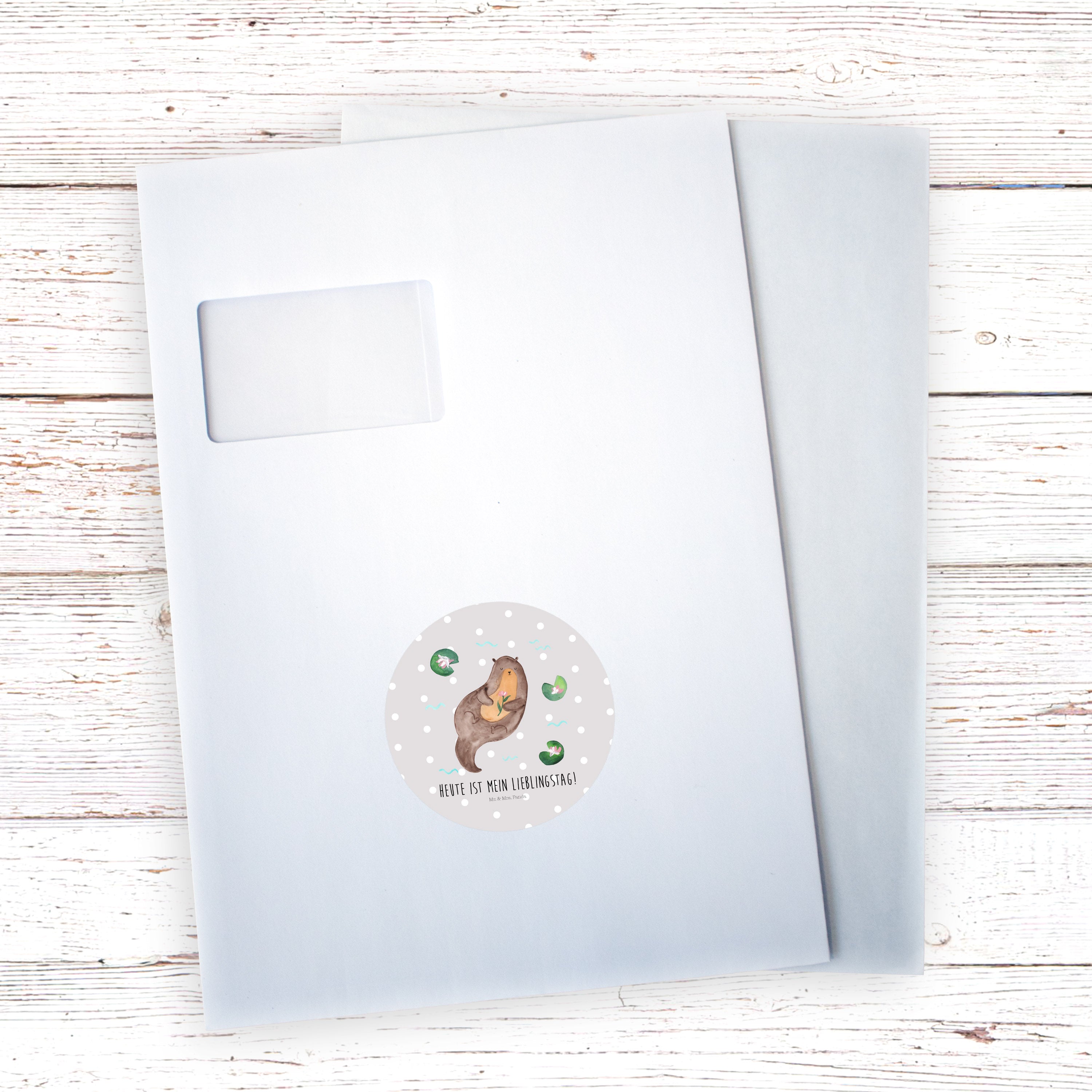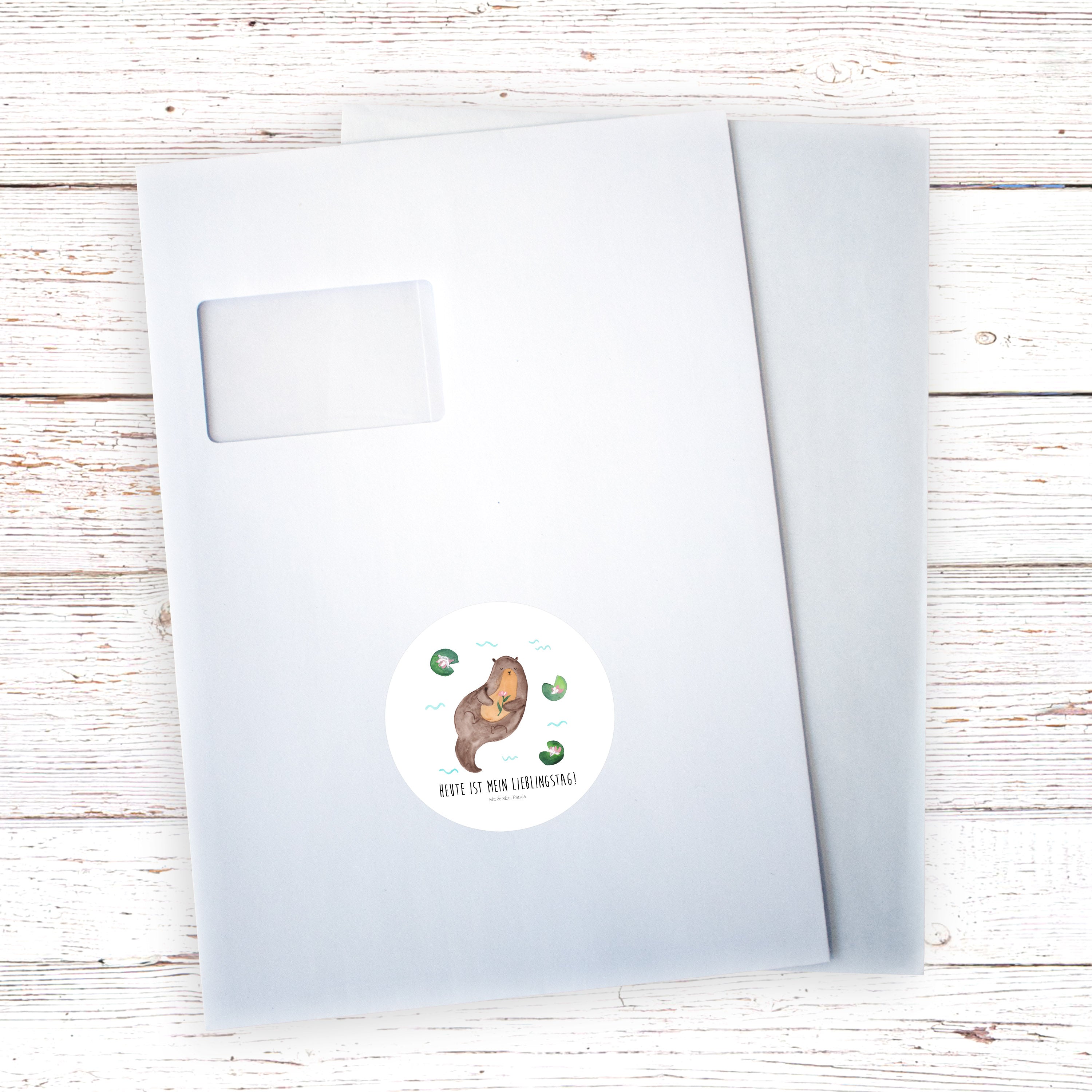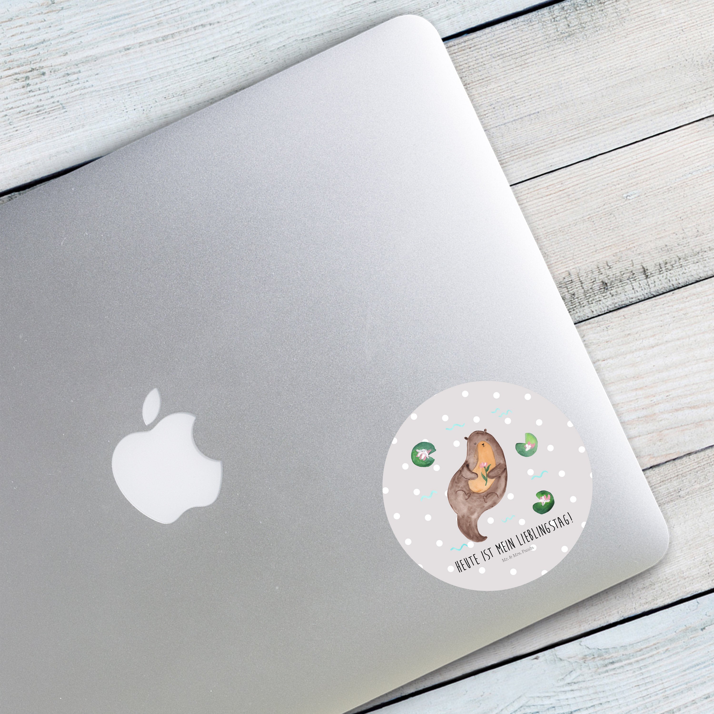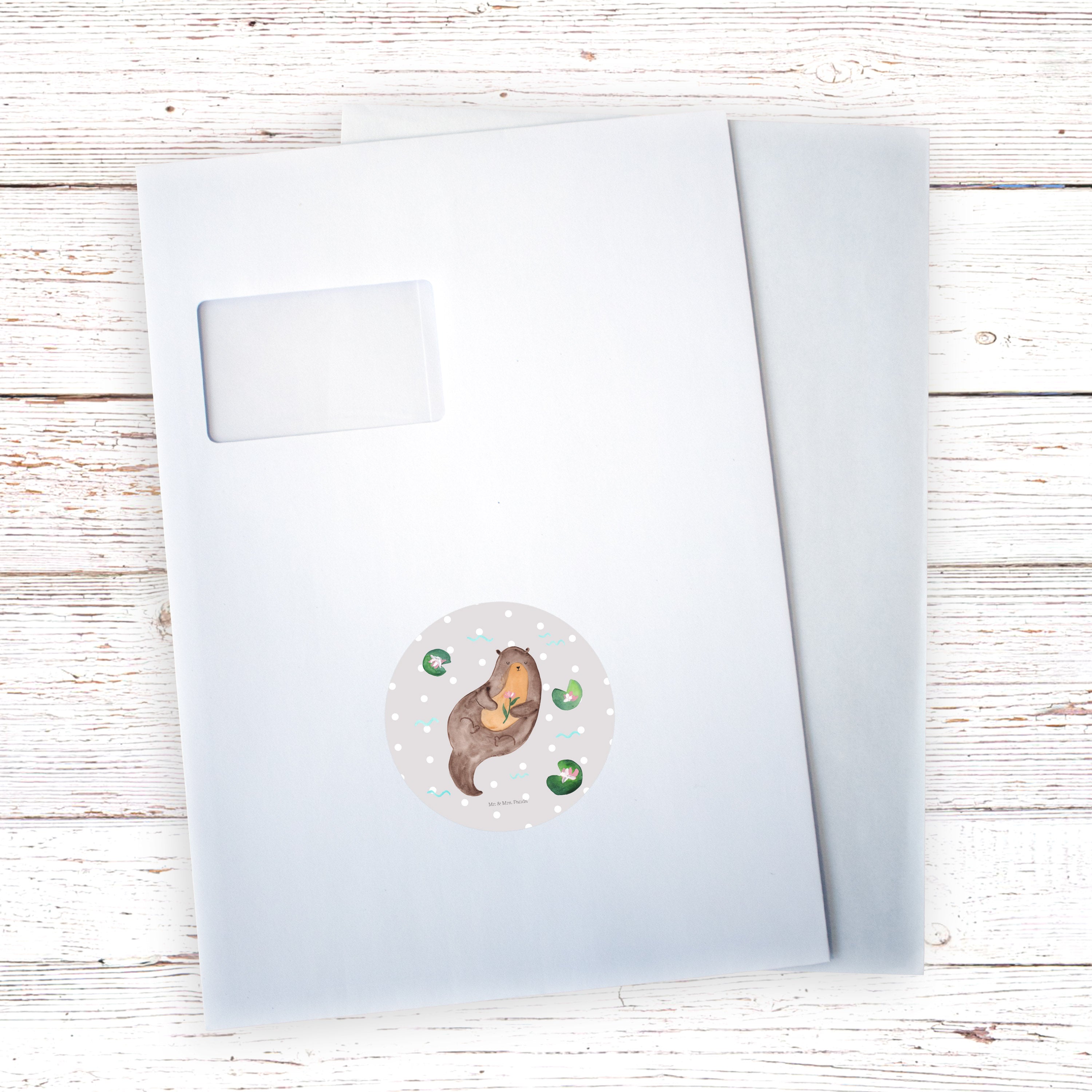 80mm Rund Aufkleber Otter mit Seerose - mit Spruch - Weiß