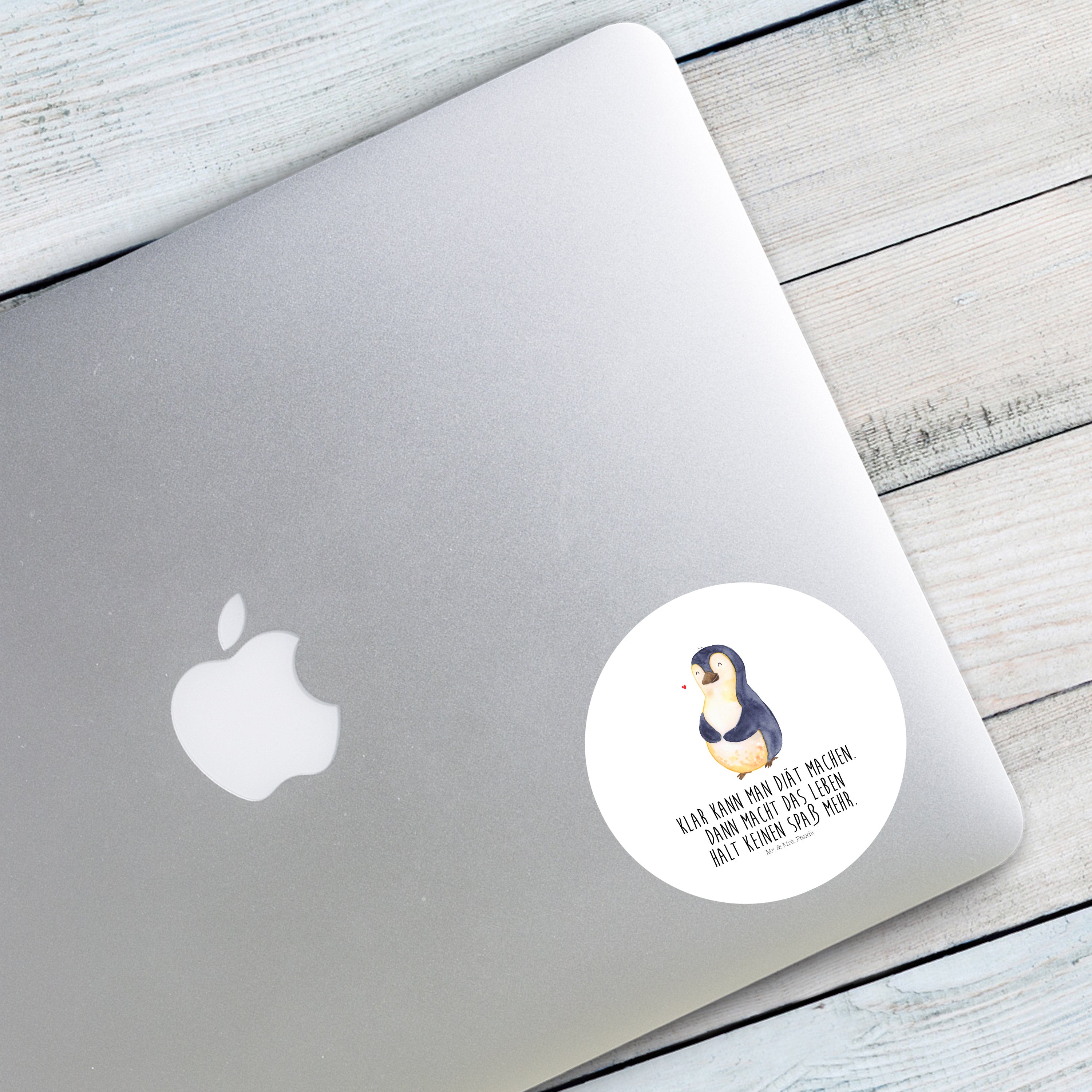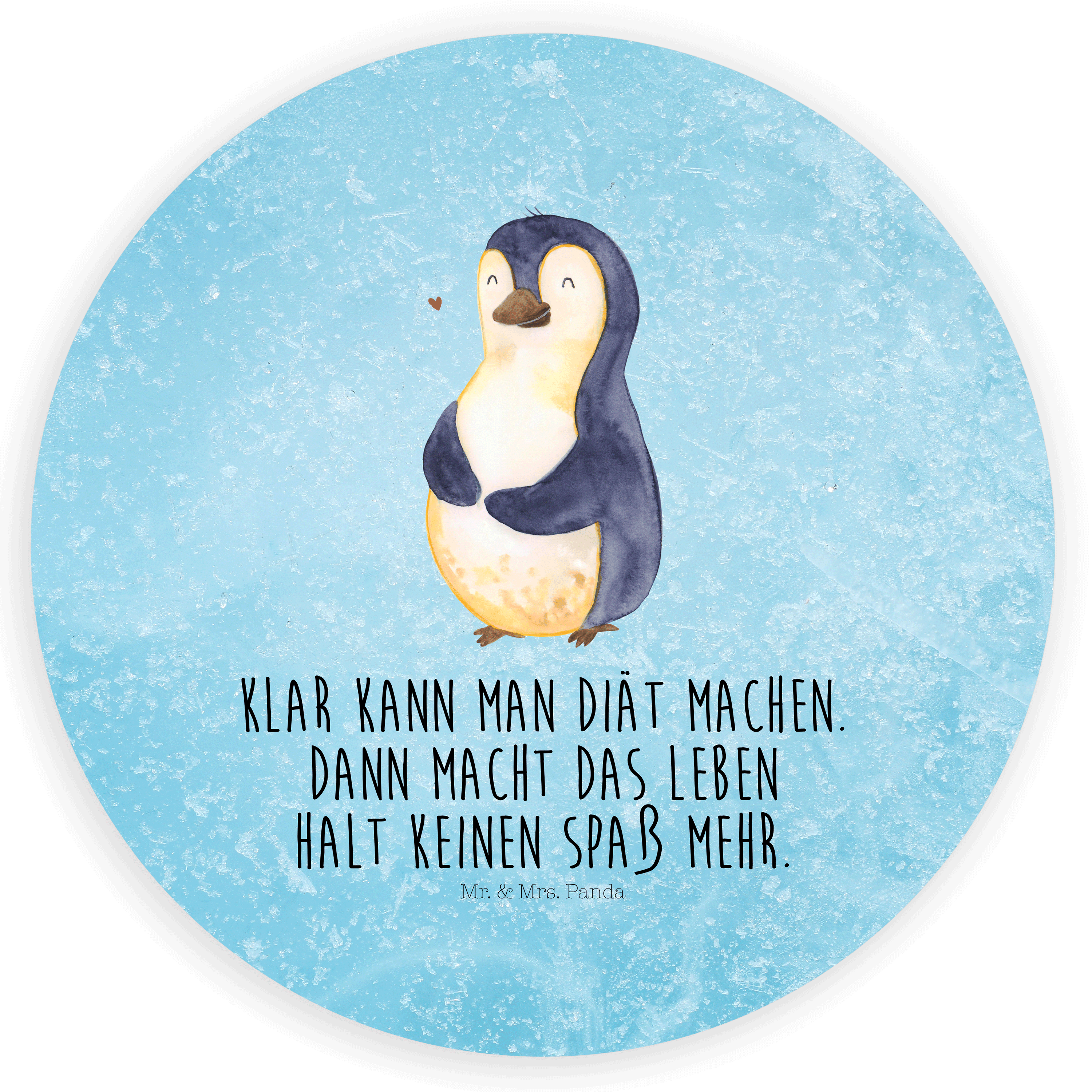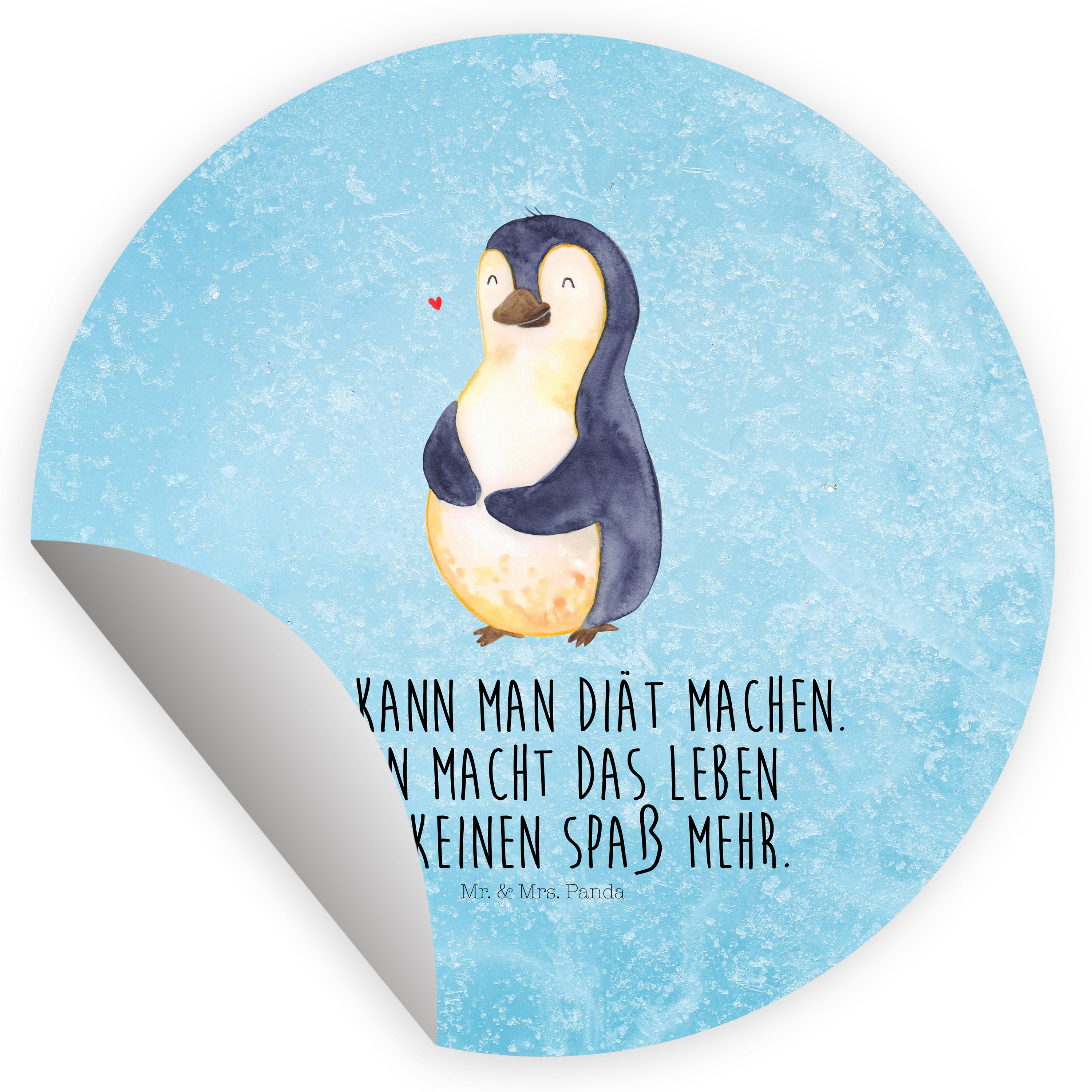 80mm Rund Aufkleber Pinguin Diät - mit Spruch - Eisblau