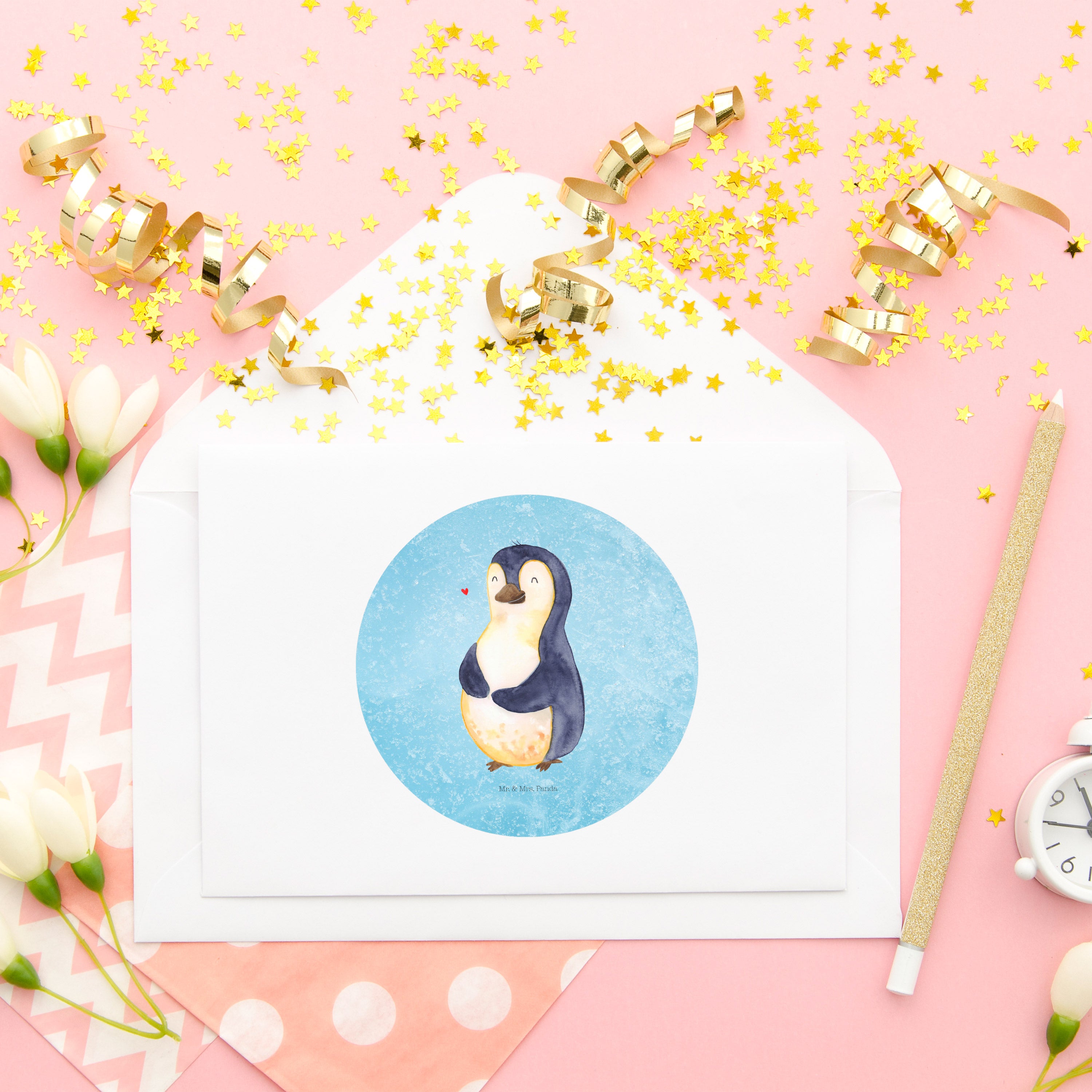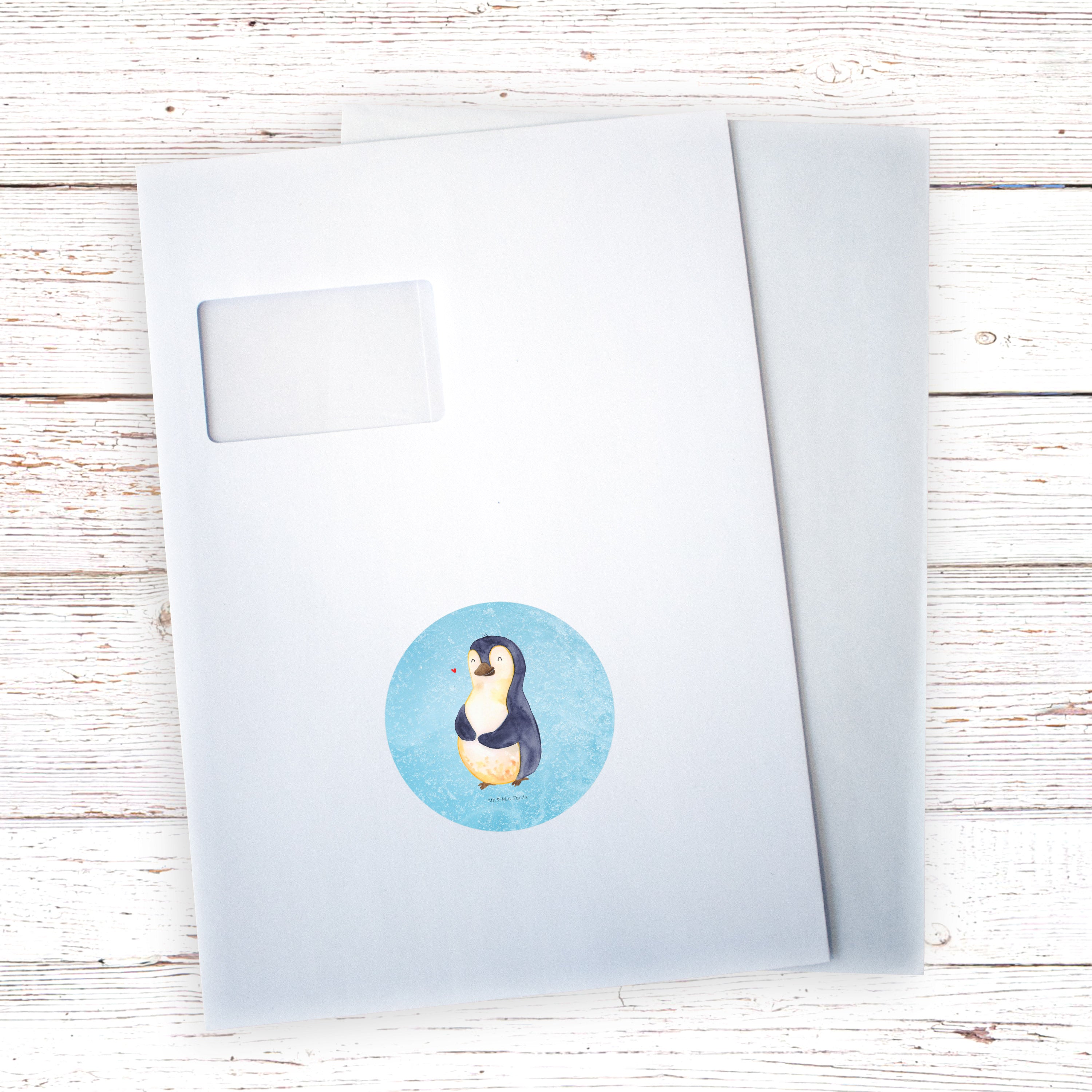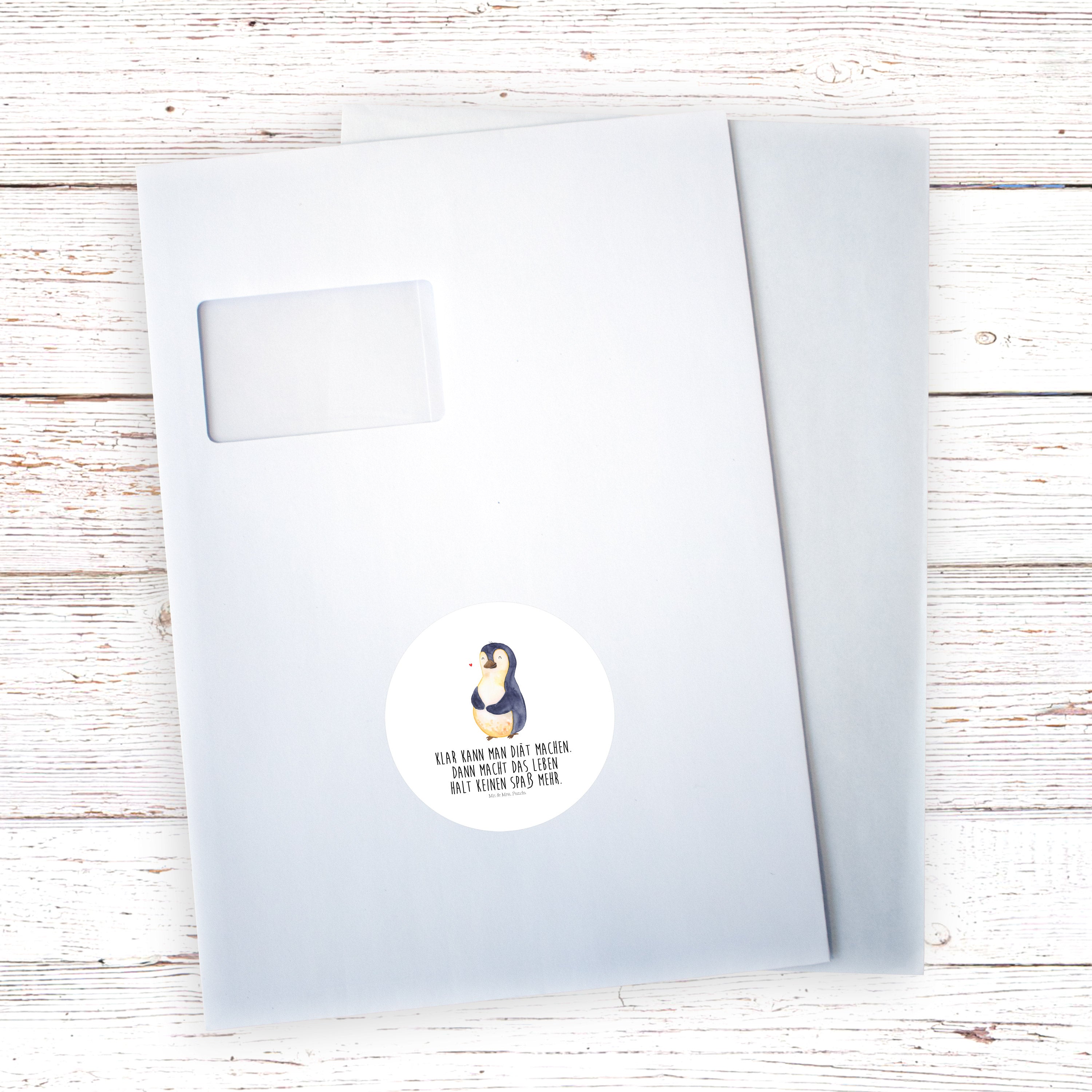 80mm Rund Aufkleber Pinguin Diät - mit Spruch - Eisblau
