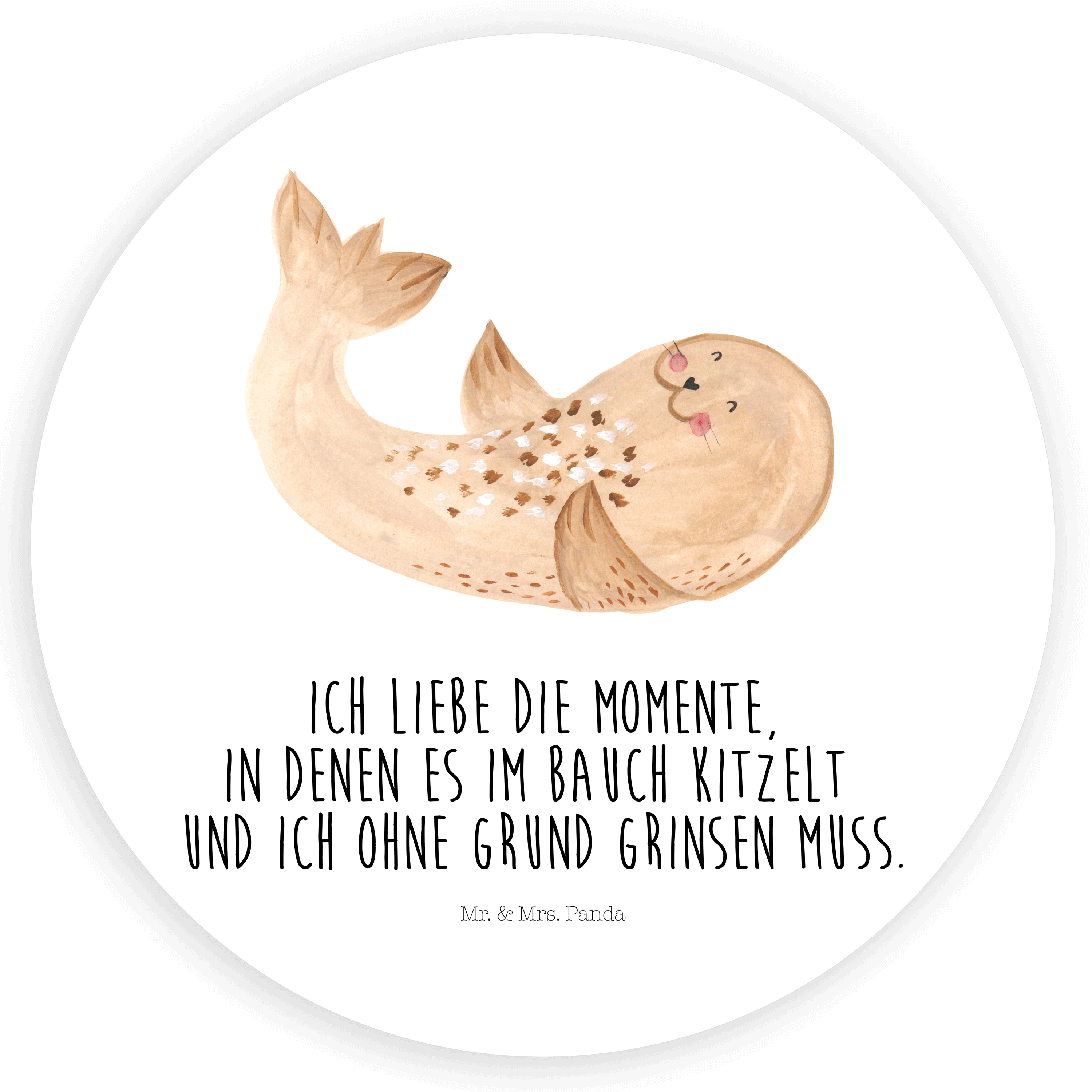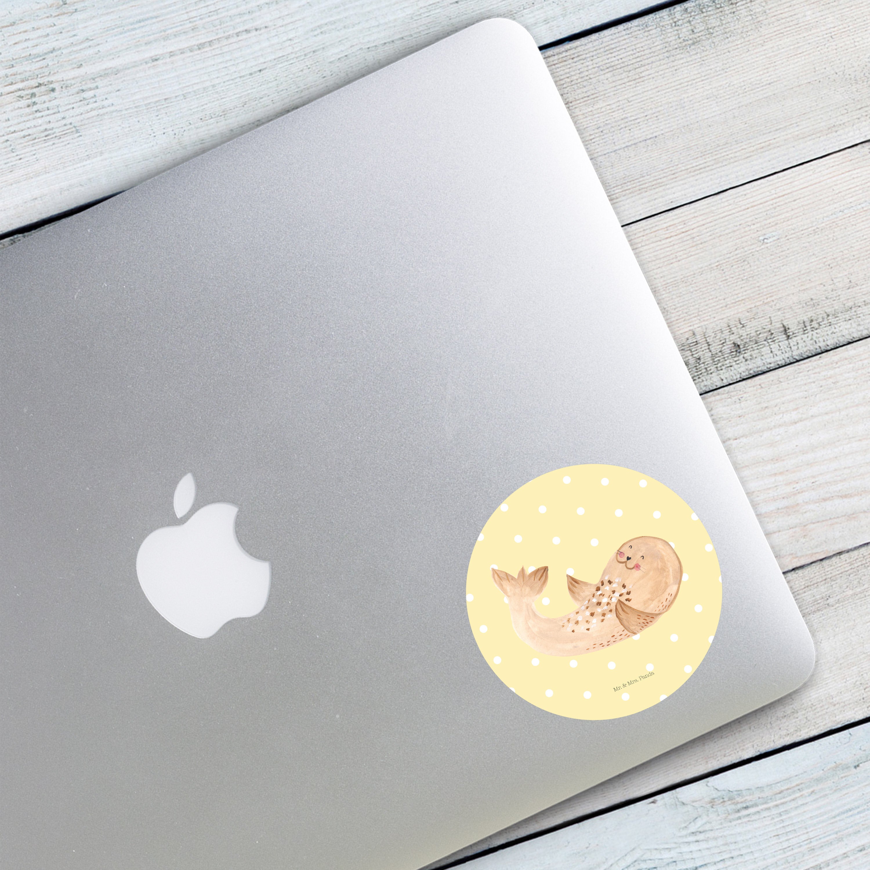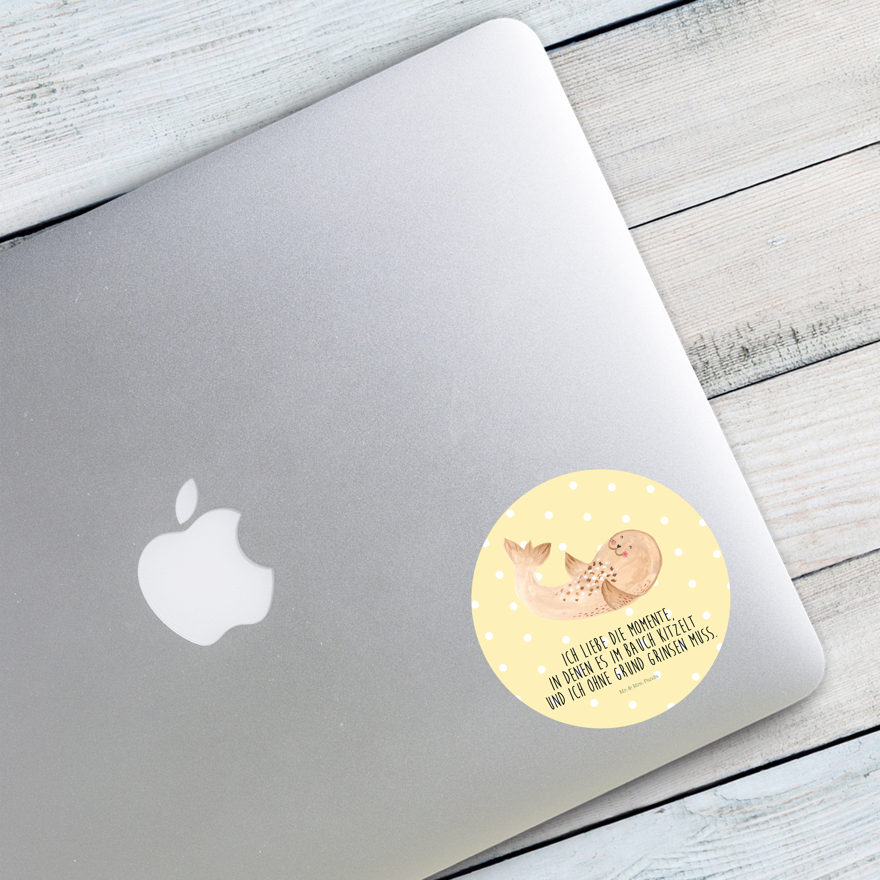 80mm Rund Aufkleber Robbe liegend - mit Spruch - Gelb Pastell