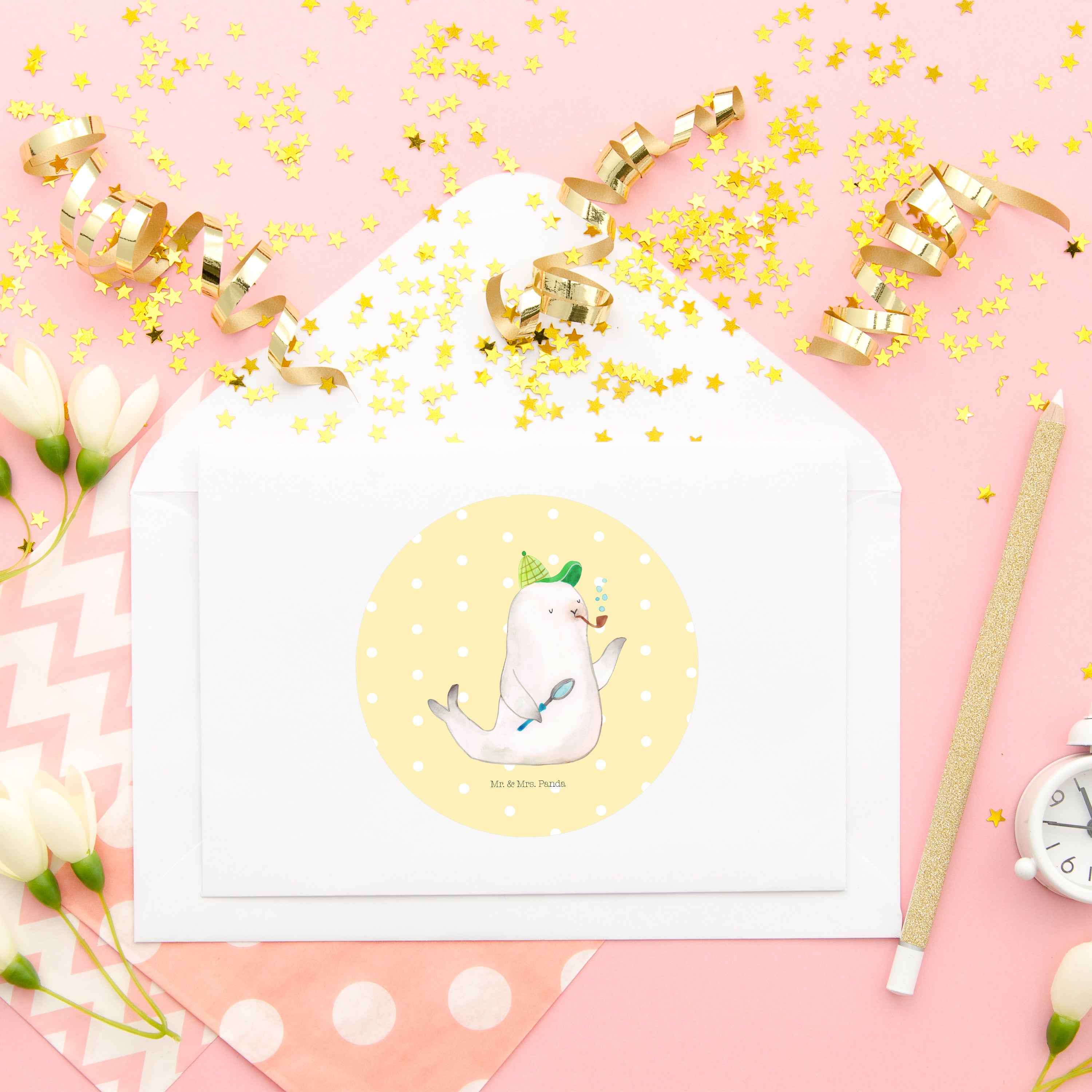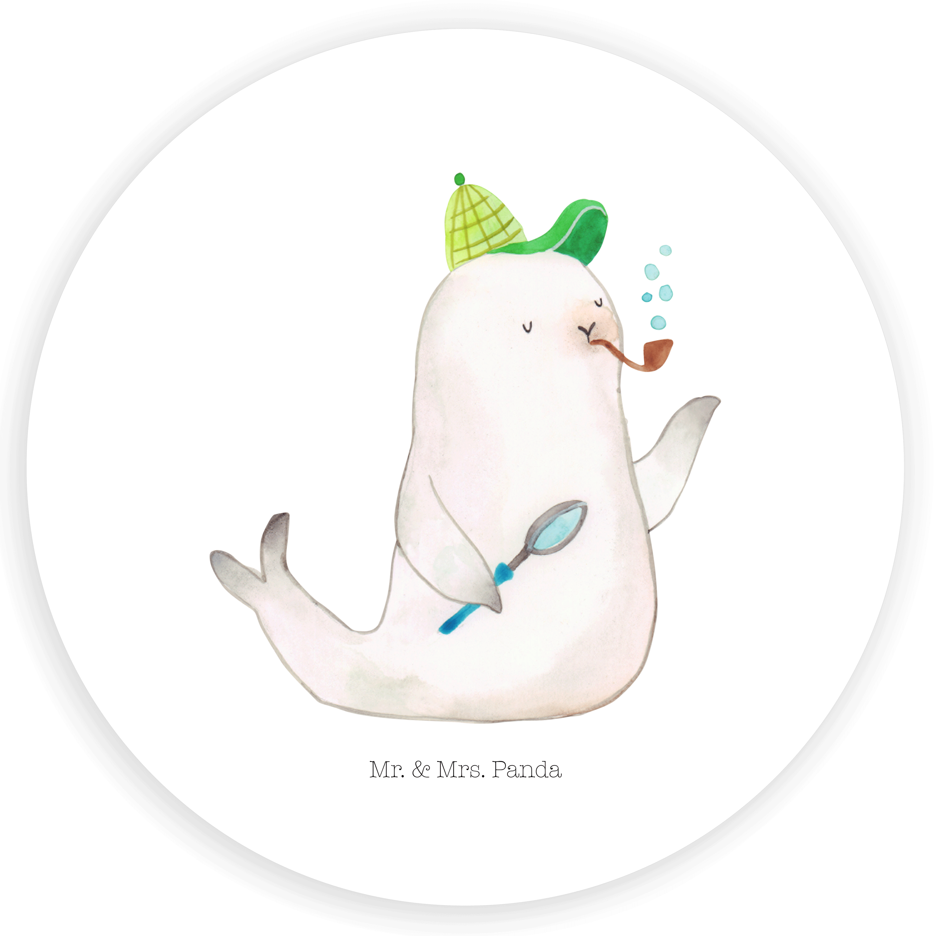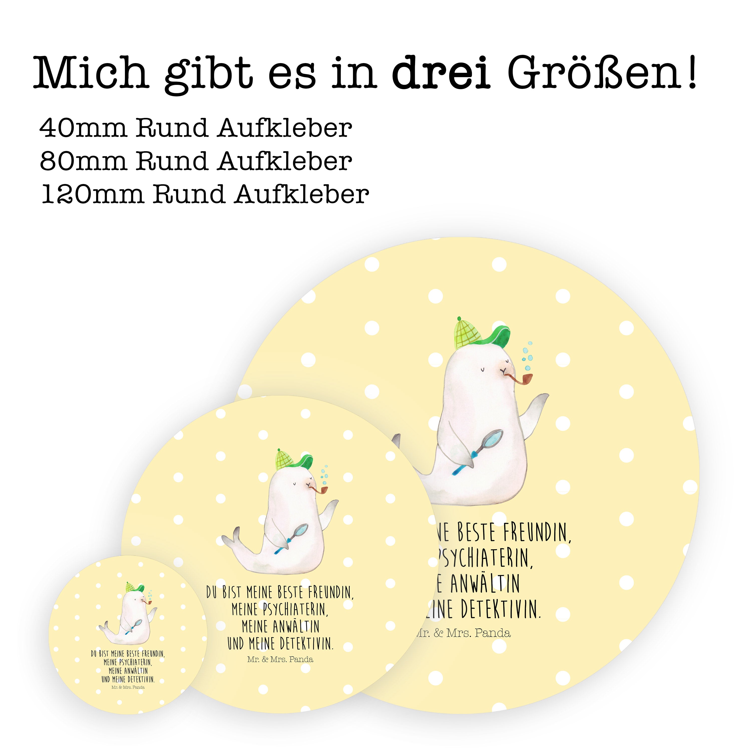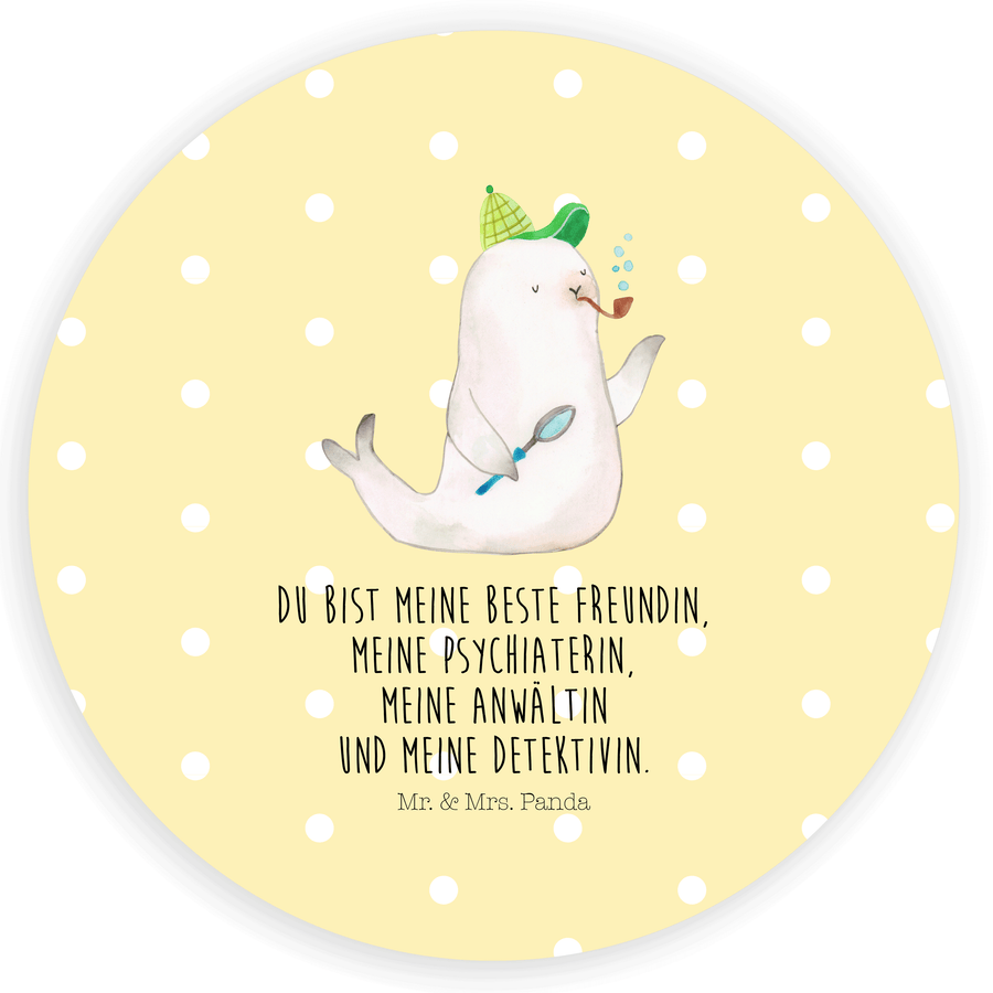 80mm Rund Aufkleber Robbe Sherlock - mit Spruch - Gelb Pastell