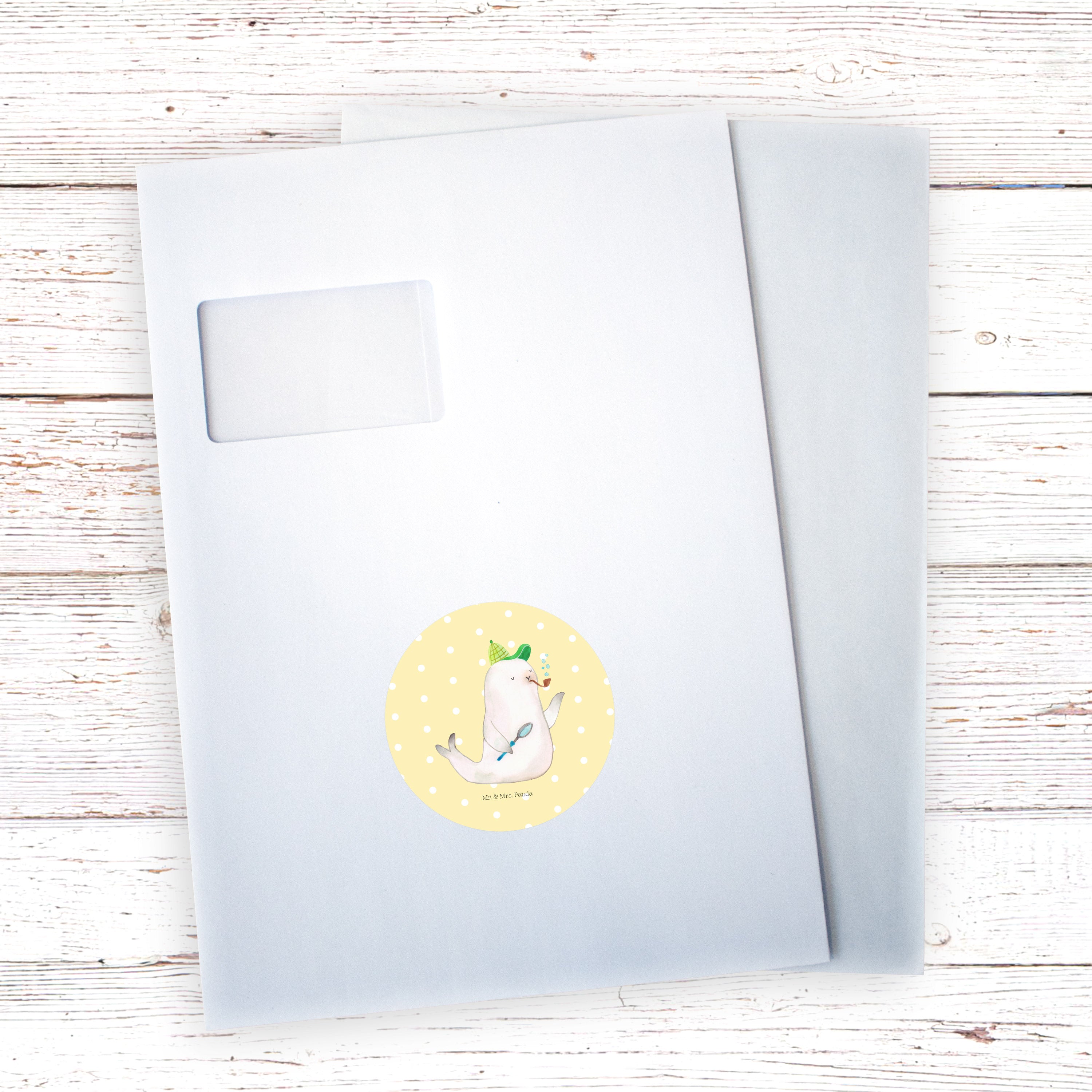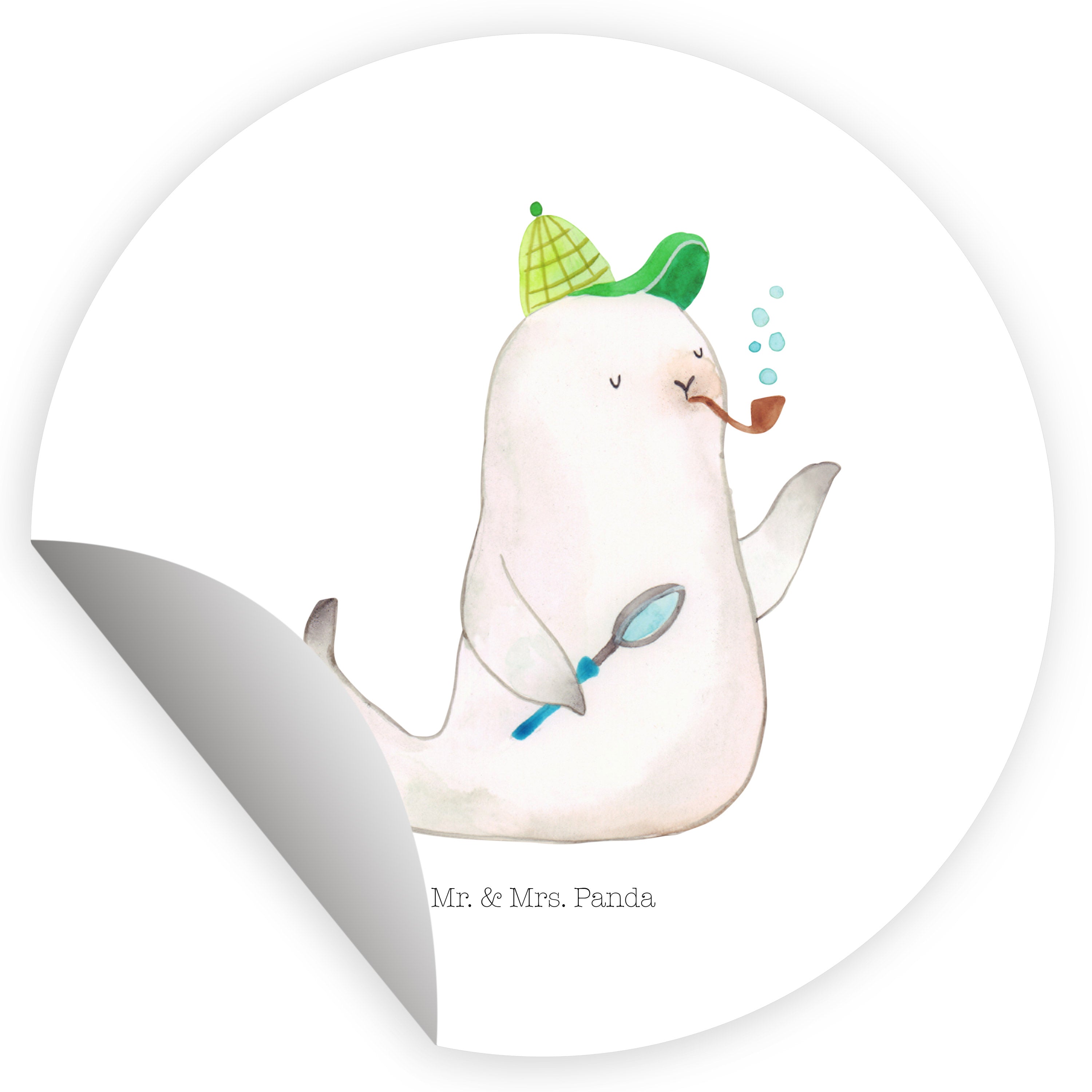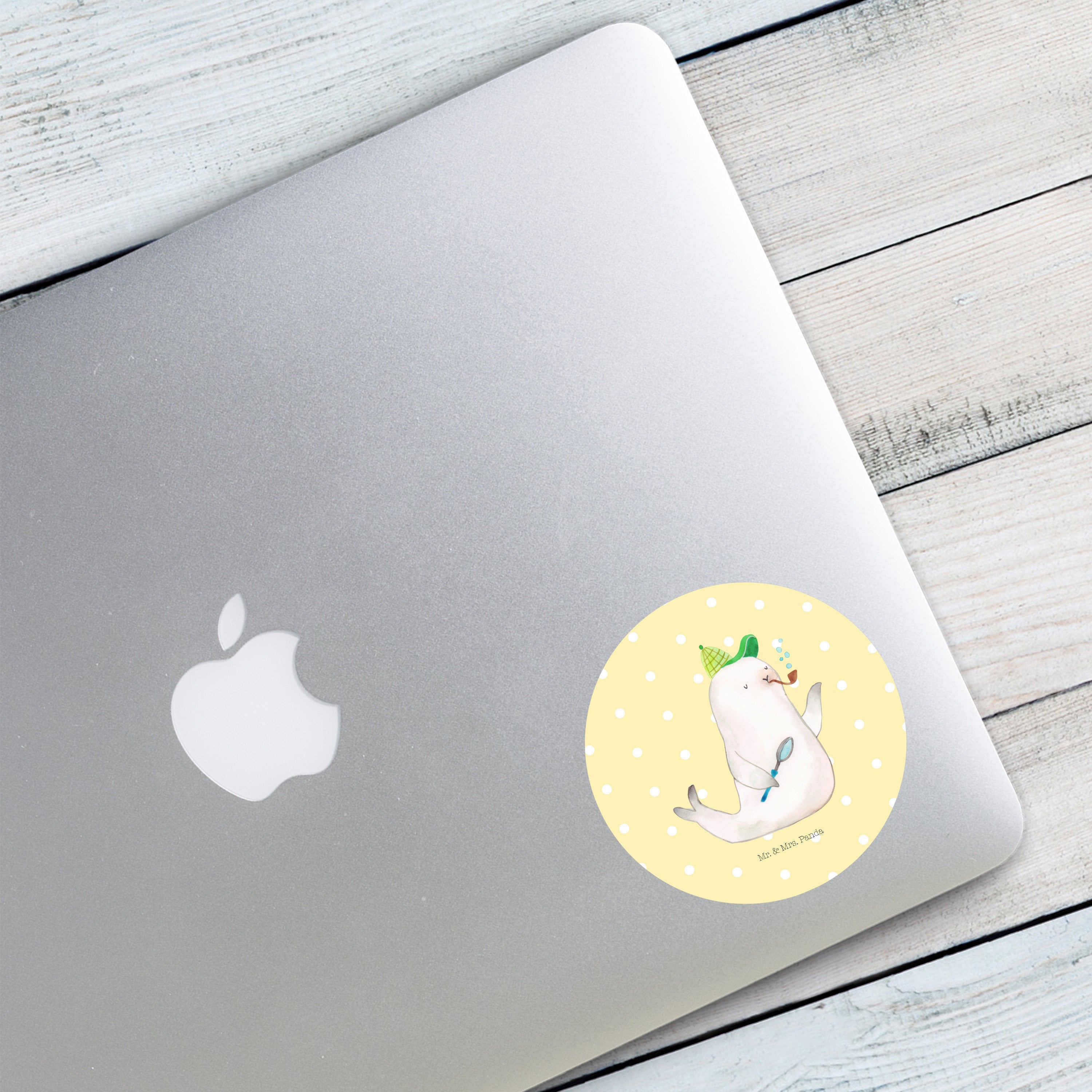 80mm Rund Aufkleber Robbe Sherlock - mit Spruch - Gelb Pastell