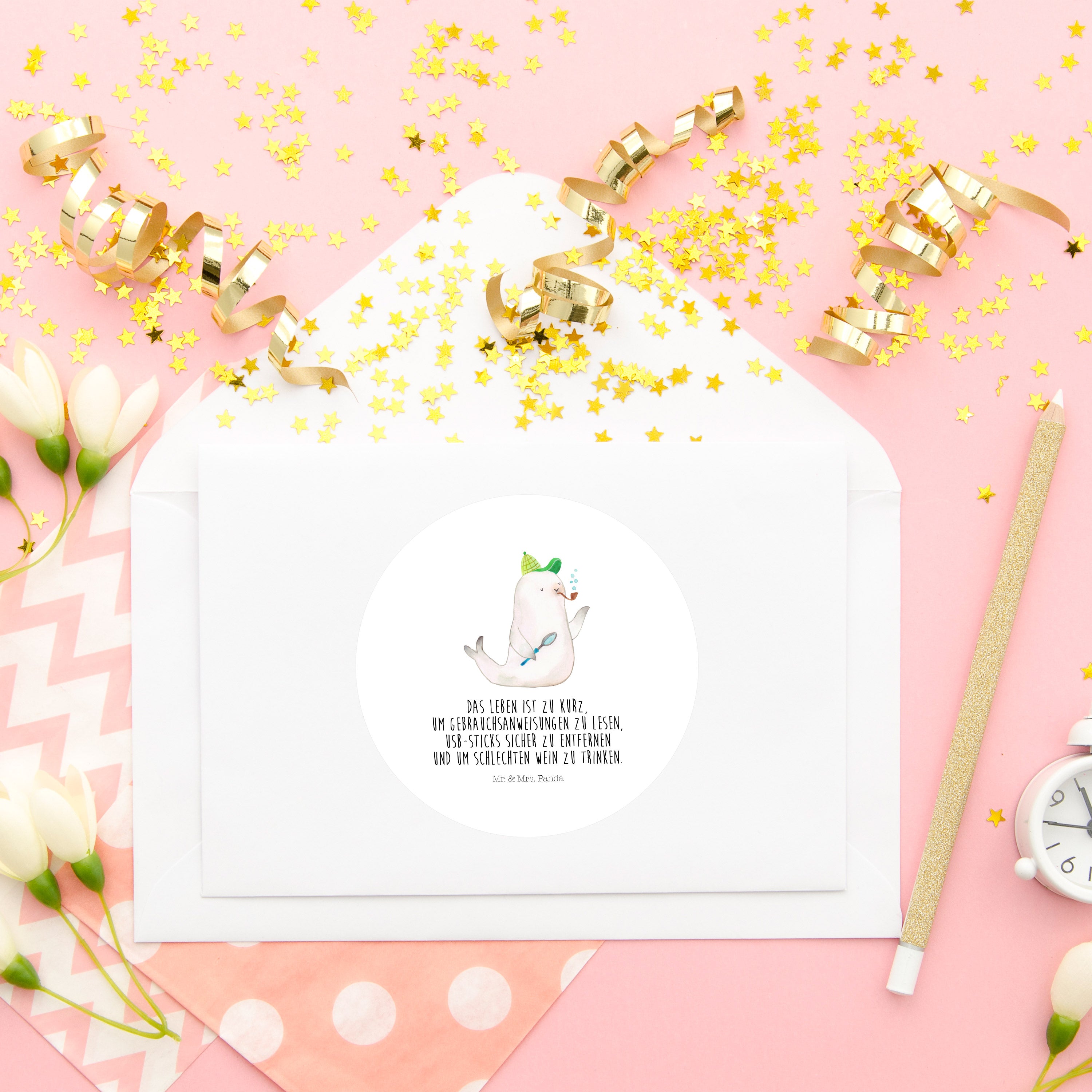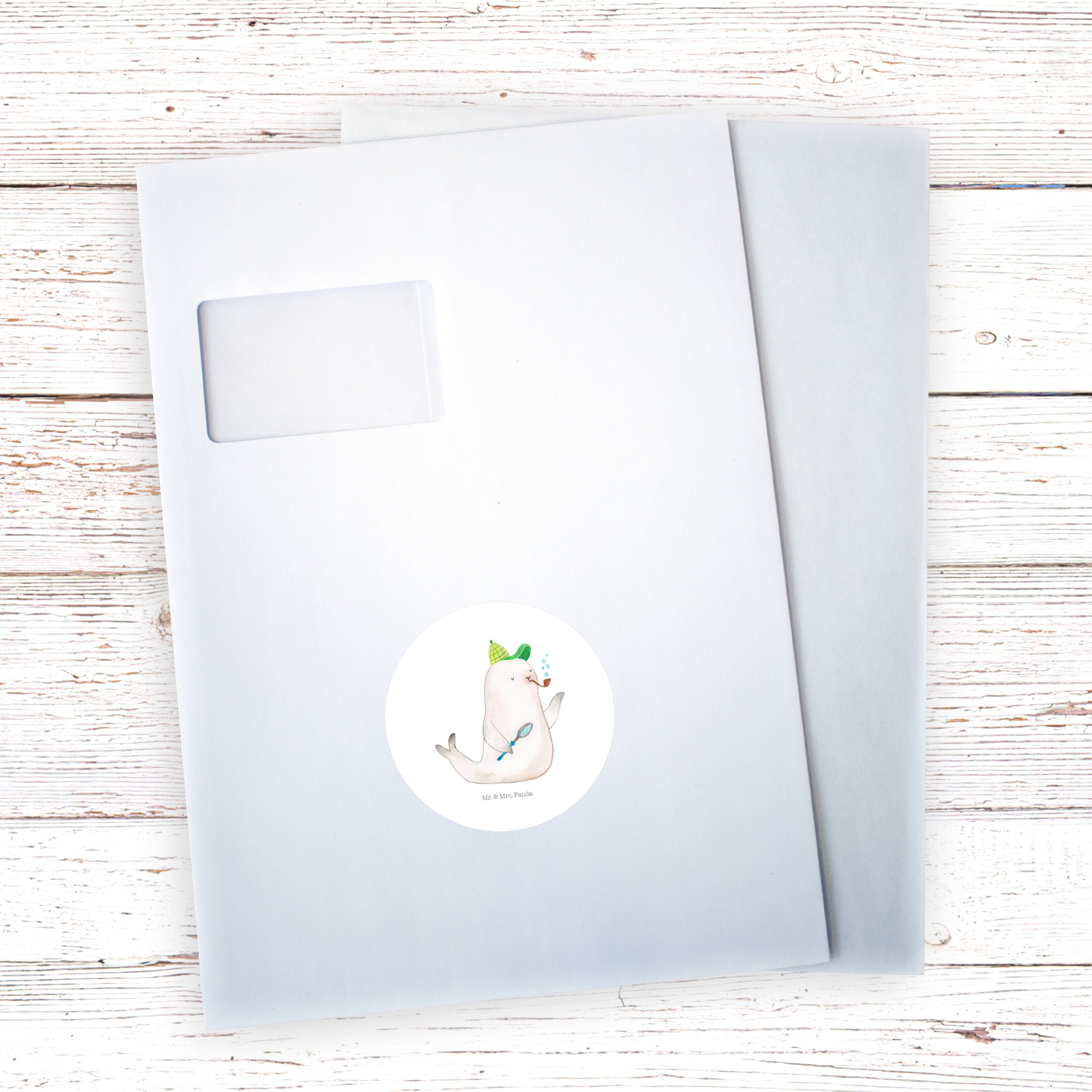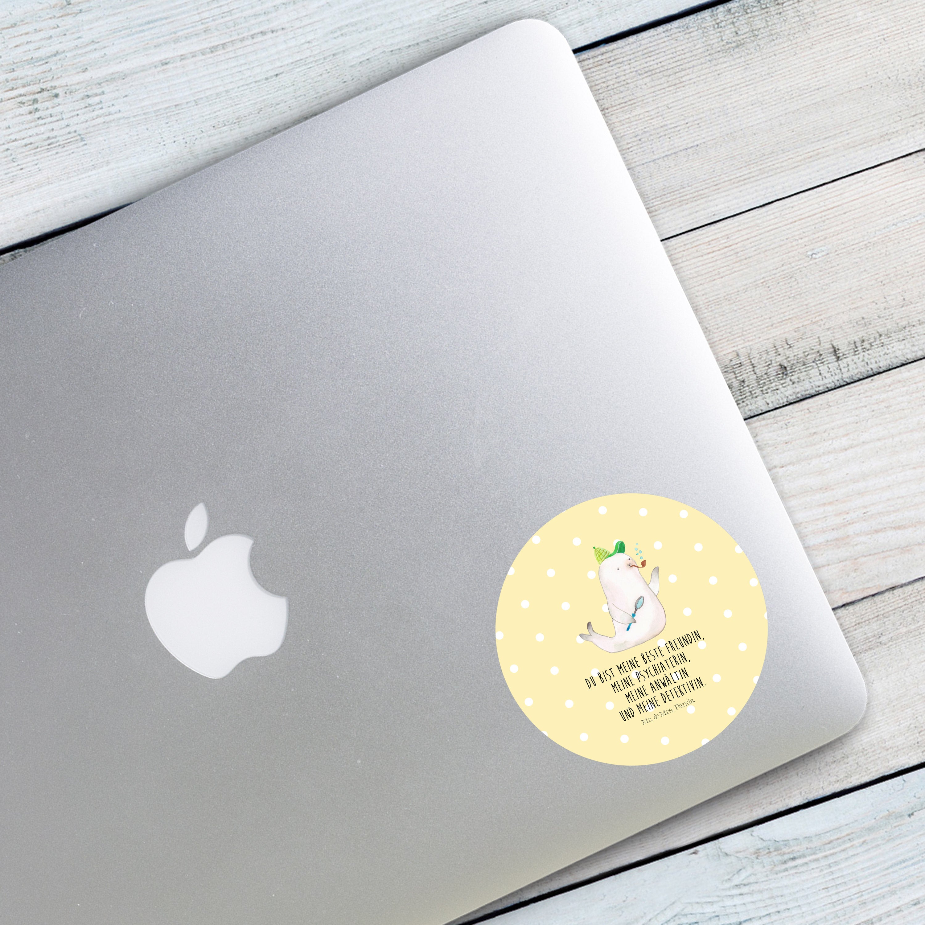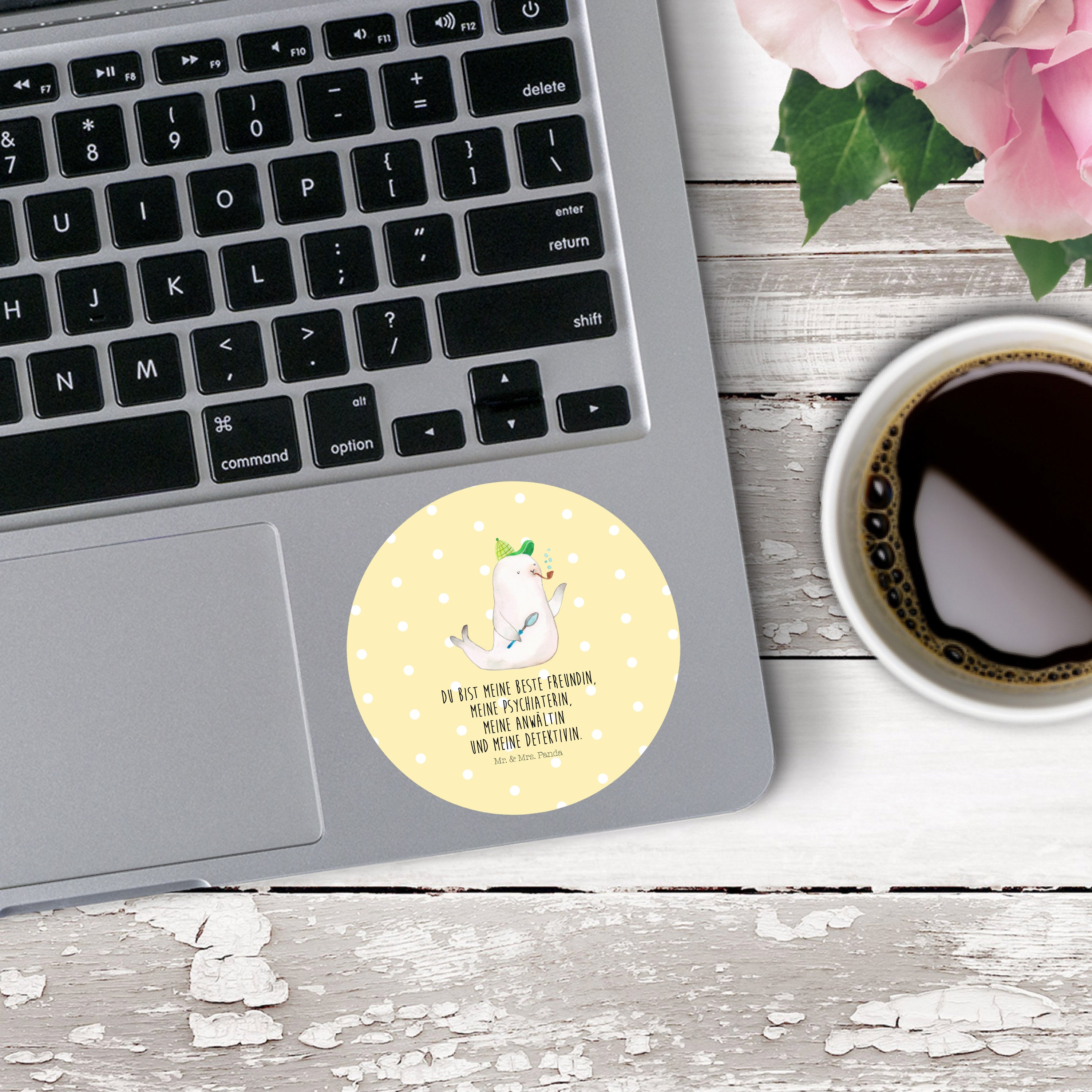 80mm Rund Aufkleber Robbe Sherlock - mit Spruch - Gelb Pastell