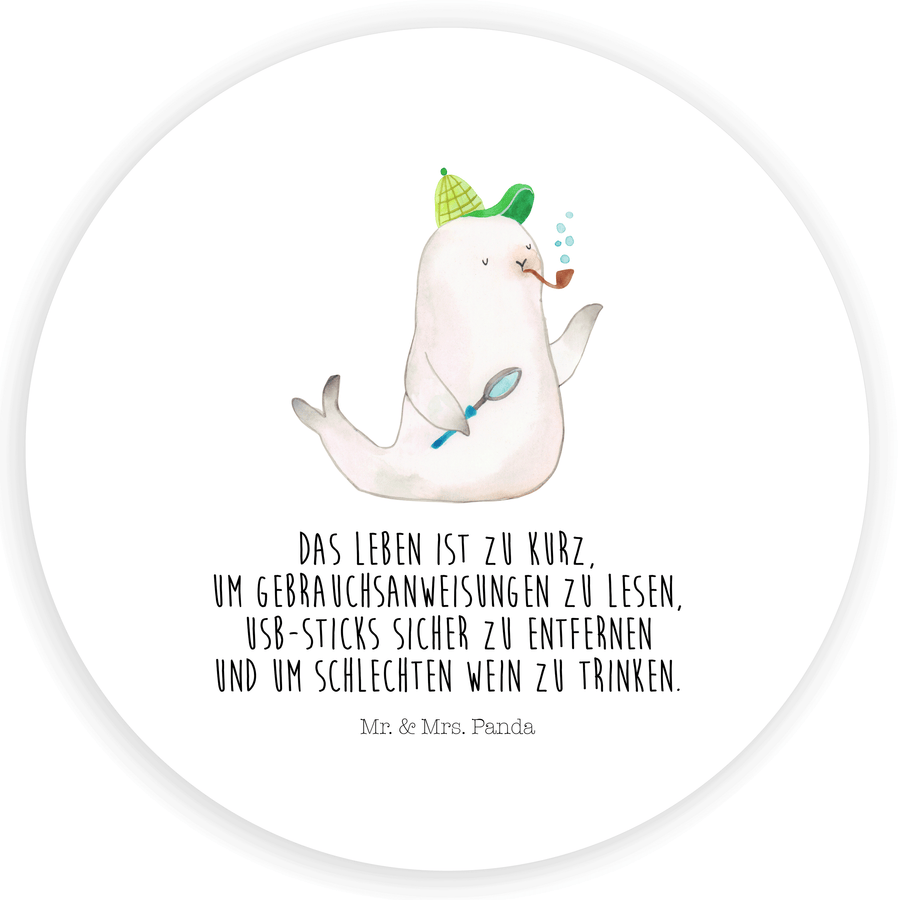 80mm Rund Aufkleber Robbe Sherlock - mit Spruch - Weiß