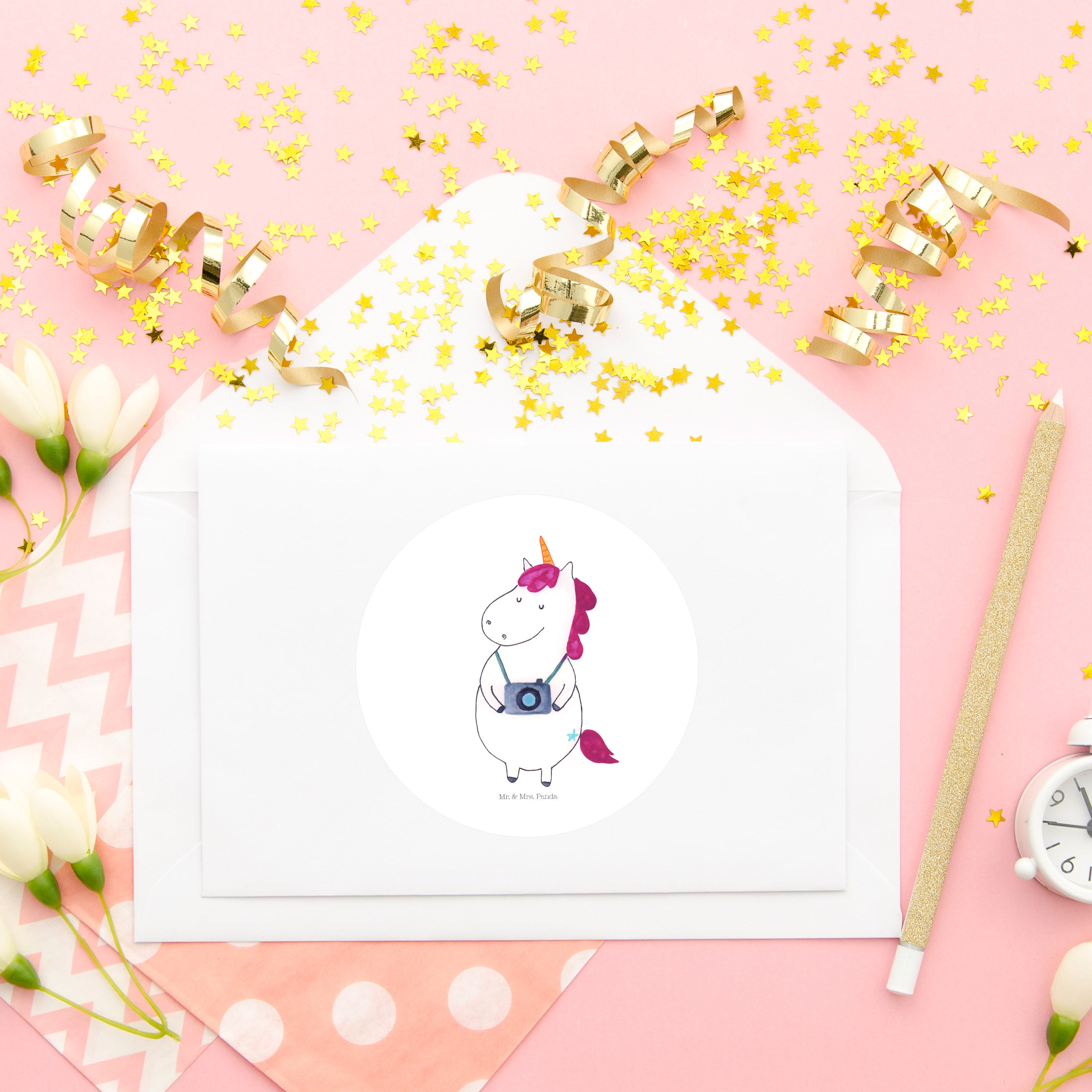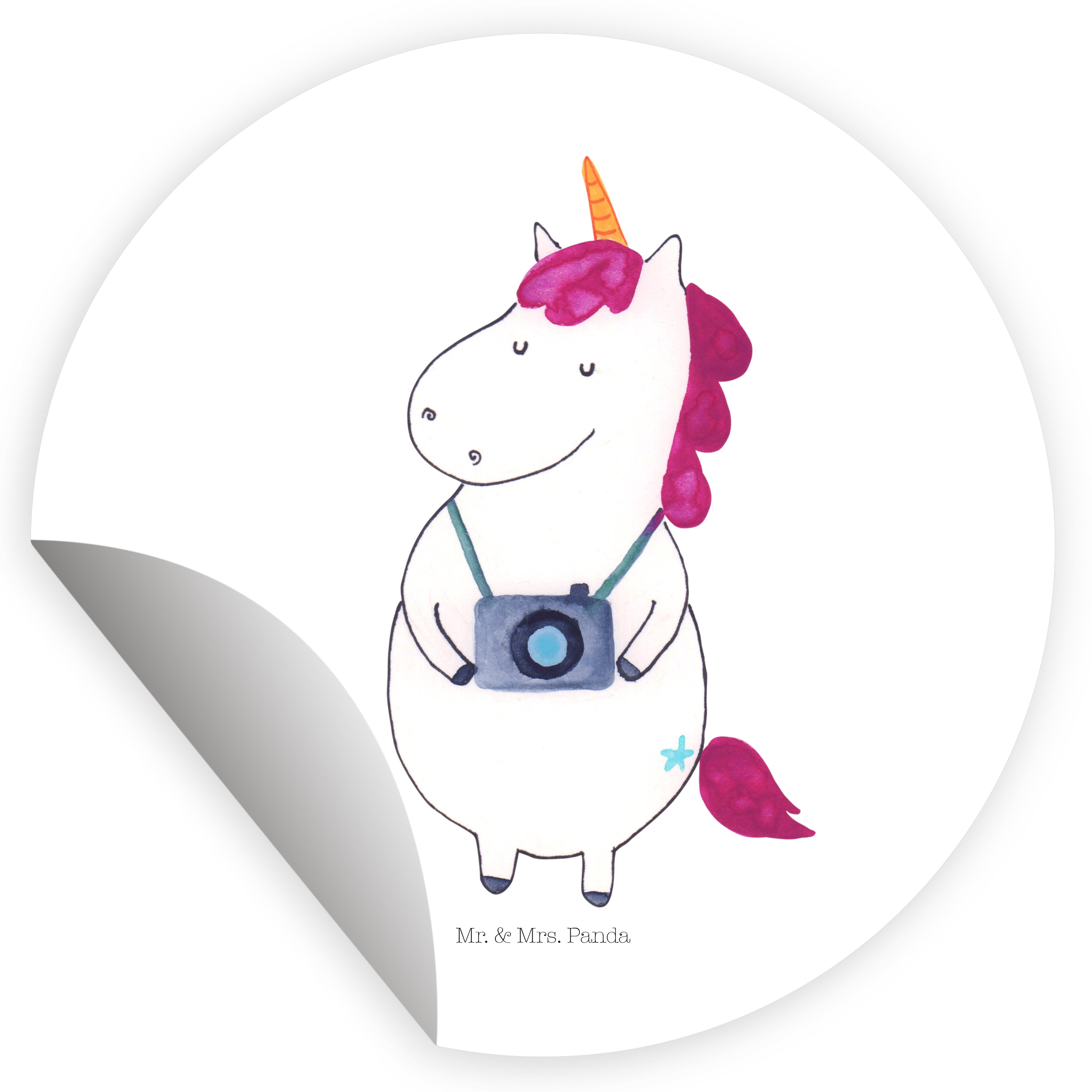 80mm Rund Aufkleber Einhorn Fotograf - mit Spruch
