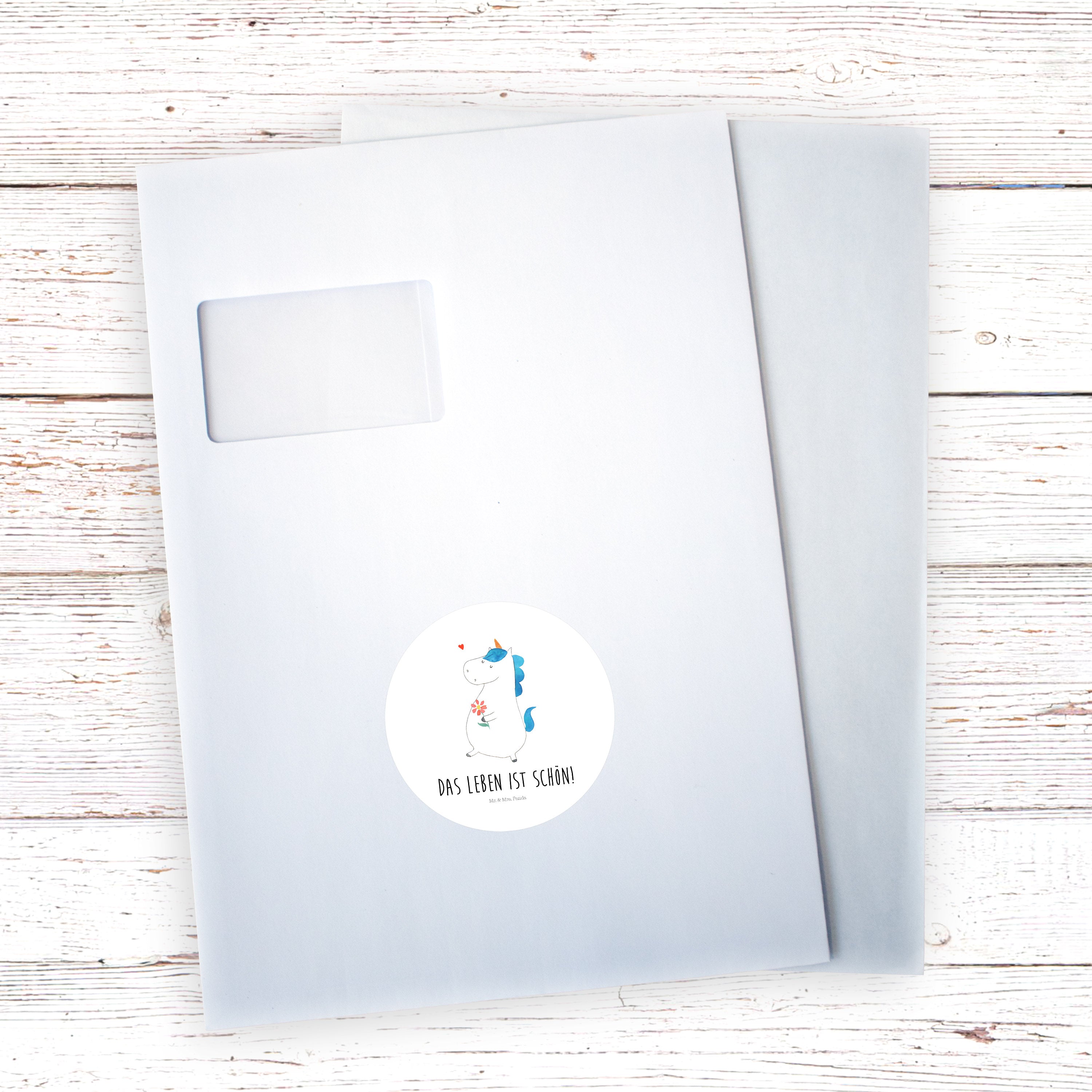 80mm Rund Aufkleber Einhorn Spaziergang - mit Spruch