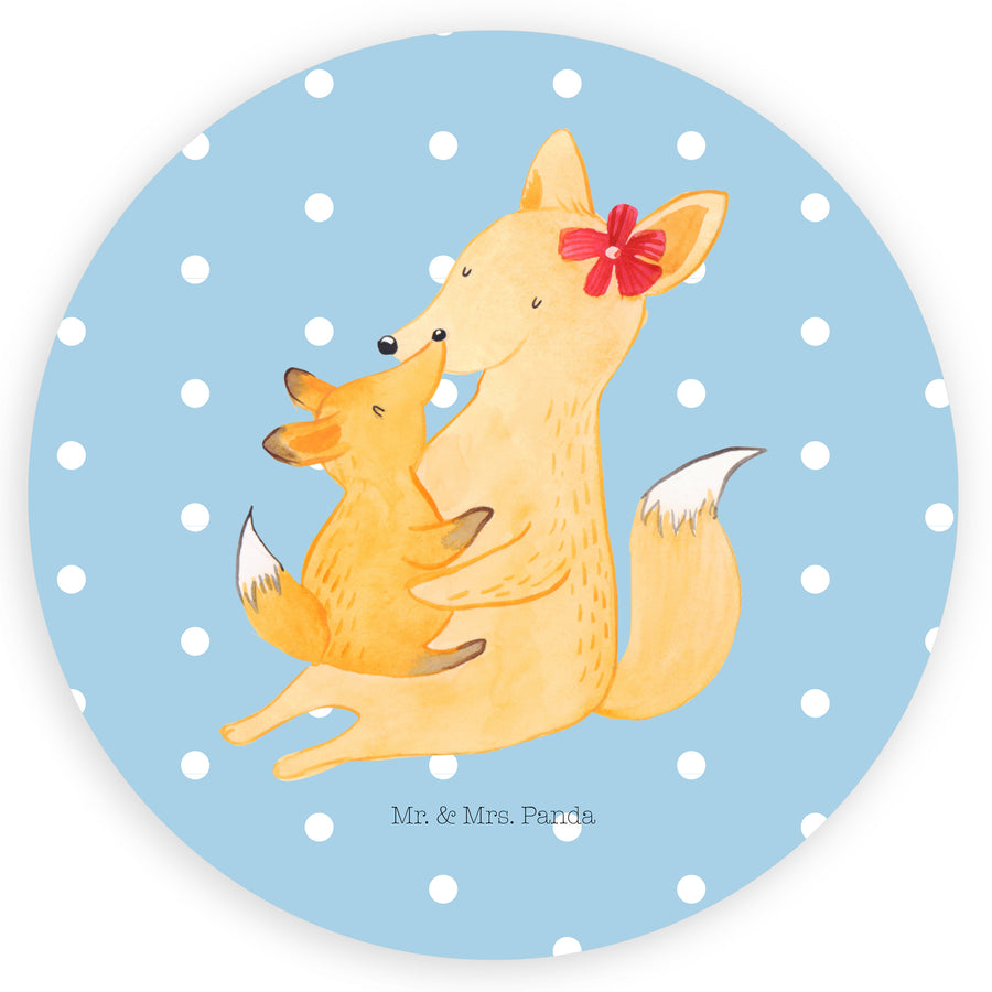 Rund Aufkleber Fuchs Mama & Kind - Ohne Text Rund INT - Blau