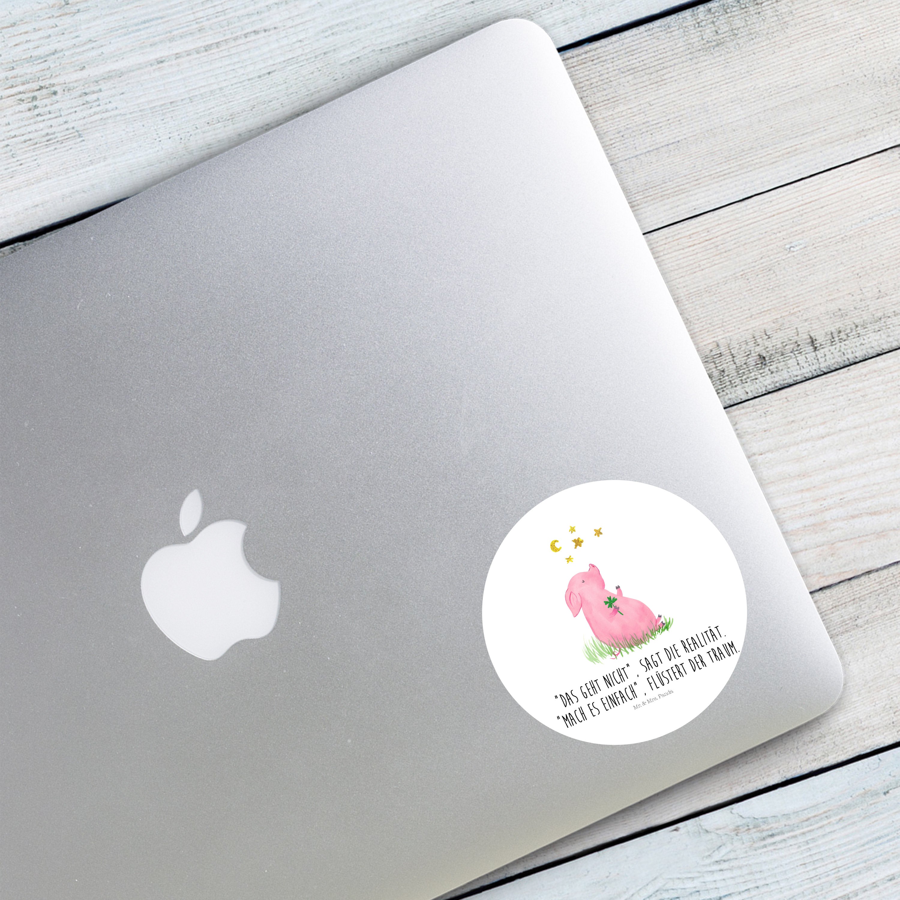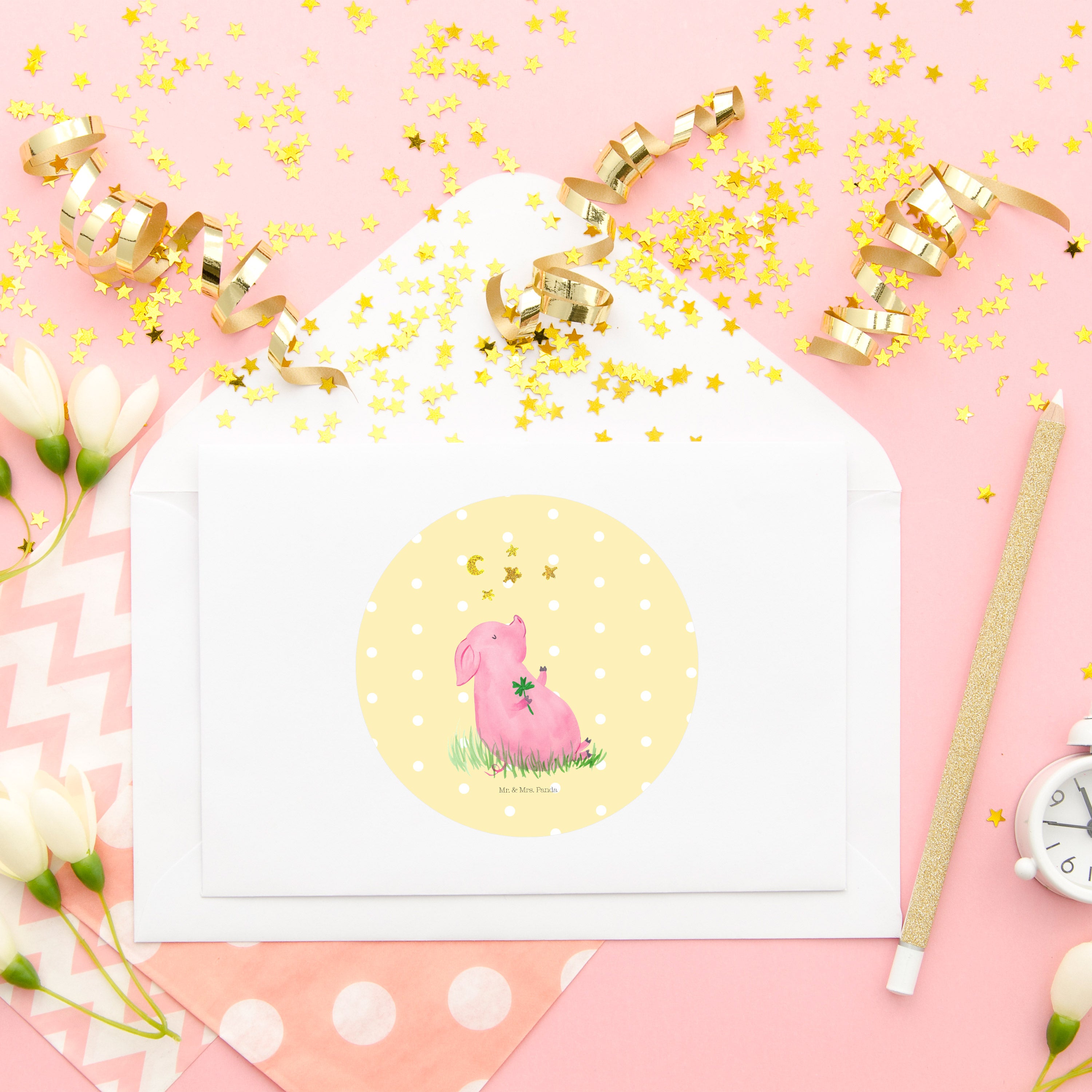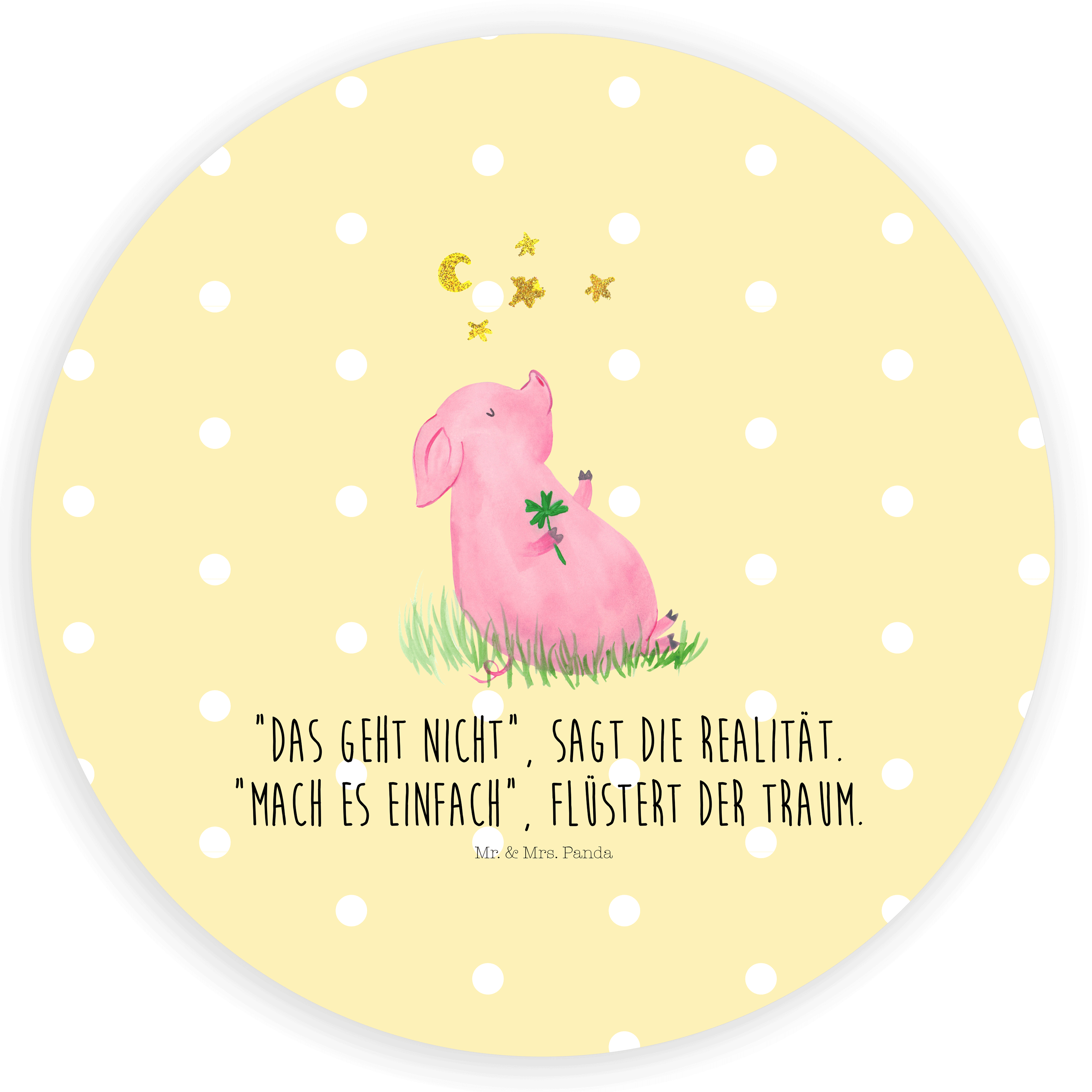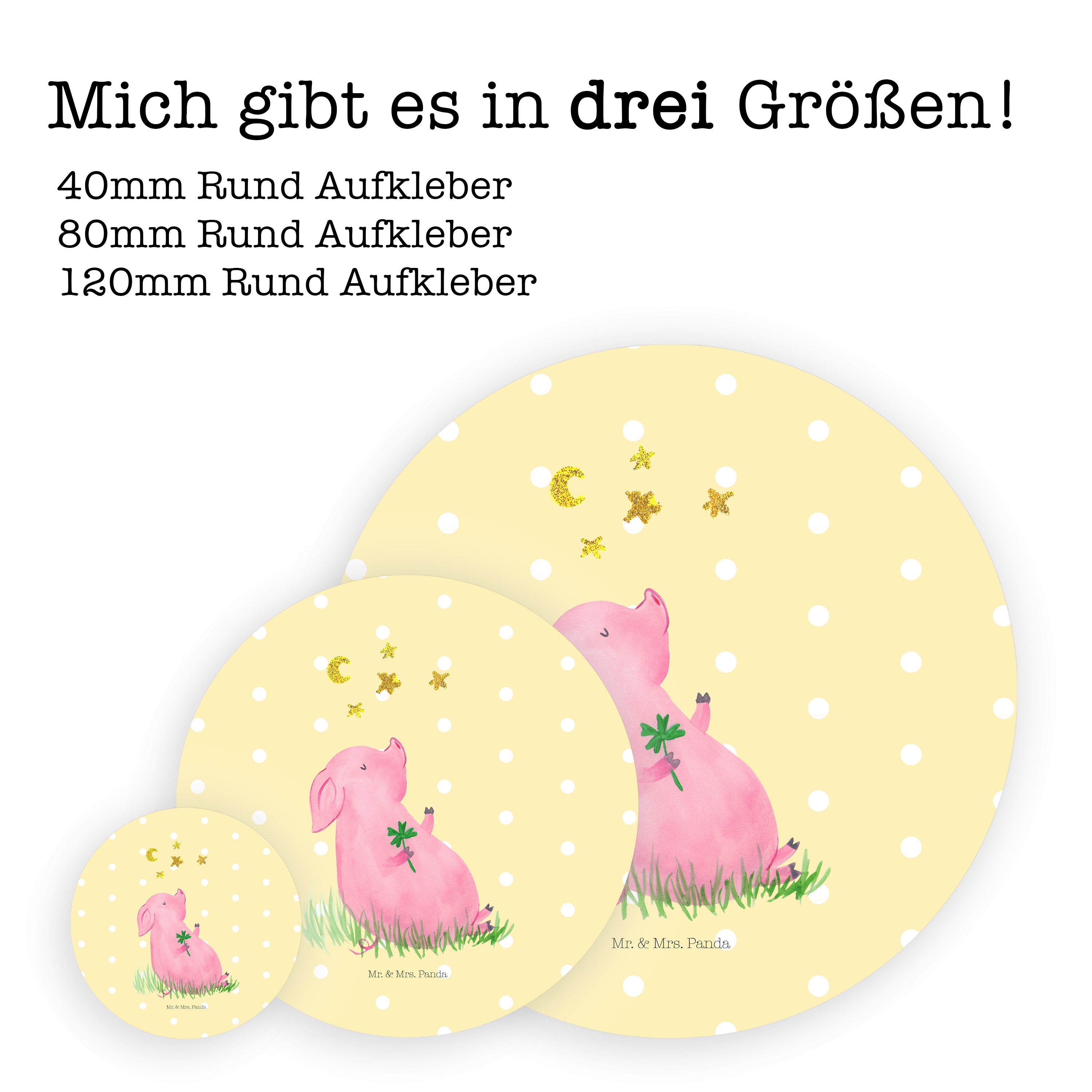 80mm Rund Aufkleber Glücksschwein - mit Spruch - Gelb Pastell