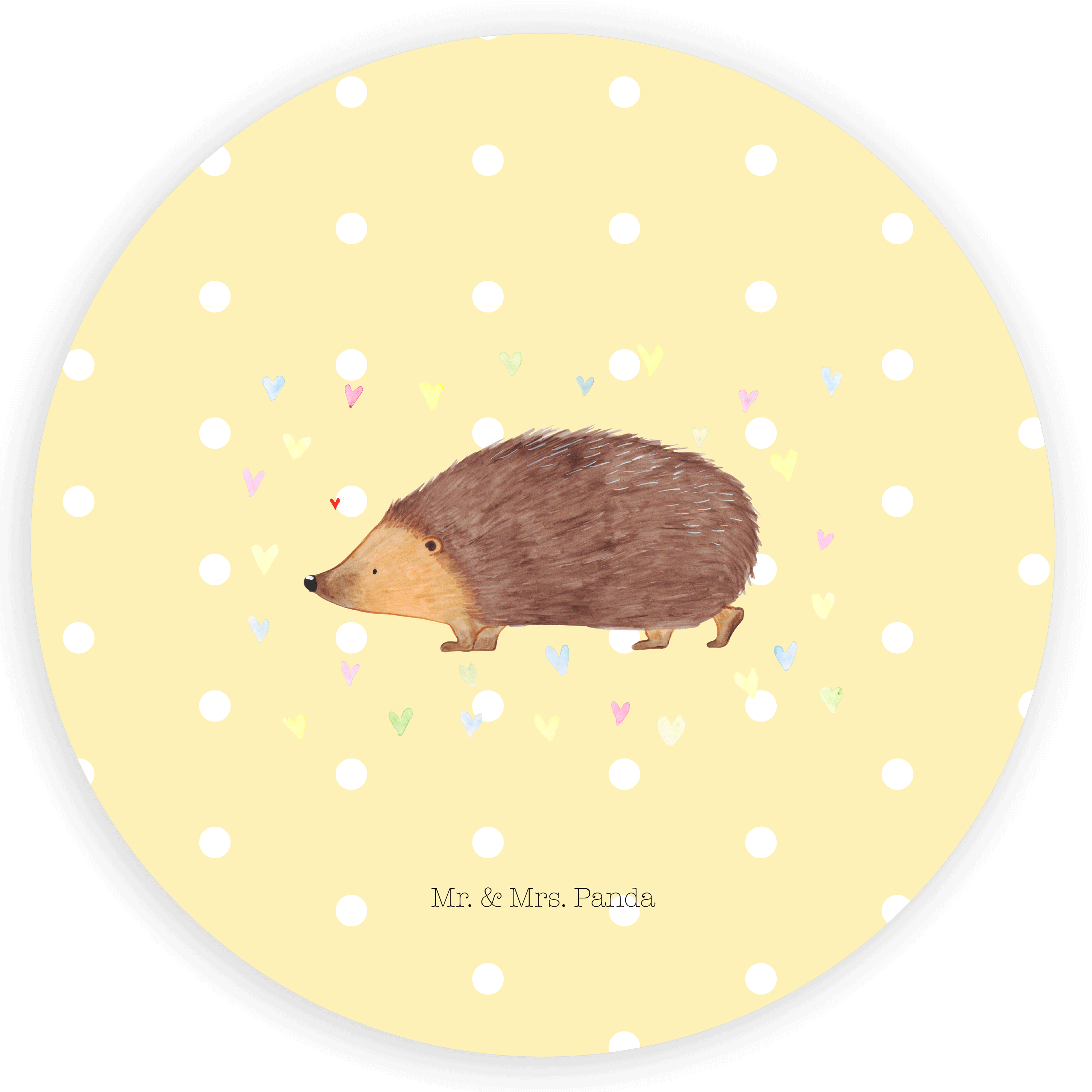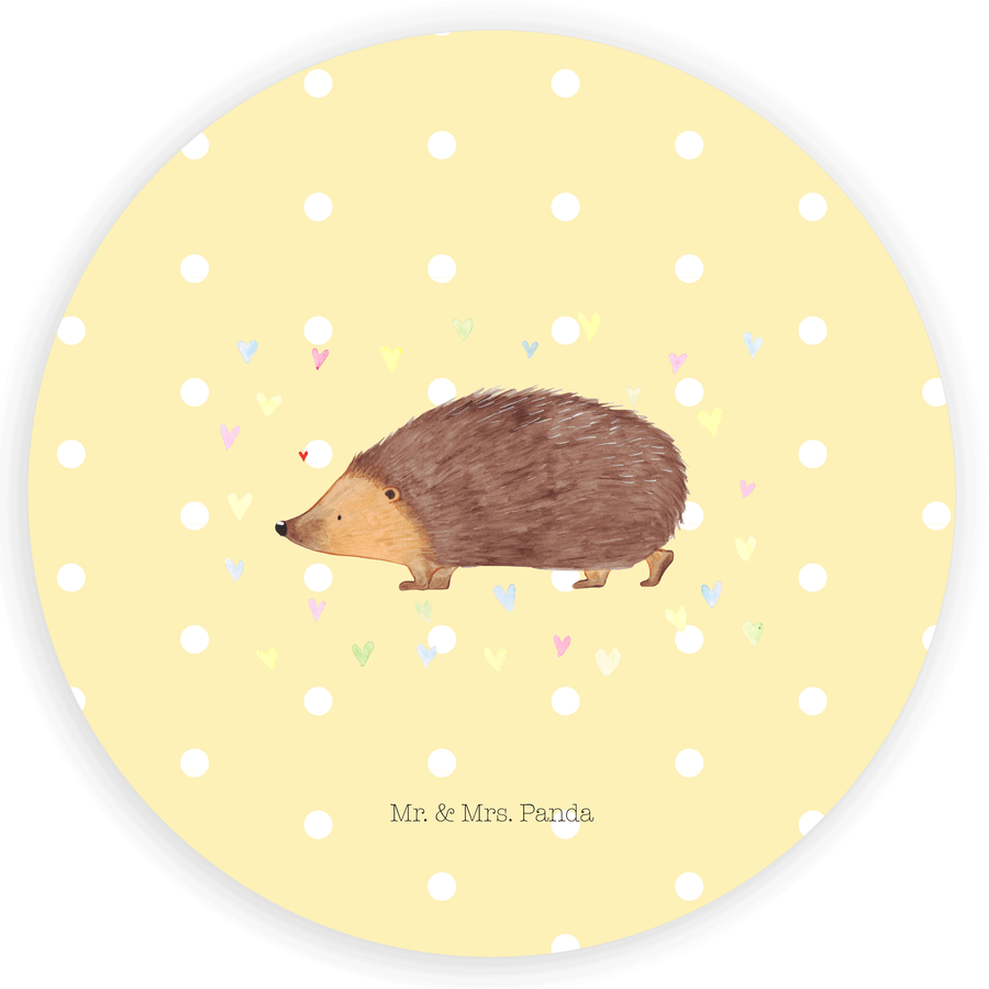 40mm Rund Aufkleber Igel Herzen - Gelb Pastell