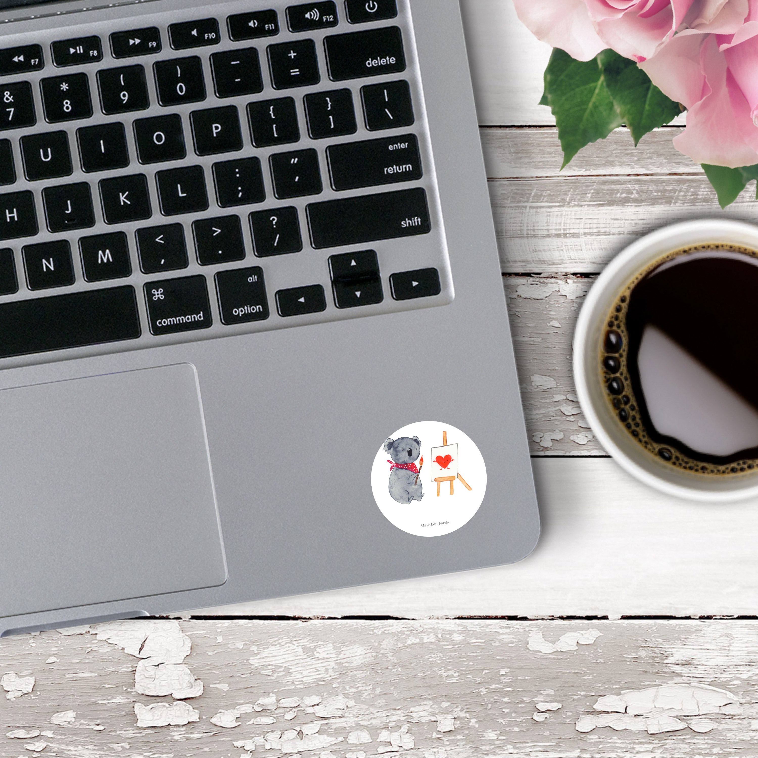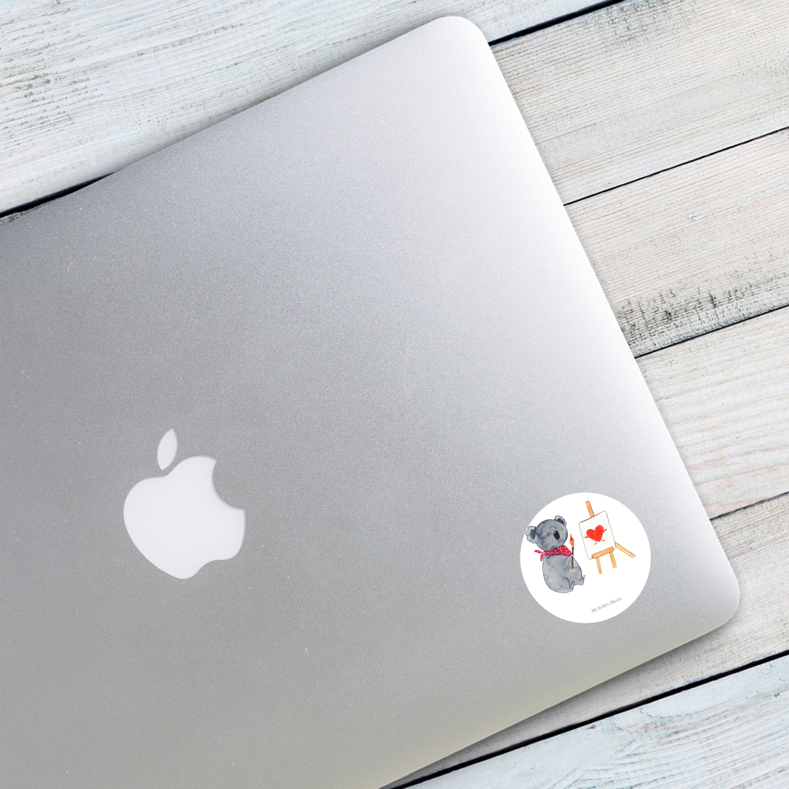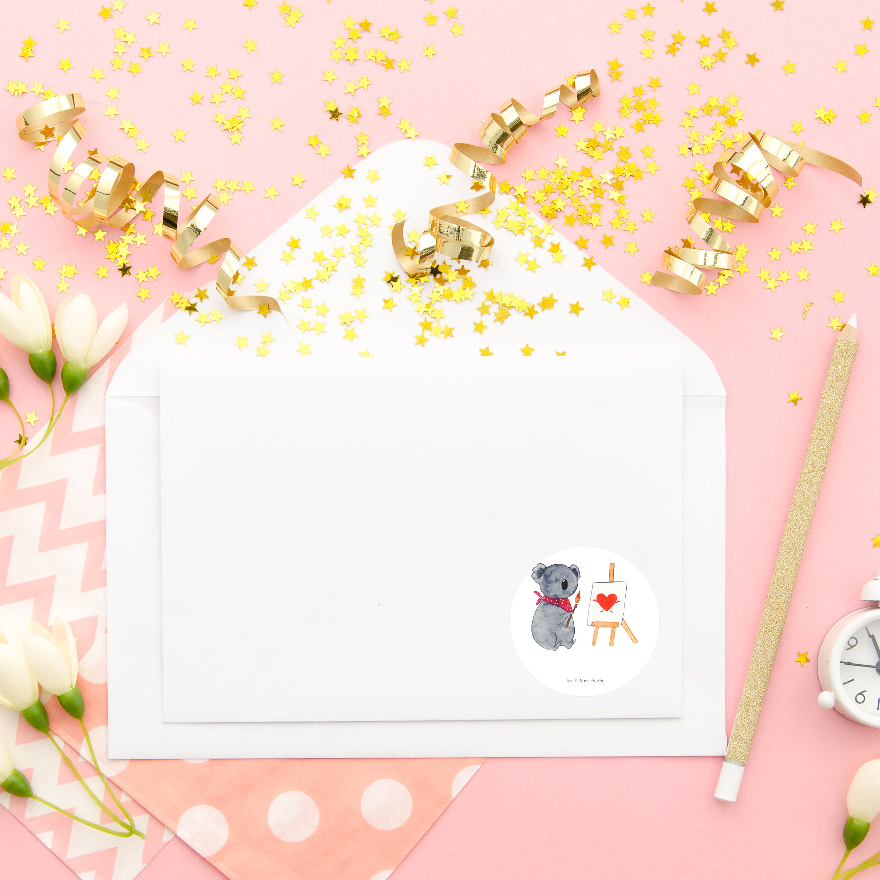 40mm Rund Aufkleber Koala Künstler - Weiß