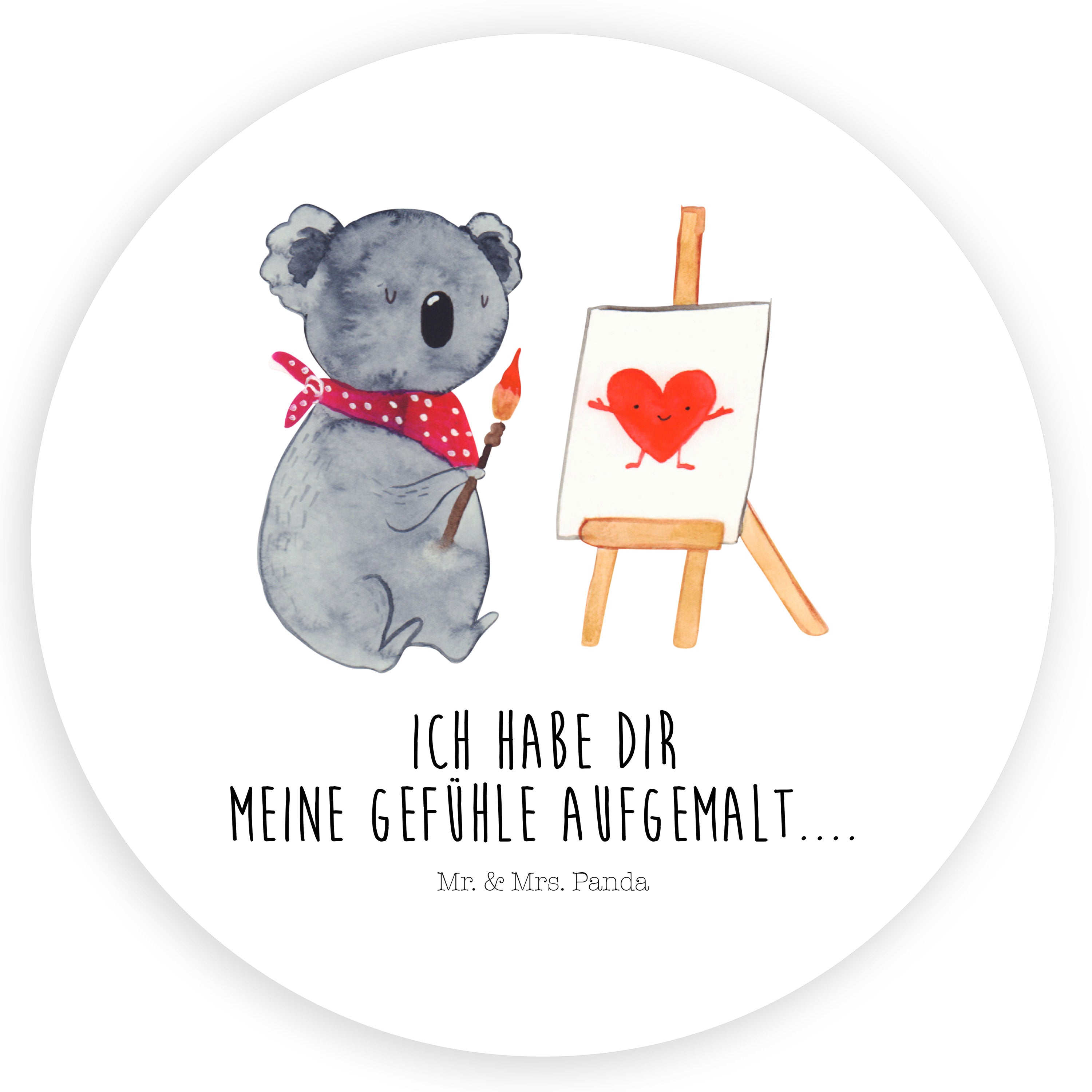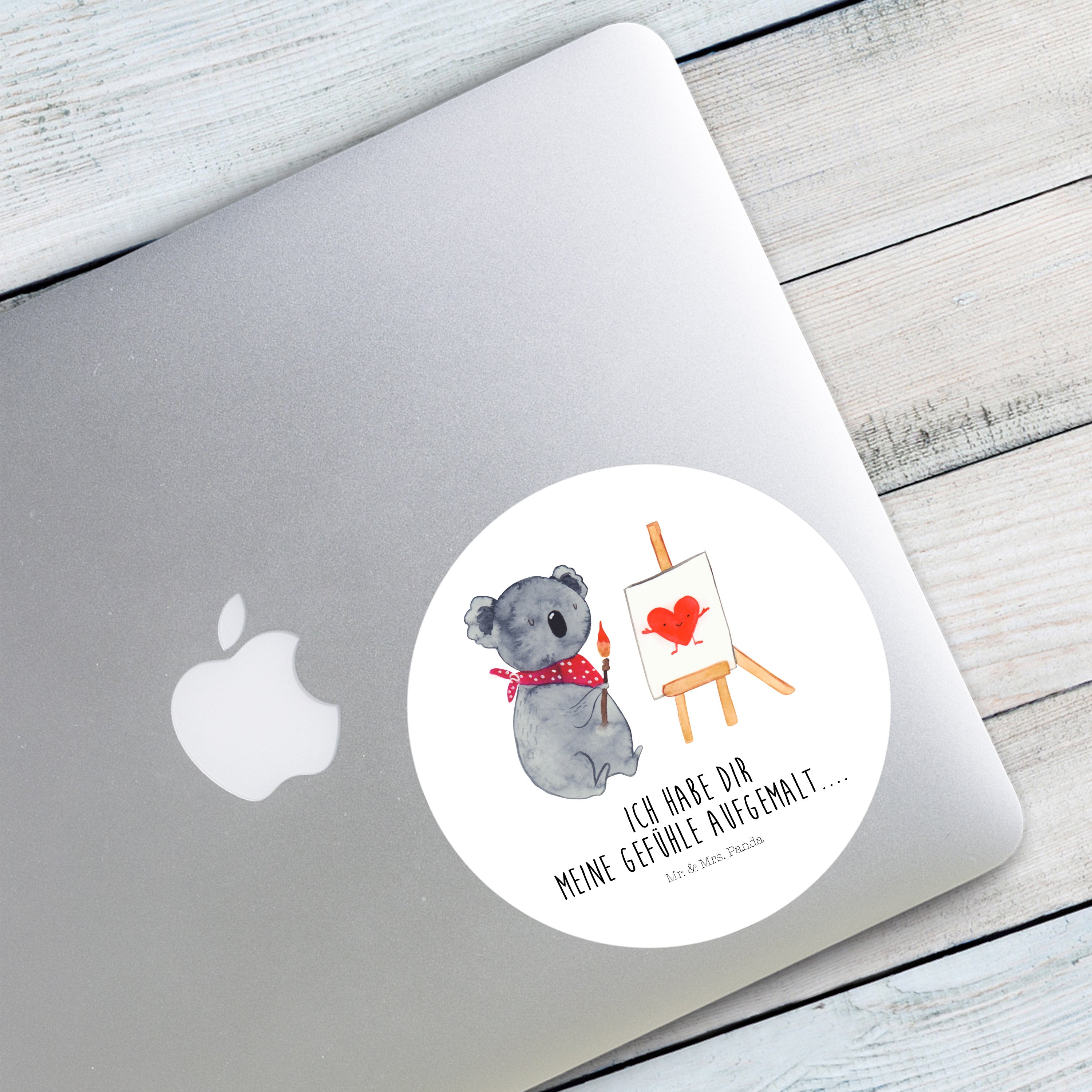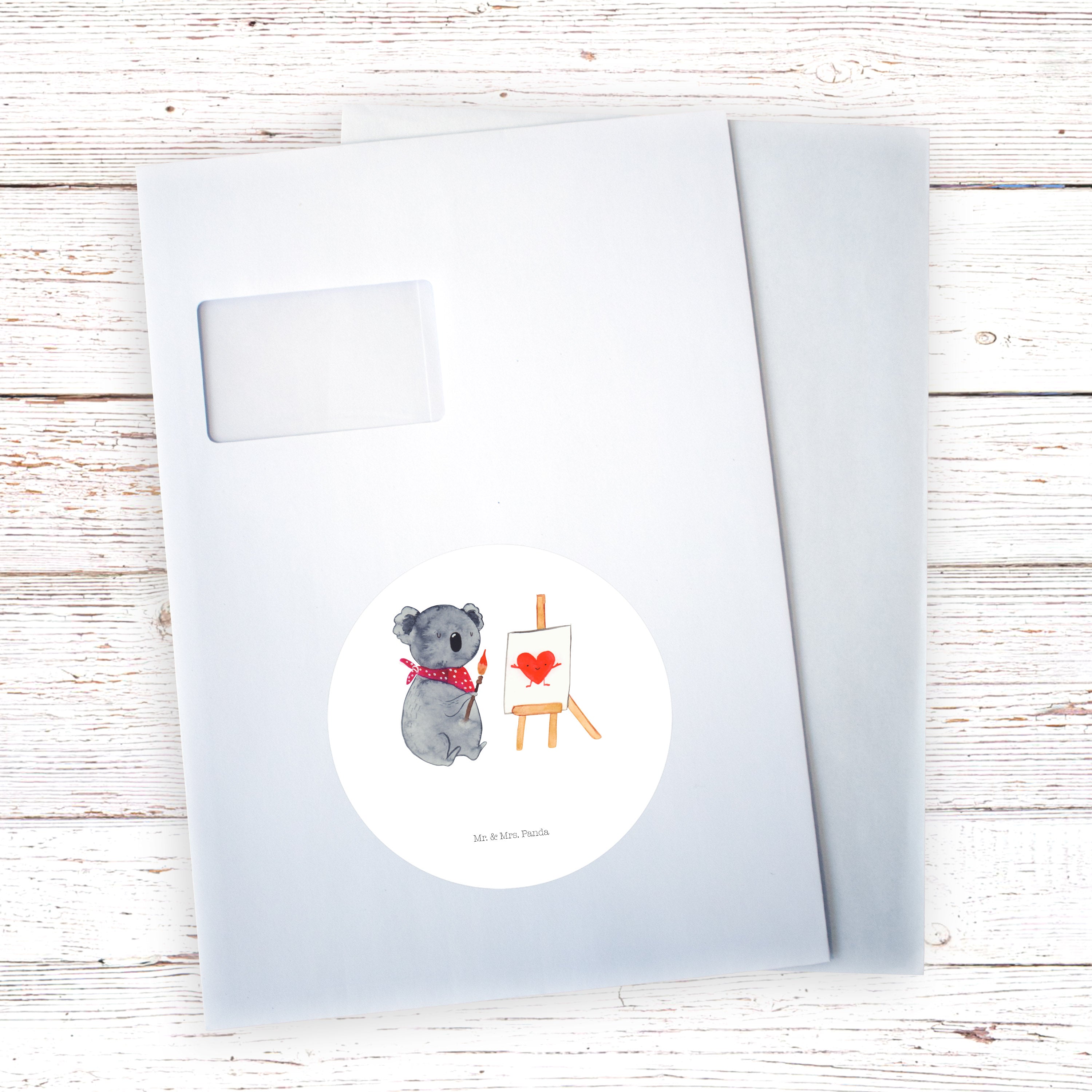 40mm Rund Aufkleber Koala Künstler - Weiß