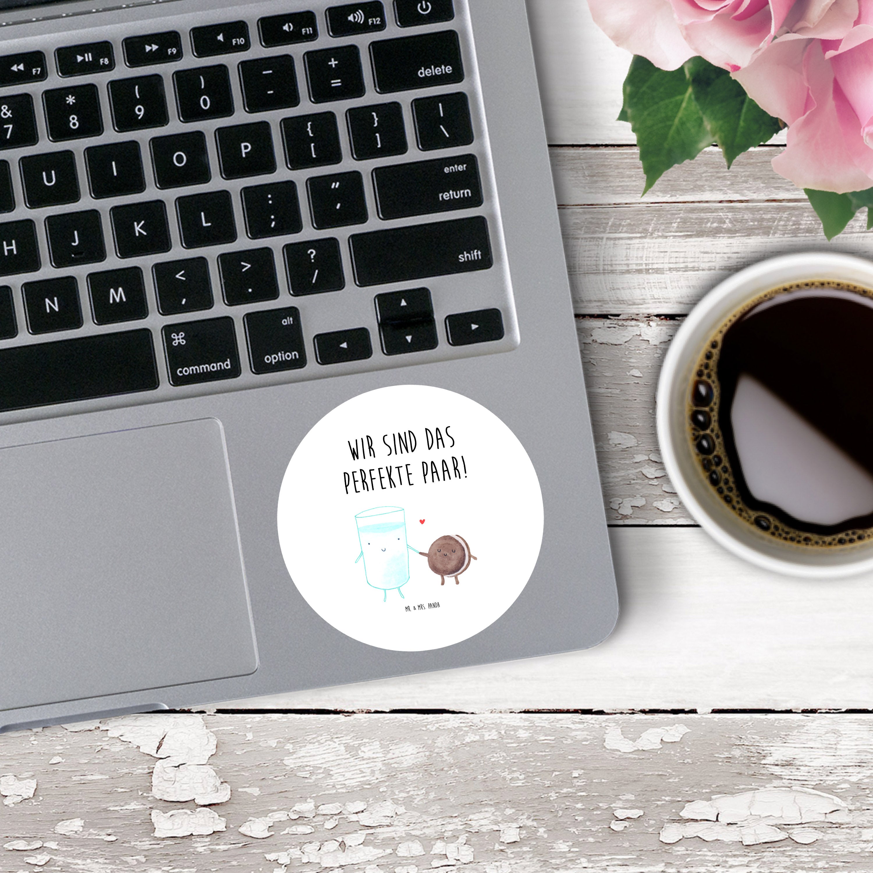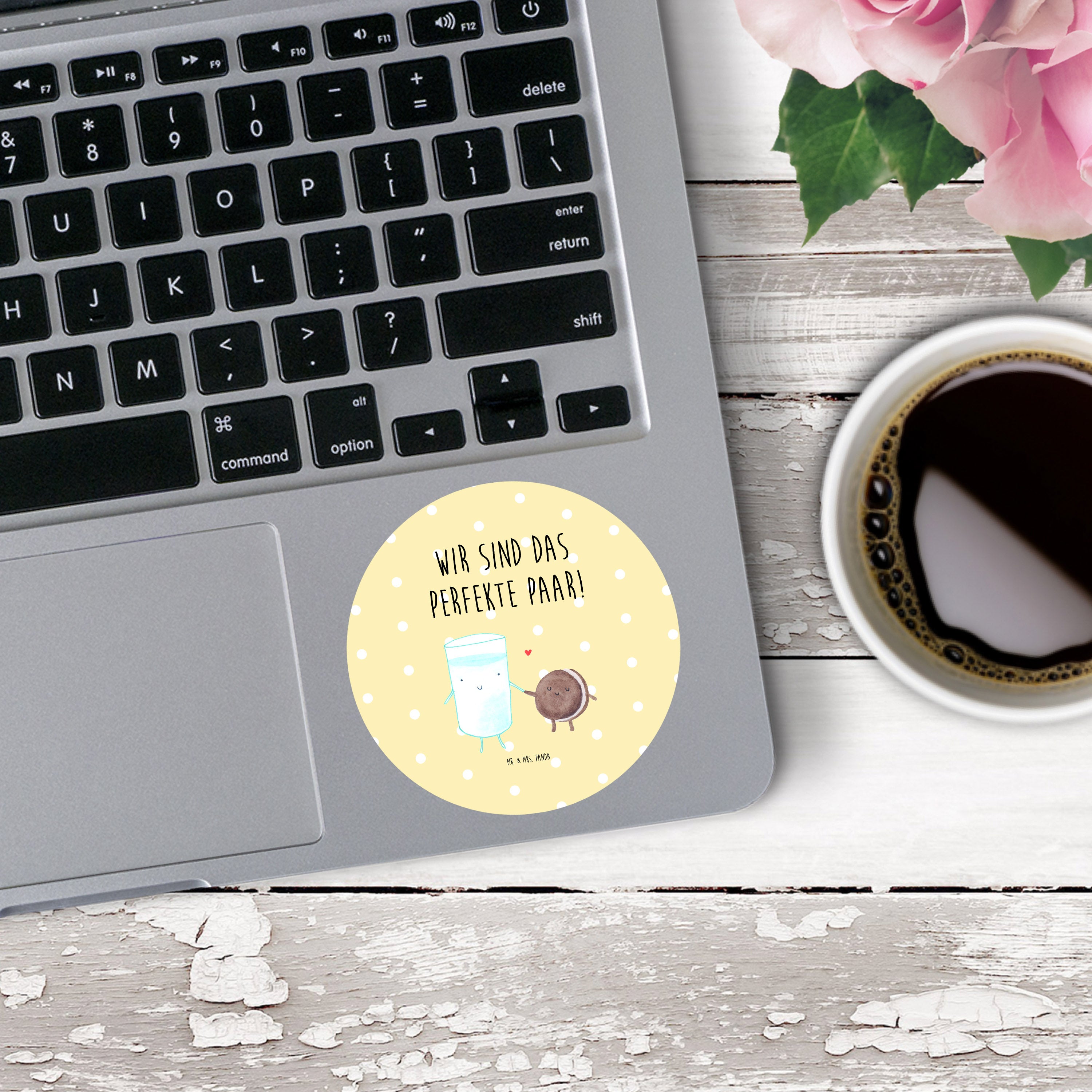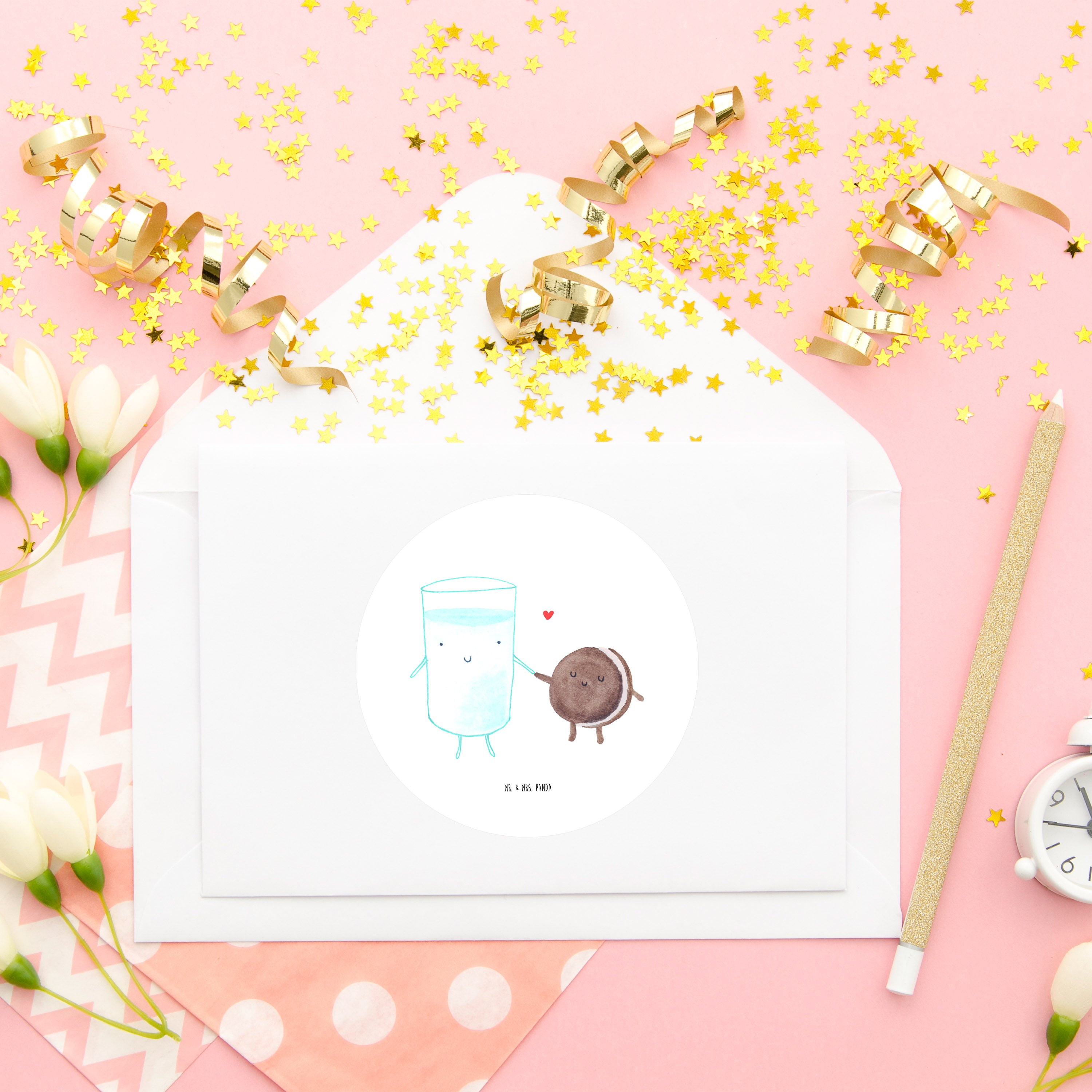 Ein süßer Genuss für alle Naschkatzen. Das niedliche Motiv "Milch & Keks" von Mr. & Mrs. Panda zeigt ein Glas Milch und einen Keks, die liebevoll Händchen halten und dich zum Schmunzeln bringen. Mit diesem einzigartigen Design zieht jeder Blick auf sich und zaubert dir ein Lächeln ins Gesicht.