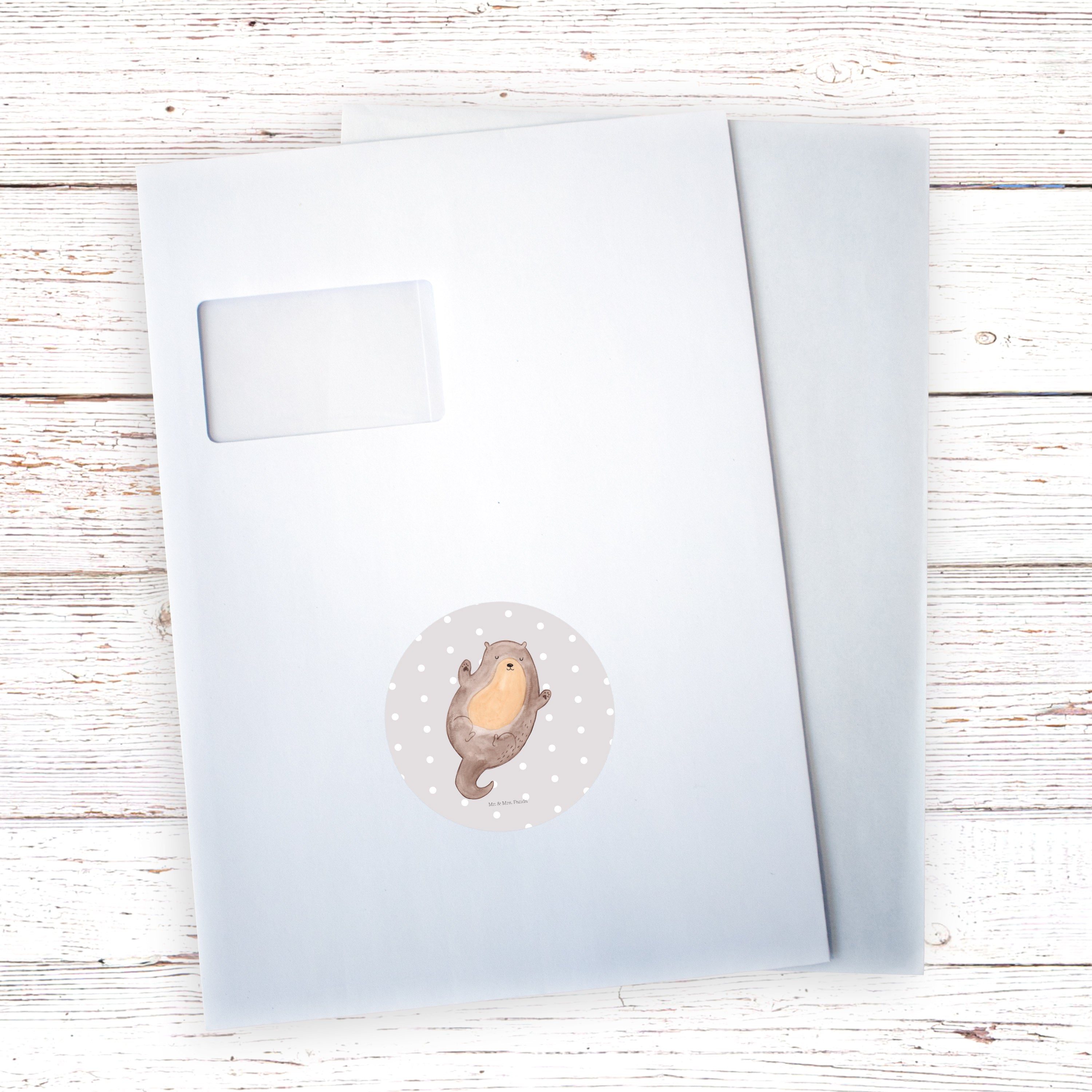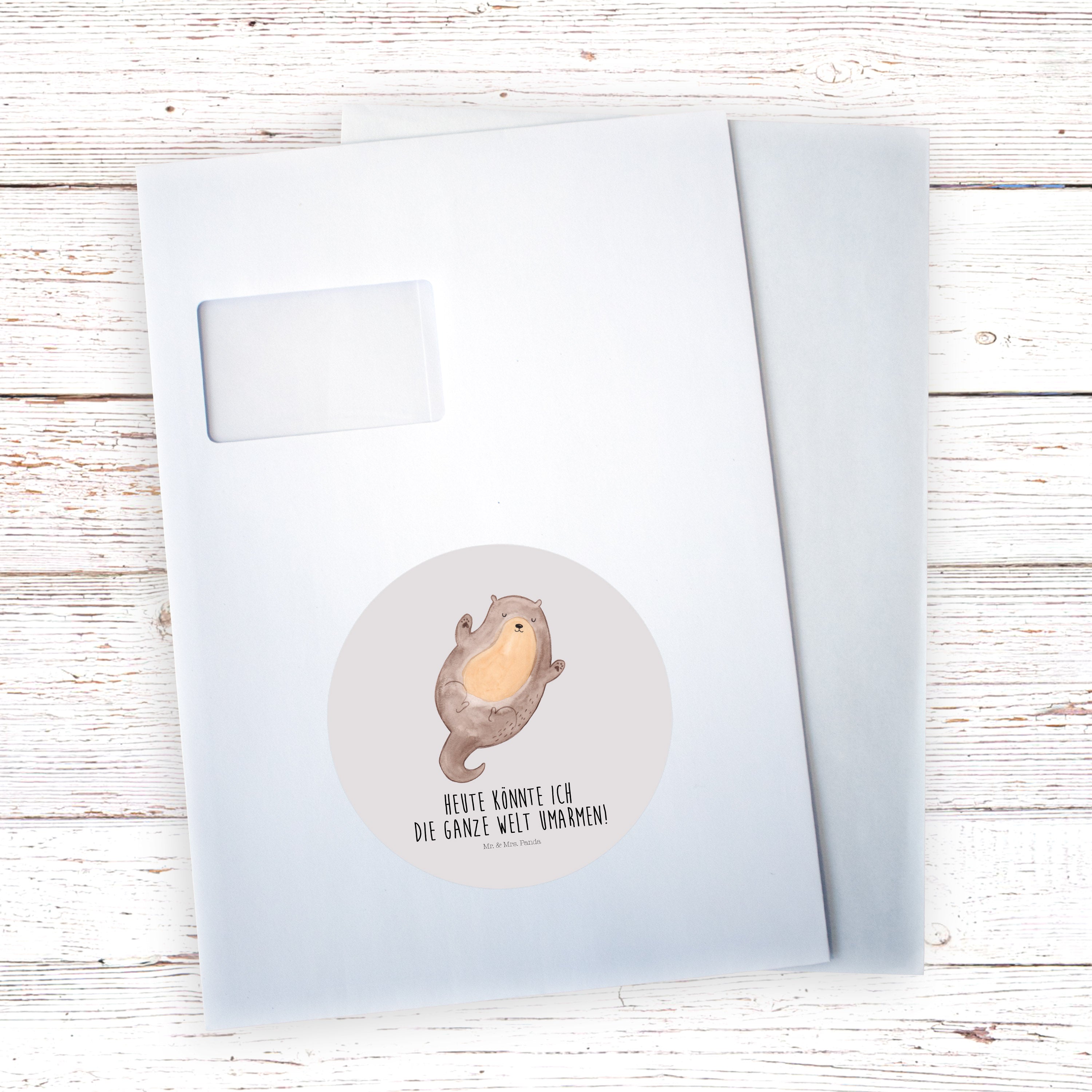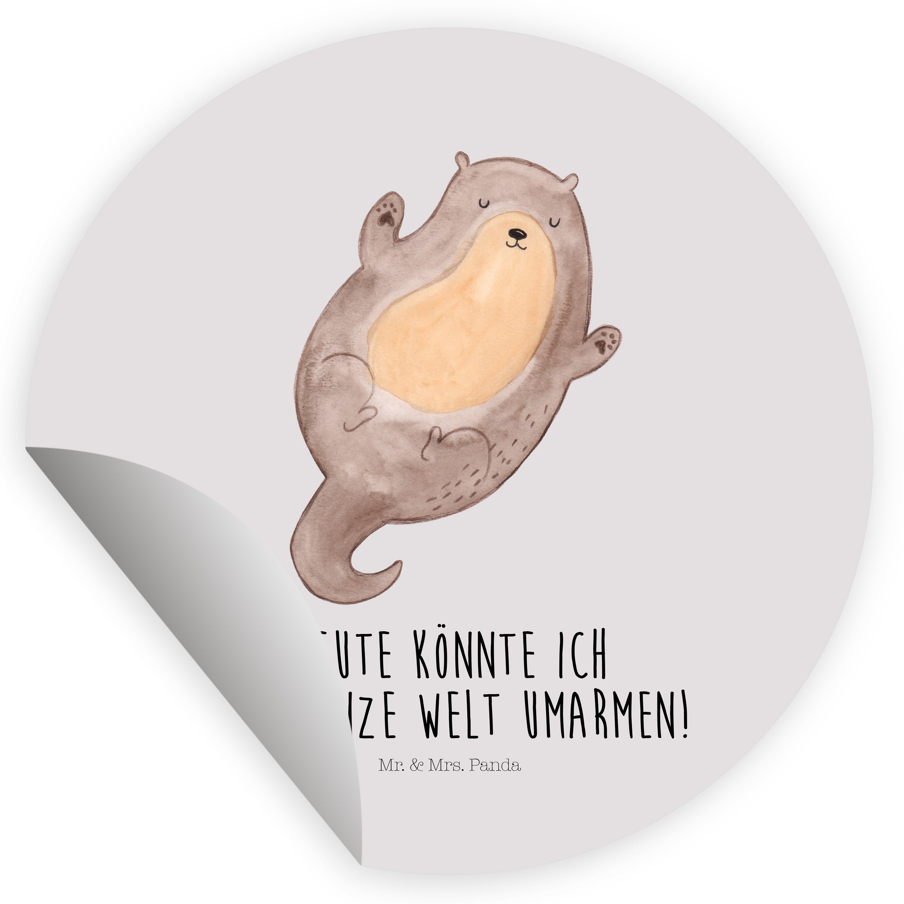 Rund Aufkleber Otter Umarmen - Grau Pastell - mit Spruch - 40mm Rund Aufkleber