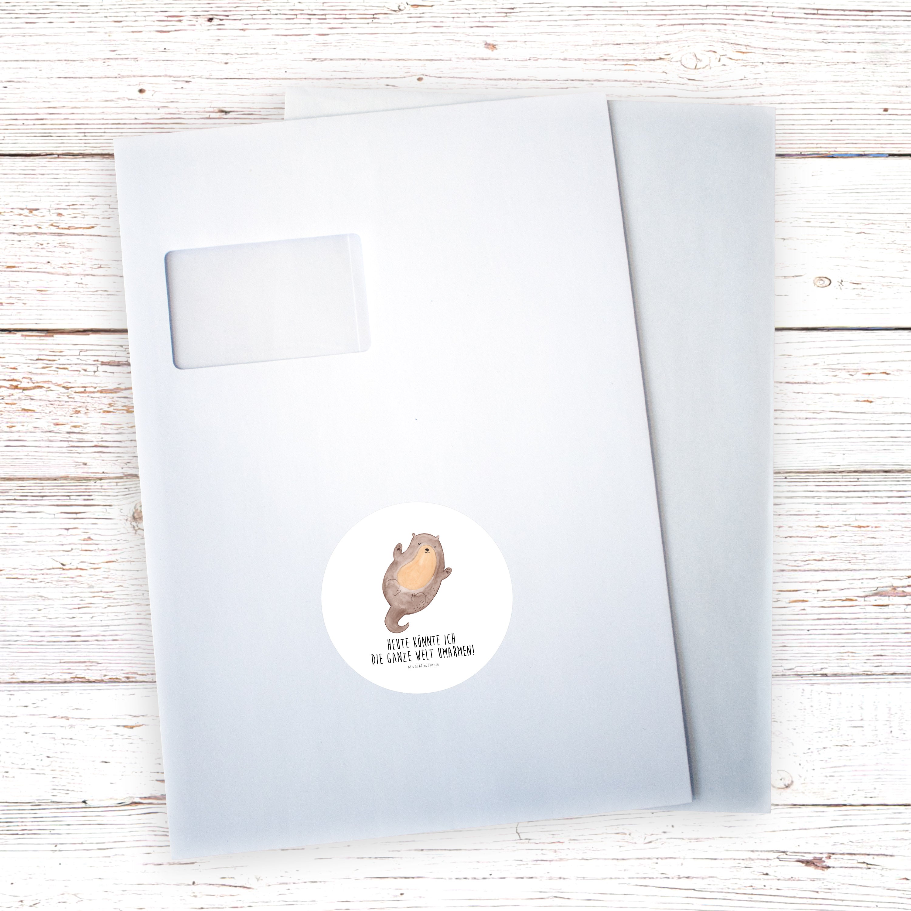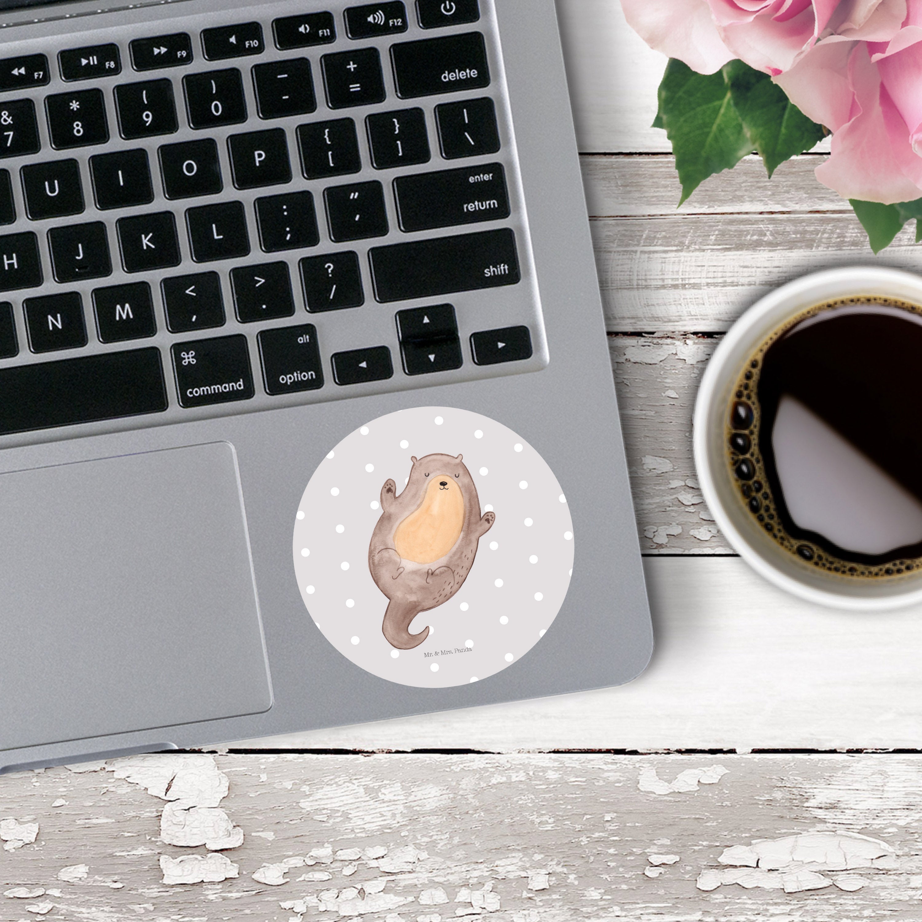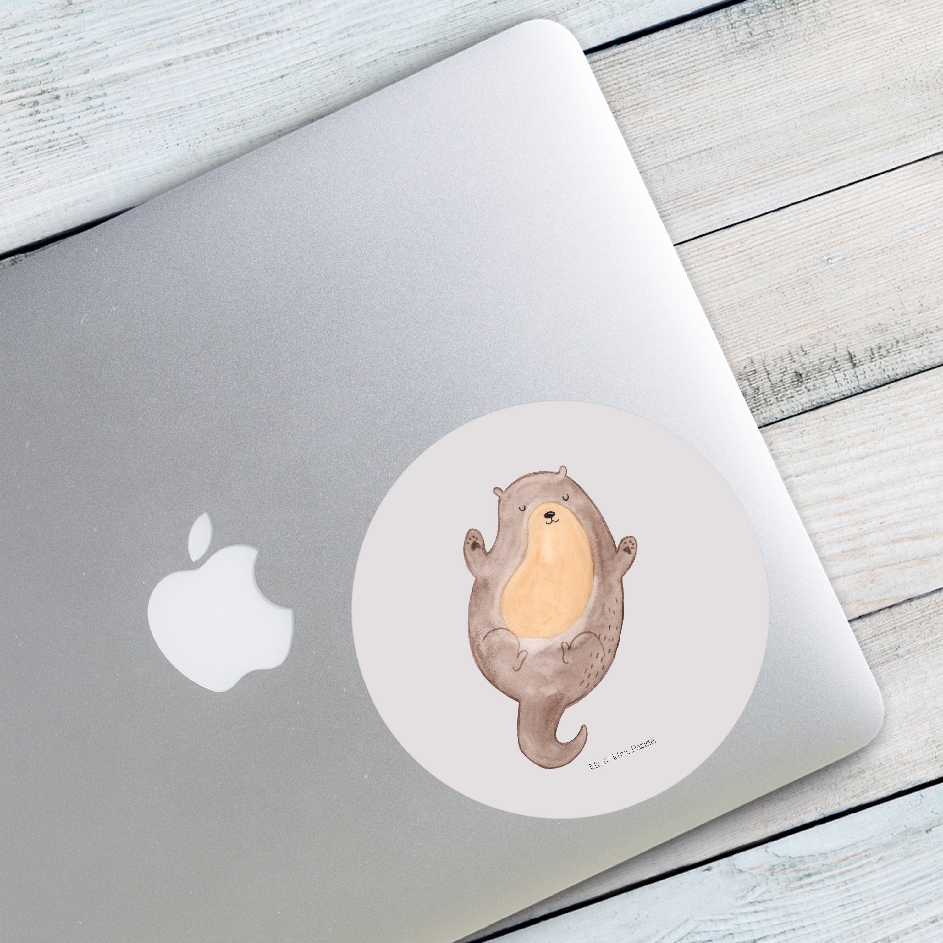 Rund Aufkleber Otter Umarmen - Grau Pastell - mit Spruch - 40mm Rund Aufkleber