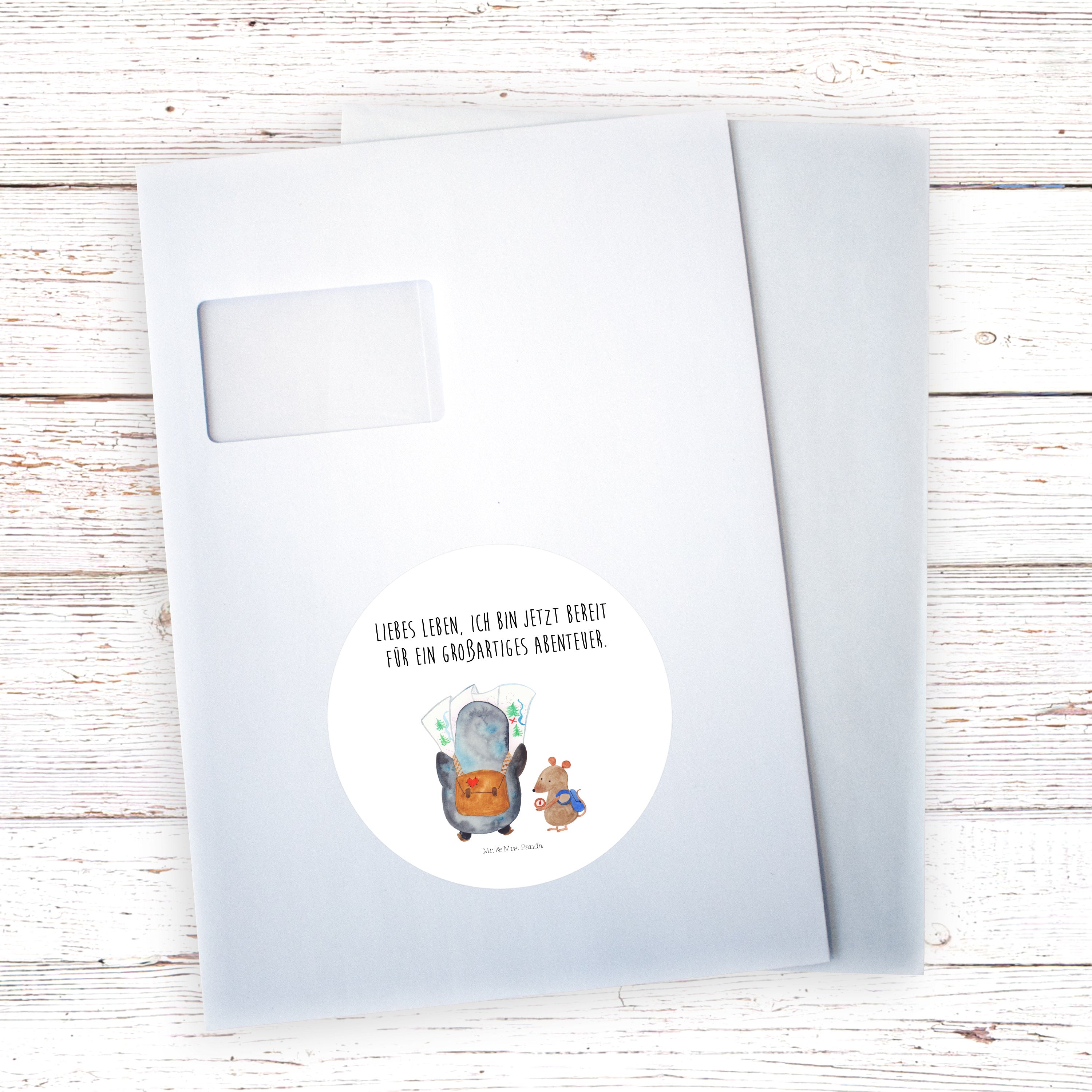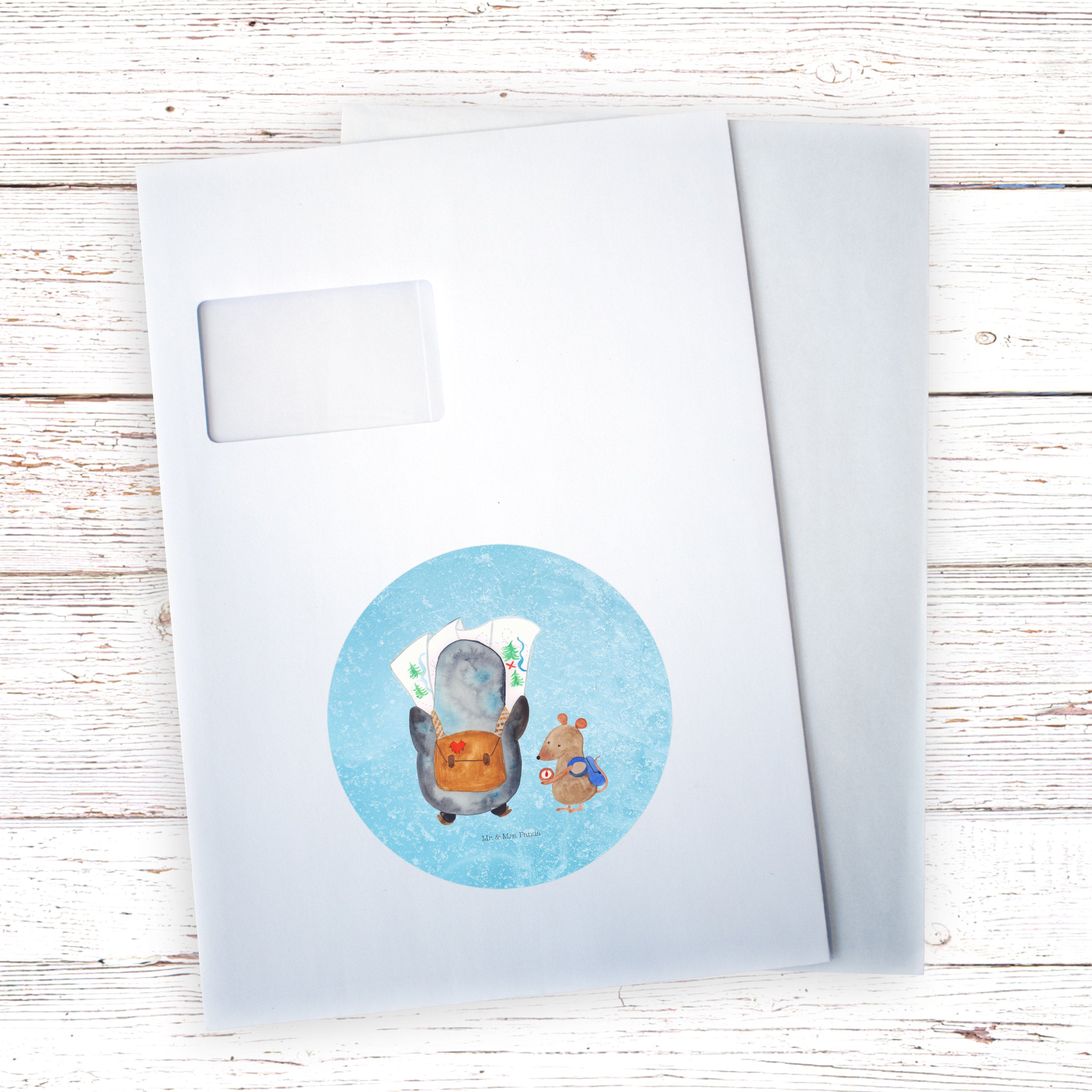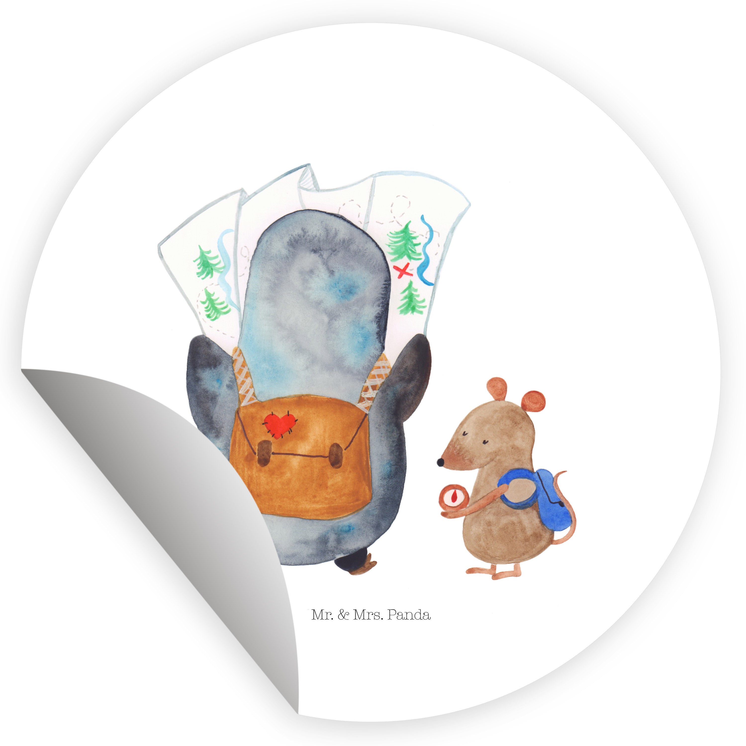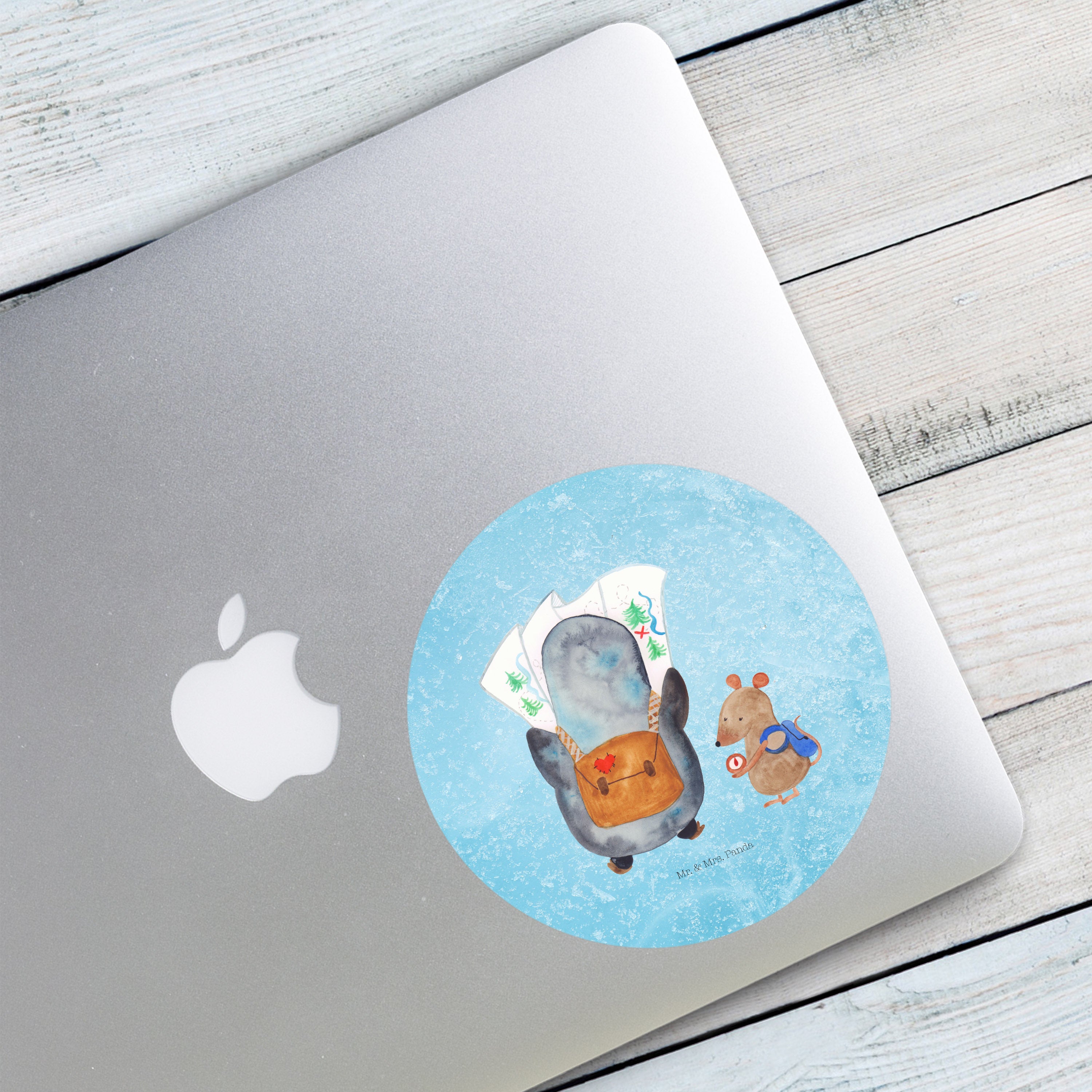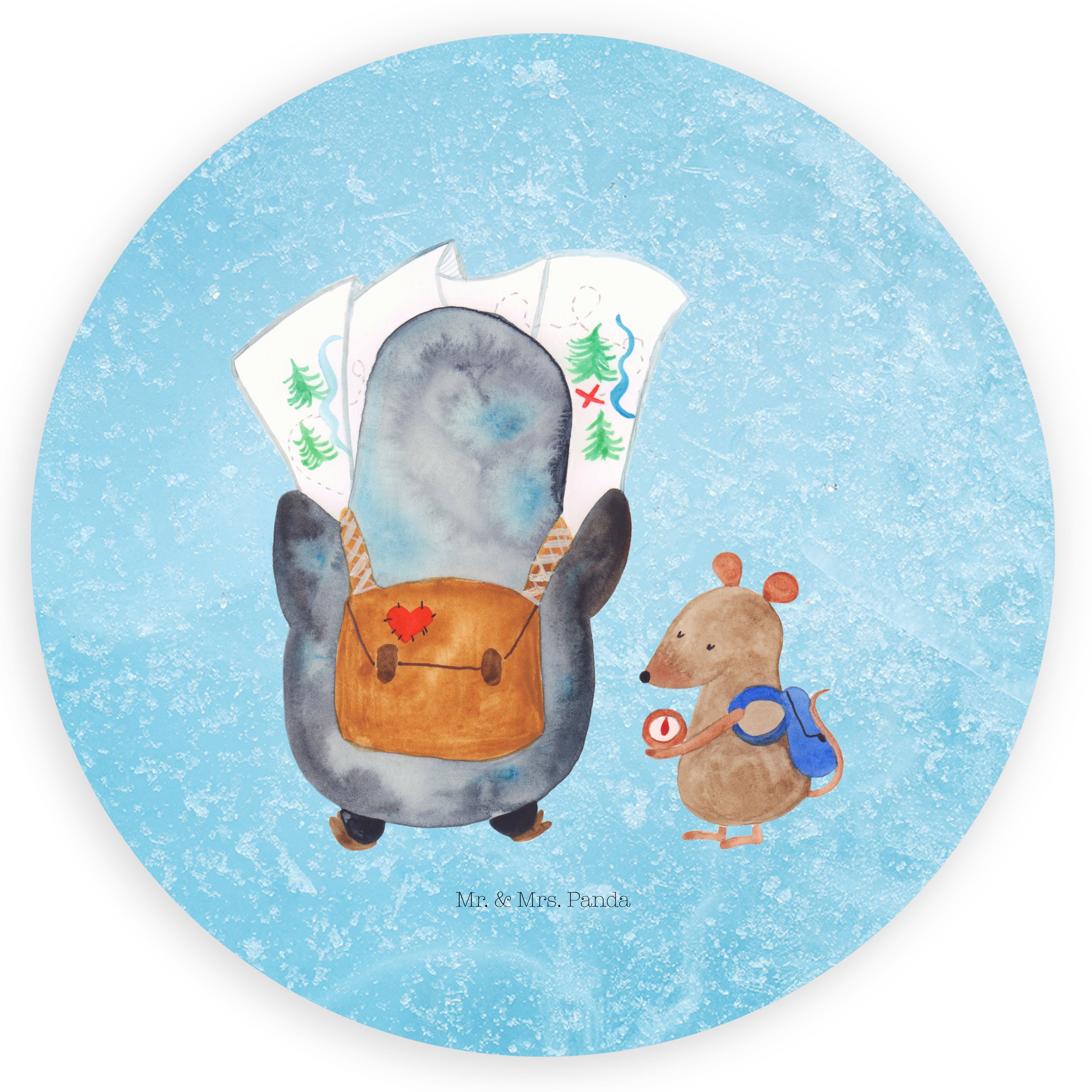 40mm Rund Aufkleber Pinguin & Maus Wanderer - mit Spruch - Eisblau