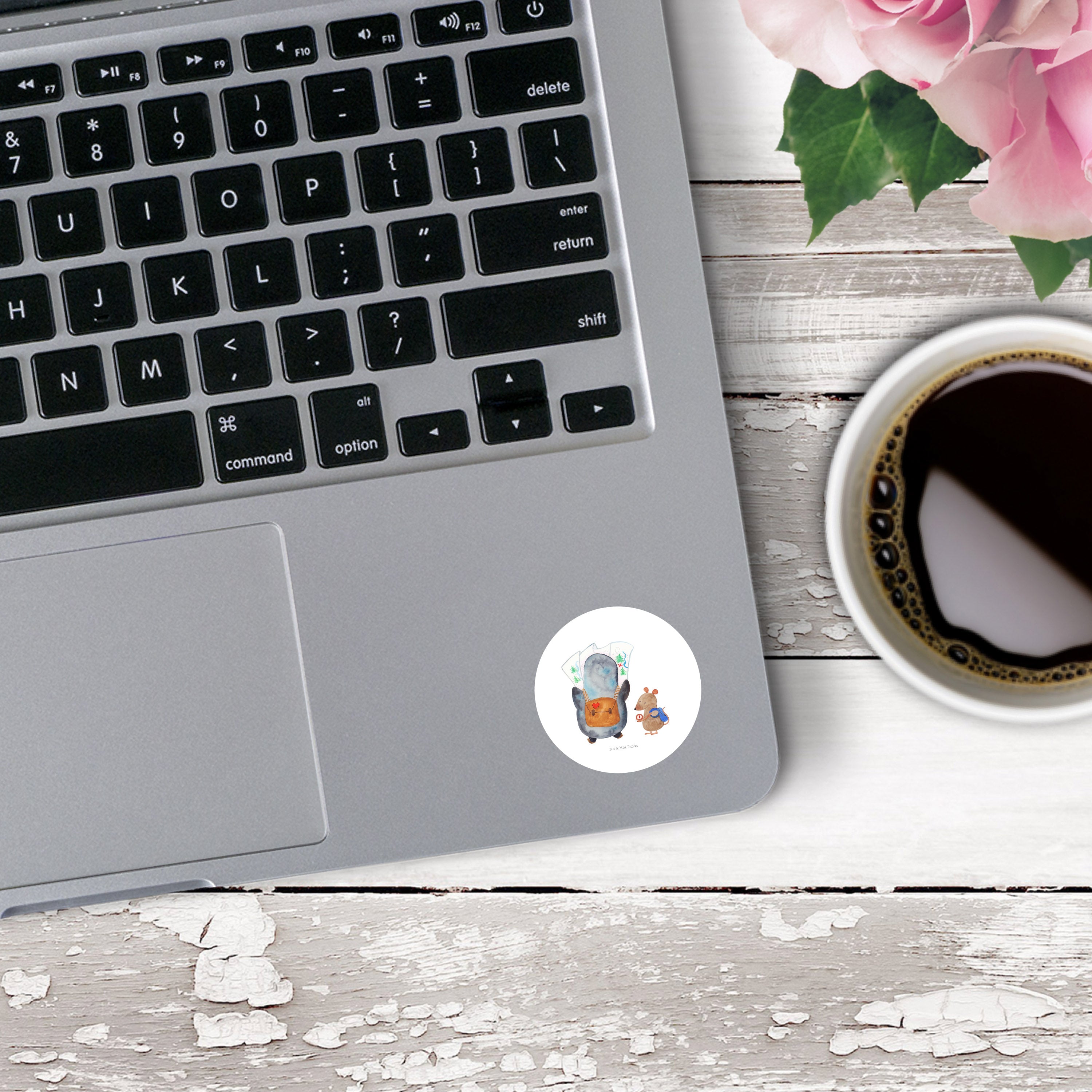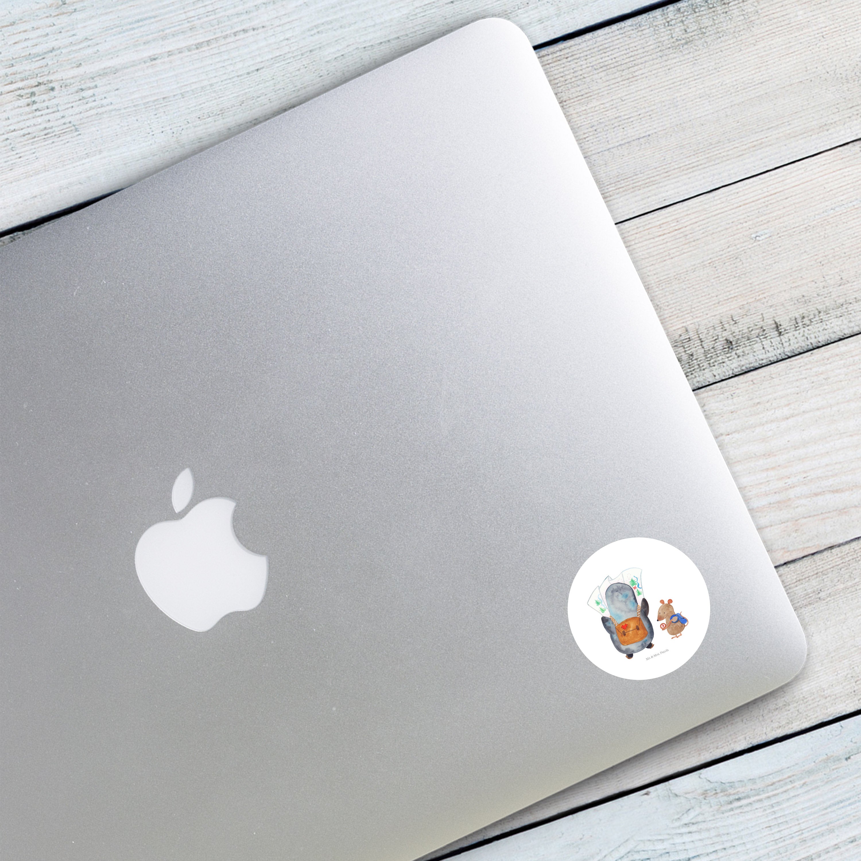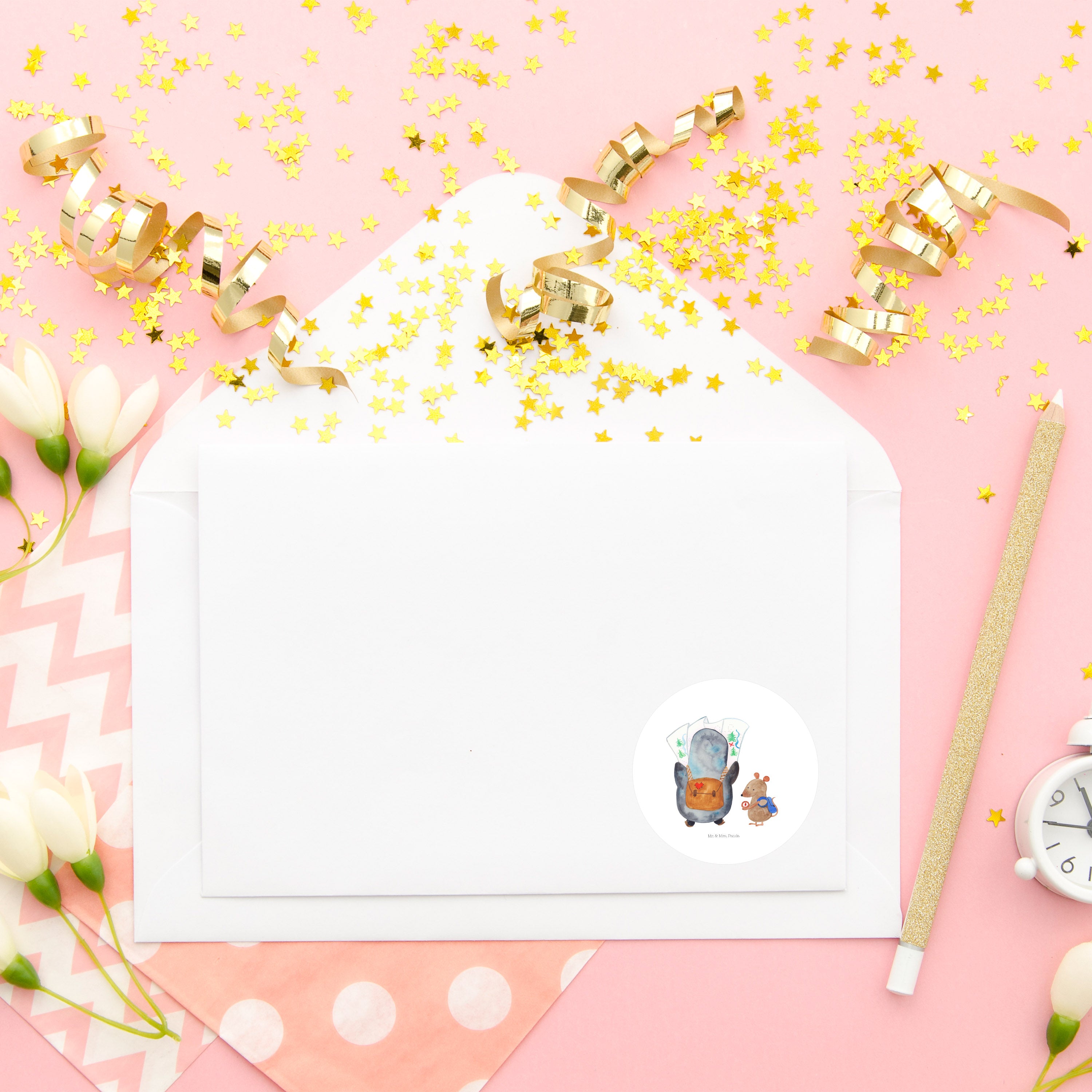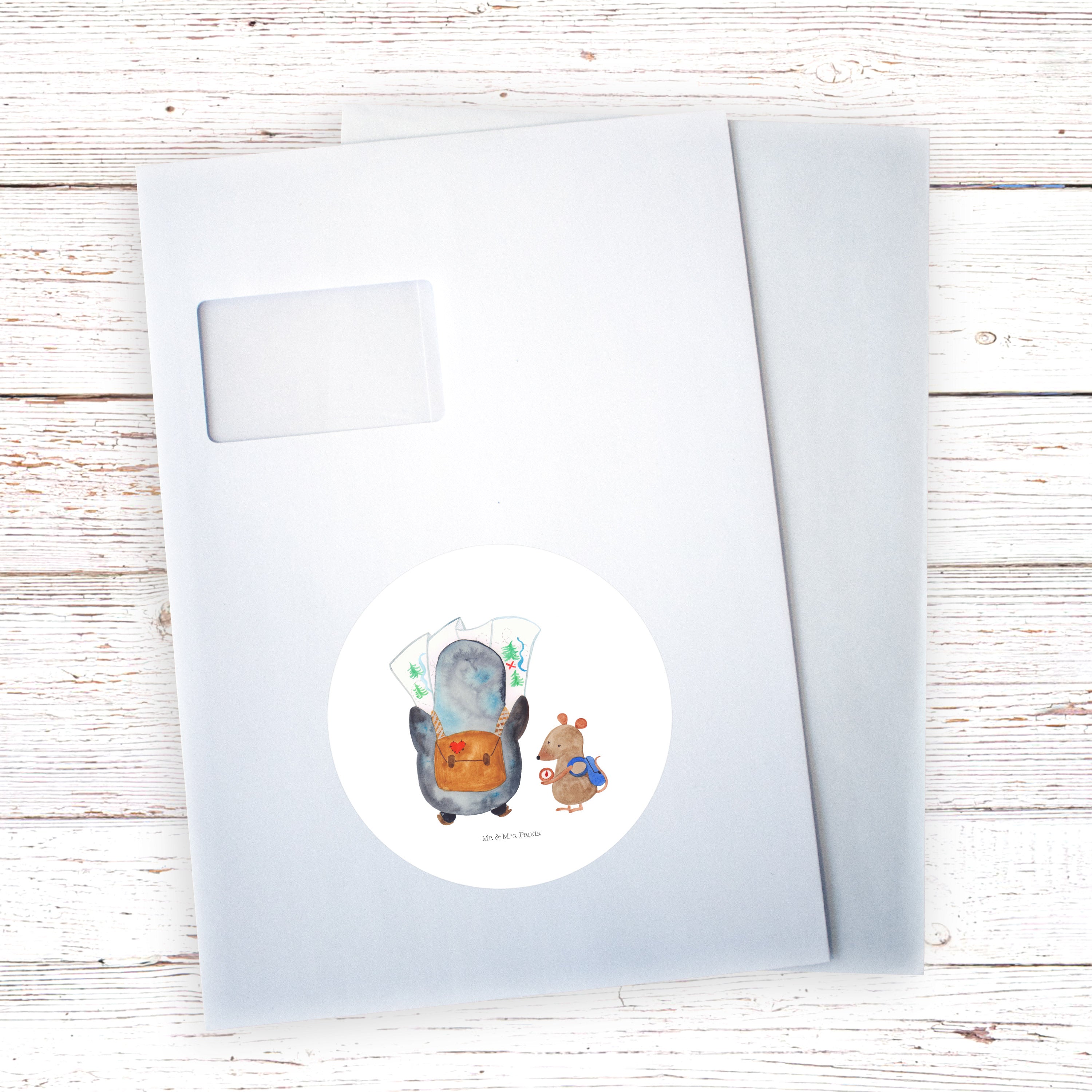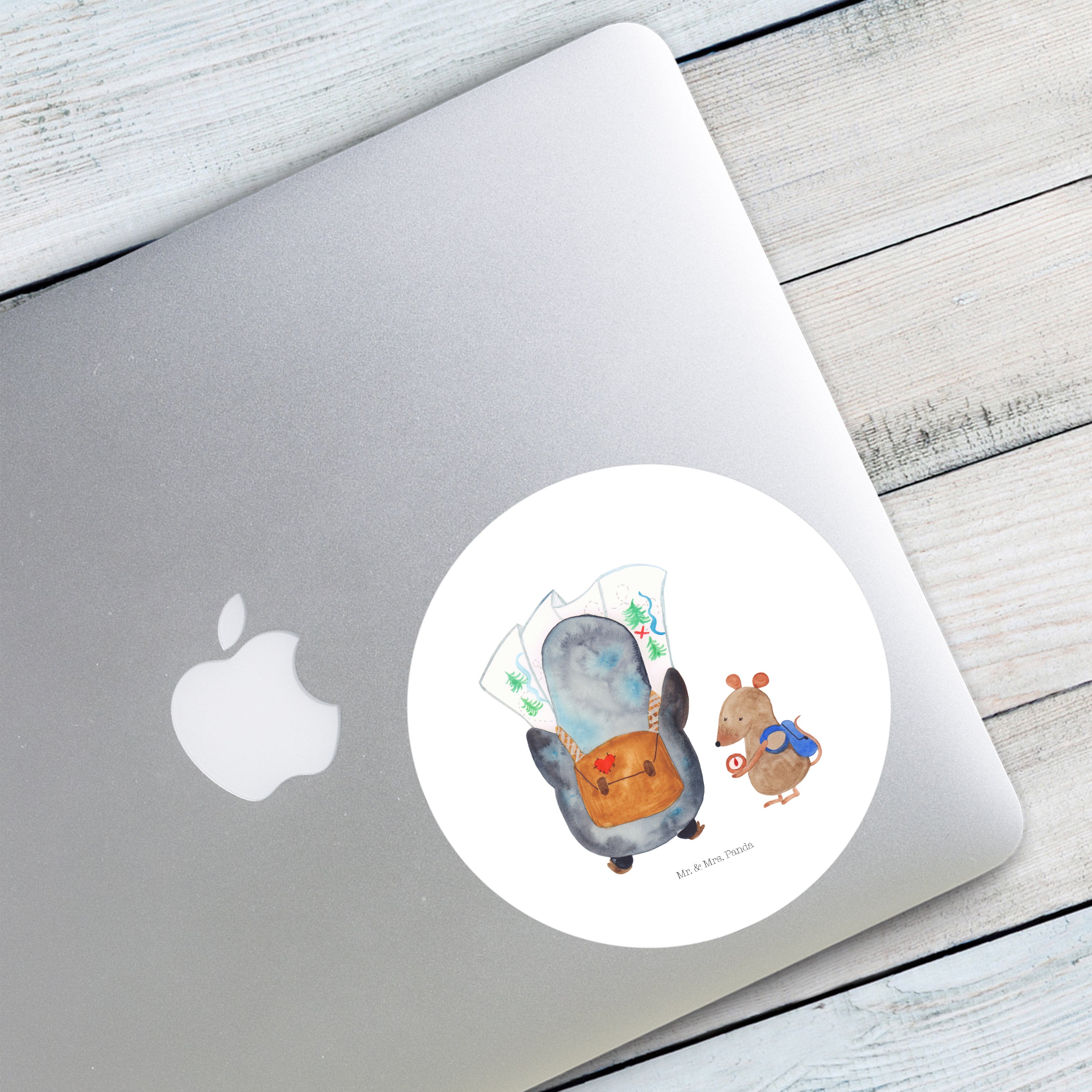 40mm Rund Aufkleber Pinguin & Maus Wanderer - mit Spruch - Eisblau