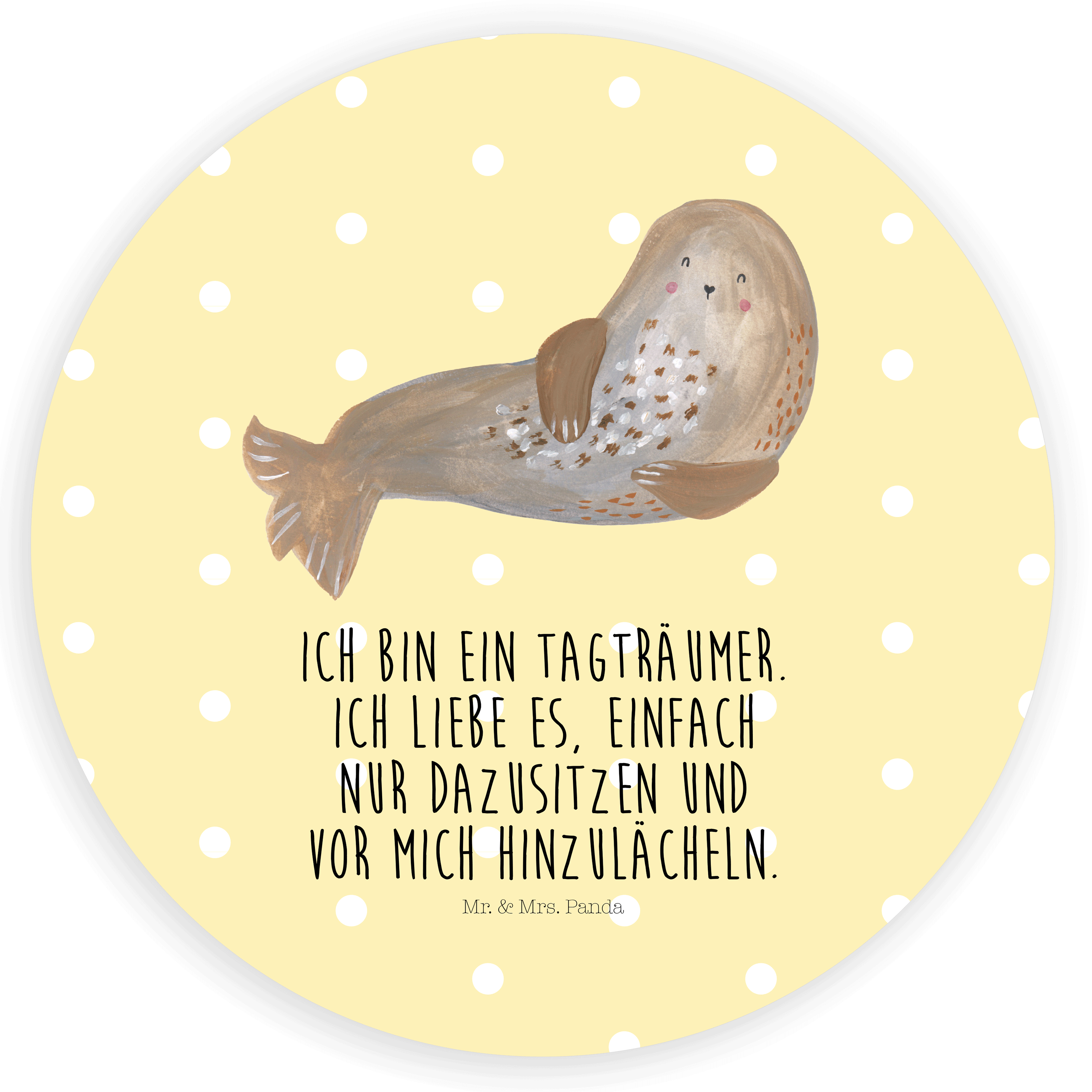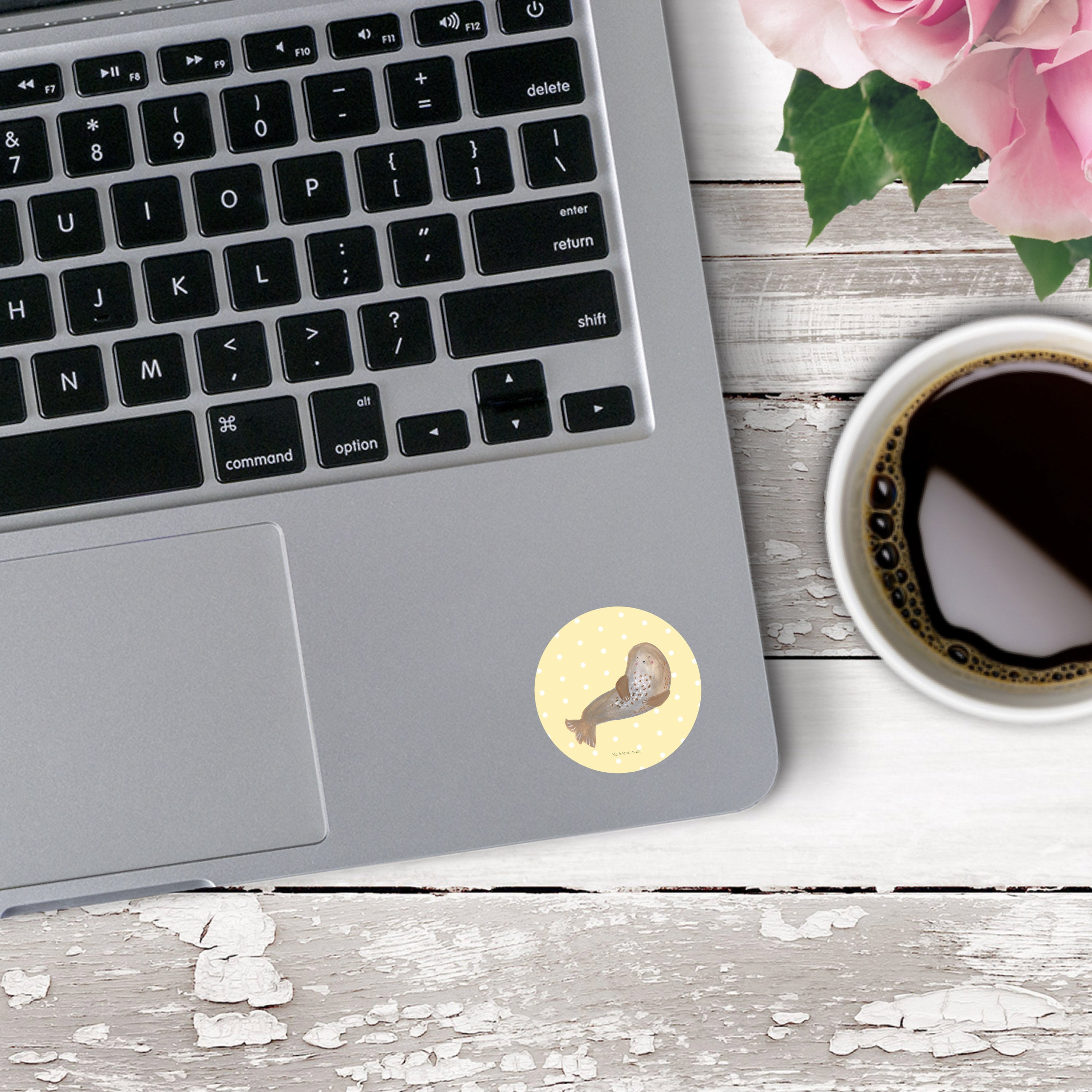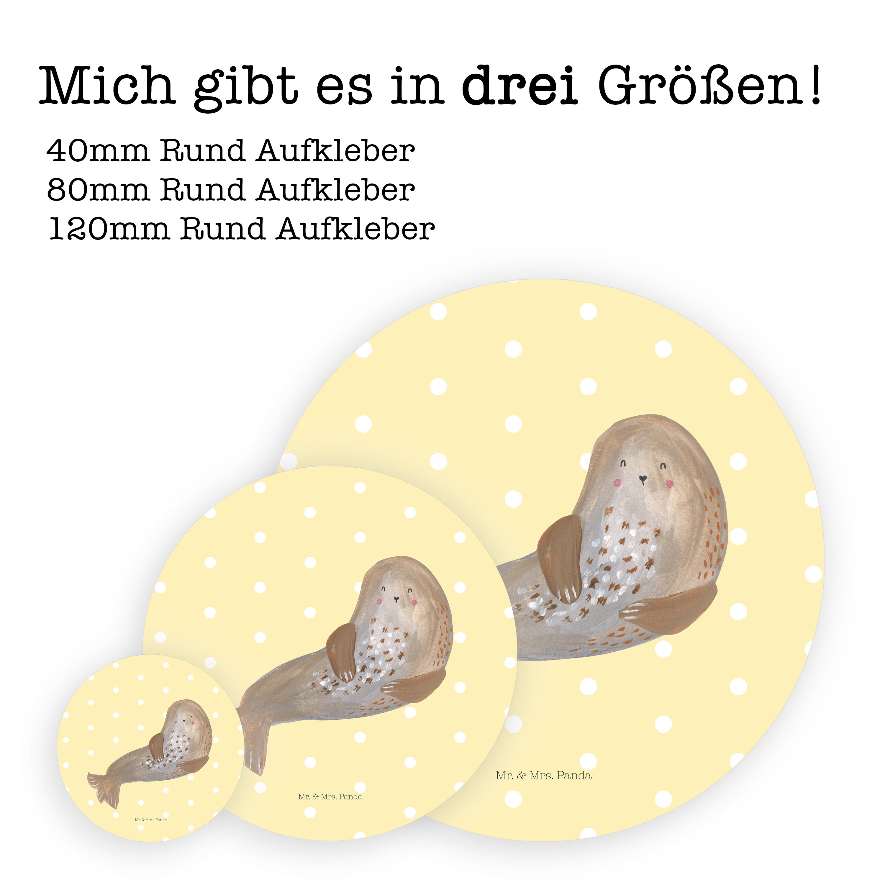 40mm Rund Aufkleber Robbe lachend - mit Spruch - Gelb Pastell