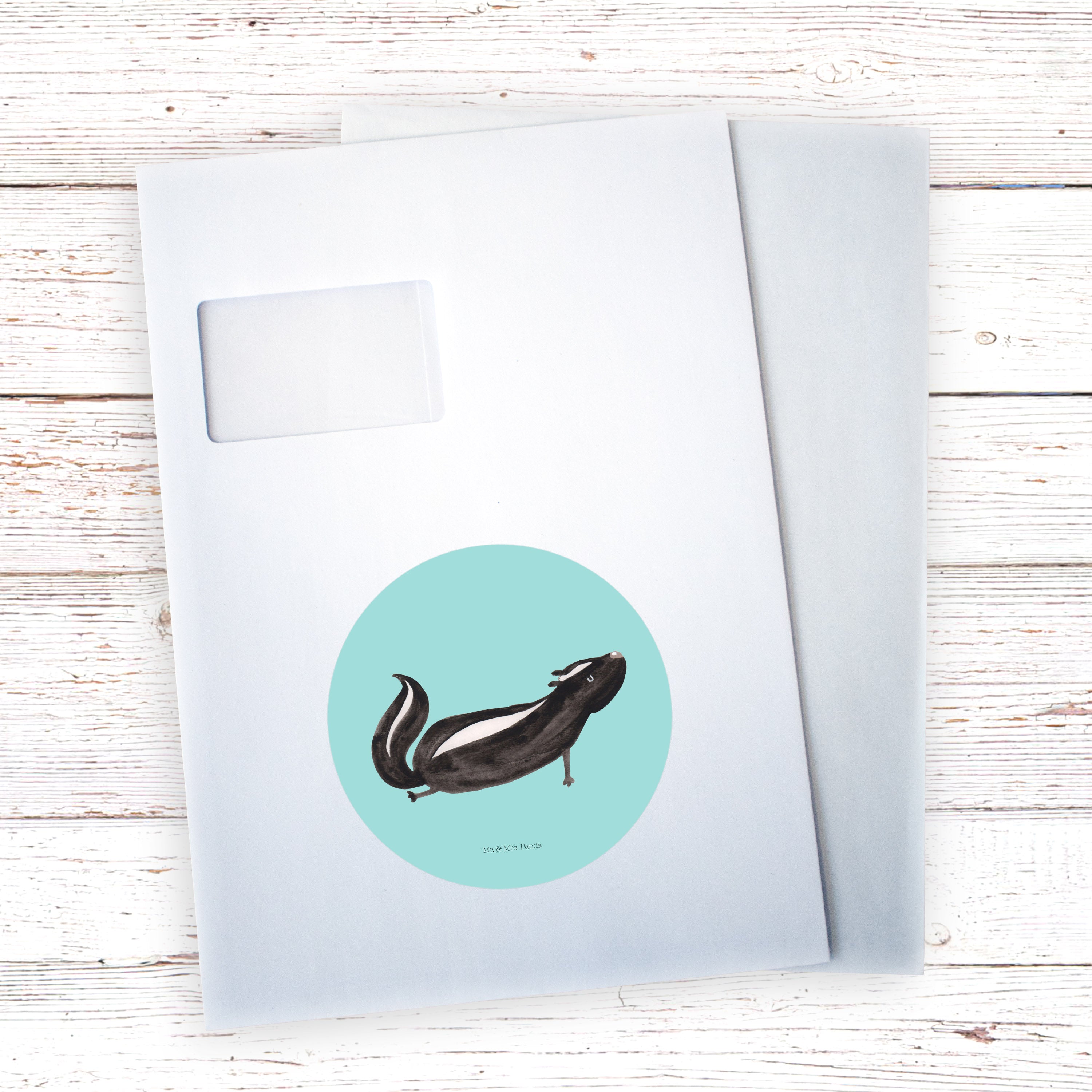 40mm Rund Aufkleber Stinktier Yoga - mit Spruch - Türkis Pastell