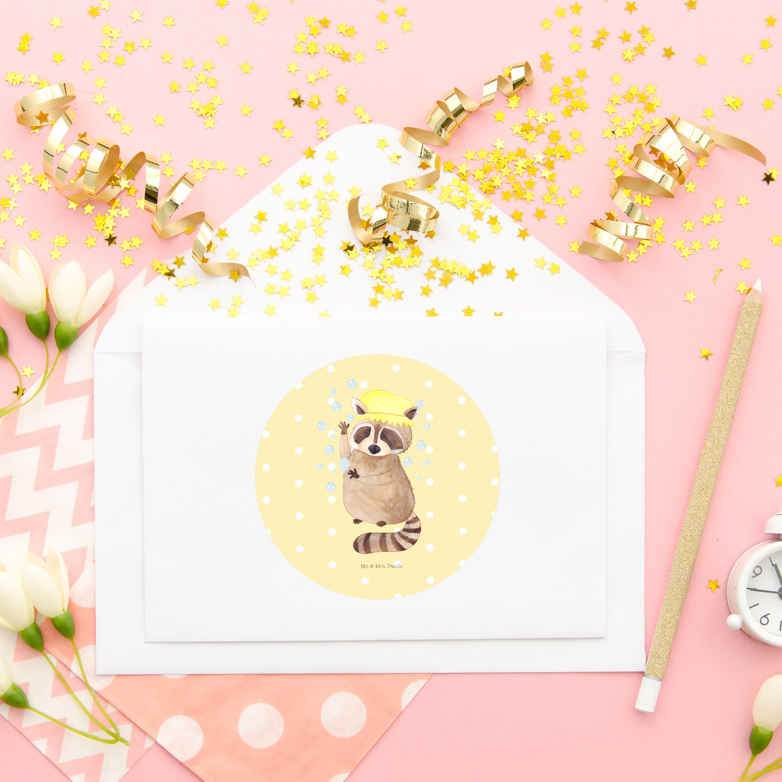 Mit unserem süßen Waschbär-Motiv wird das Duschen zum reinsten Vergnügen. Der niedliche Zeitgenosse badet genüsslich unter der Dusche und lässt dabei alle Sorgen des Alltags von dir abperlen. Als Mr. & Mrs. Panda haben wir mit viel Liebe zum Detail einen Waschbär gezeichnet, der deine Badezimmerwand in eine wundervolle Wohlfühloase verwandelt.