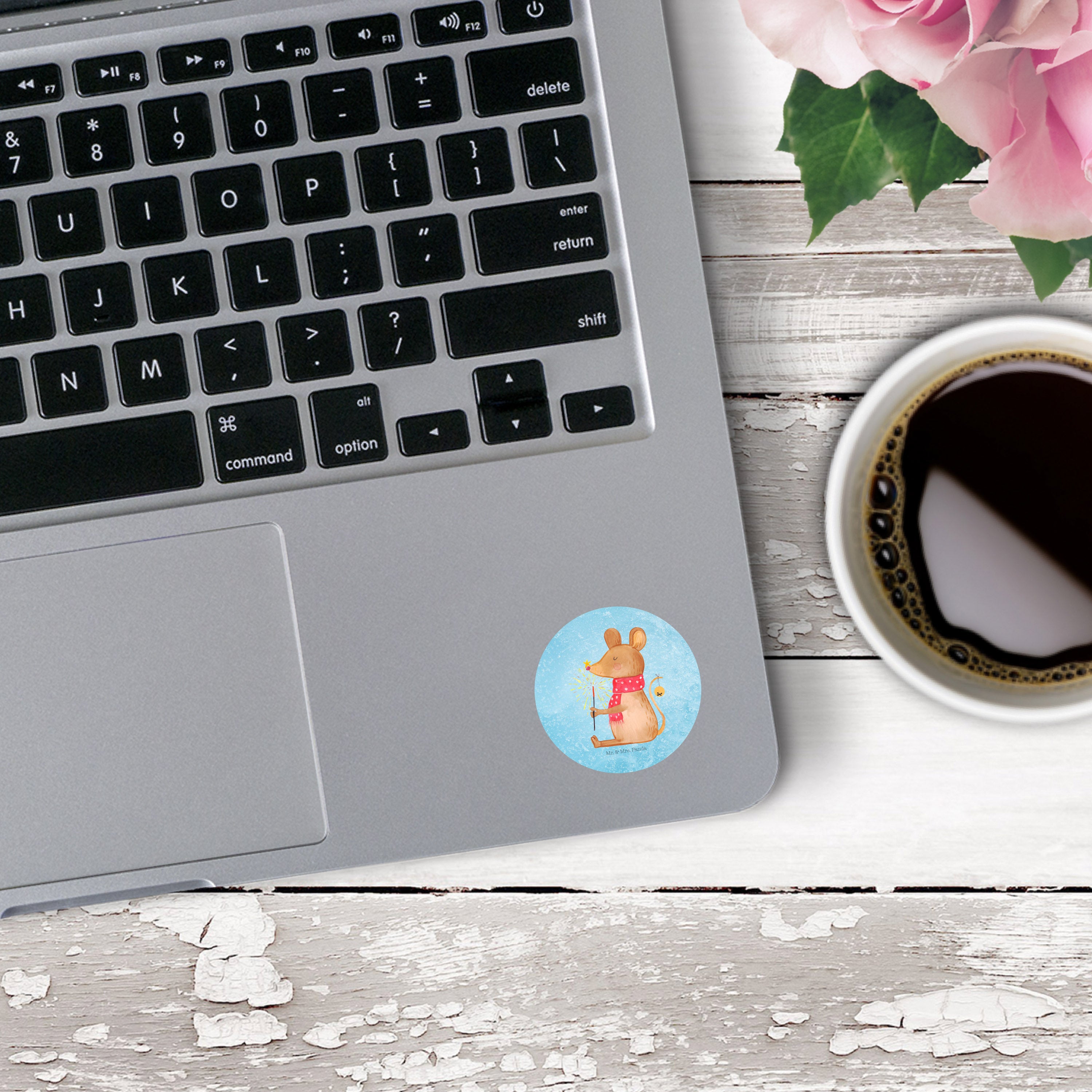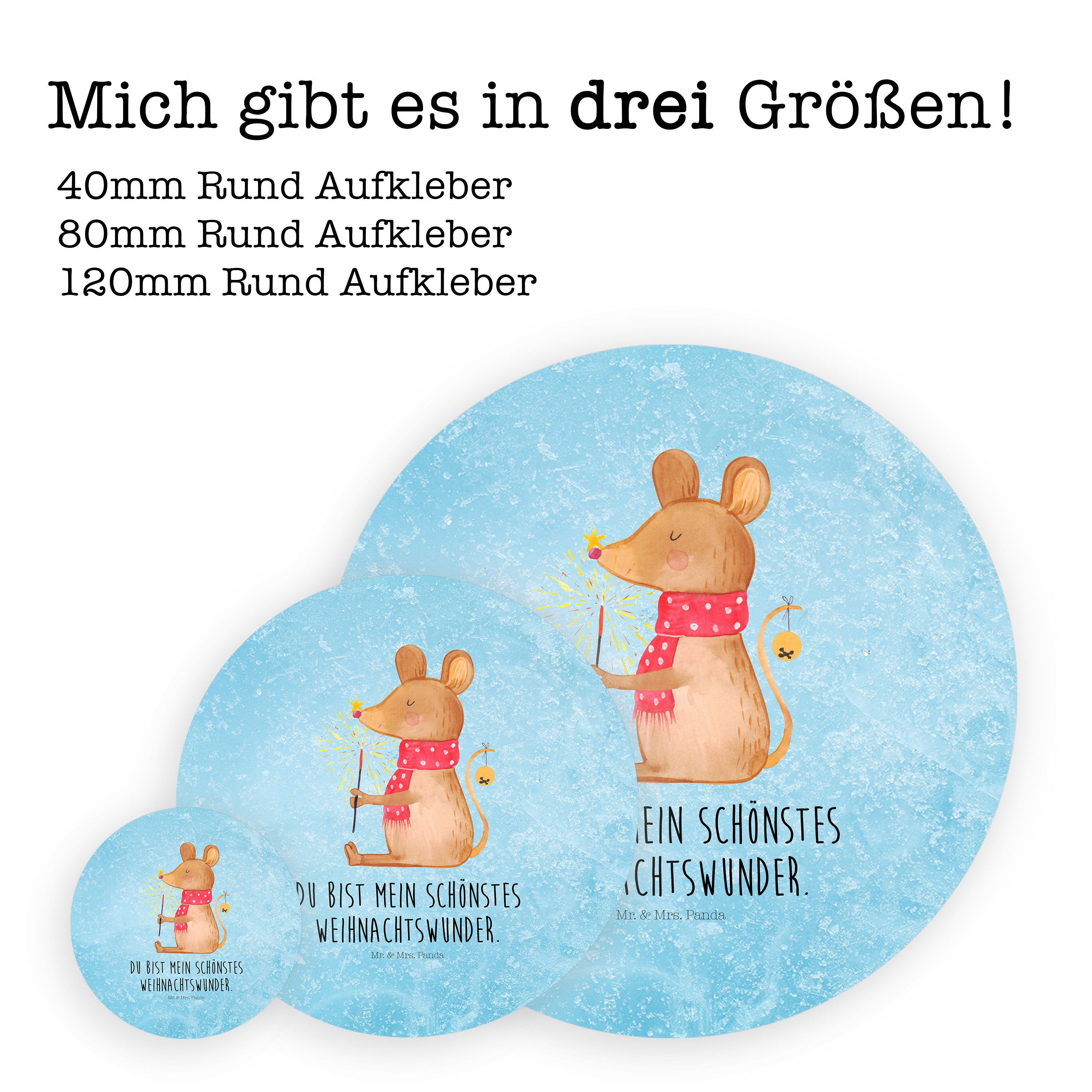 40mm Rund Aufkleber Weihnachtsmaus - ohne Spruch - Eisblau