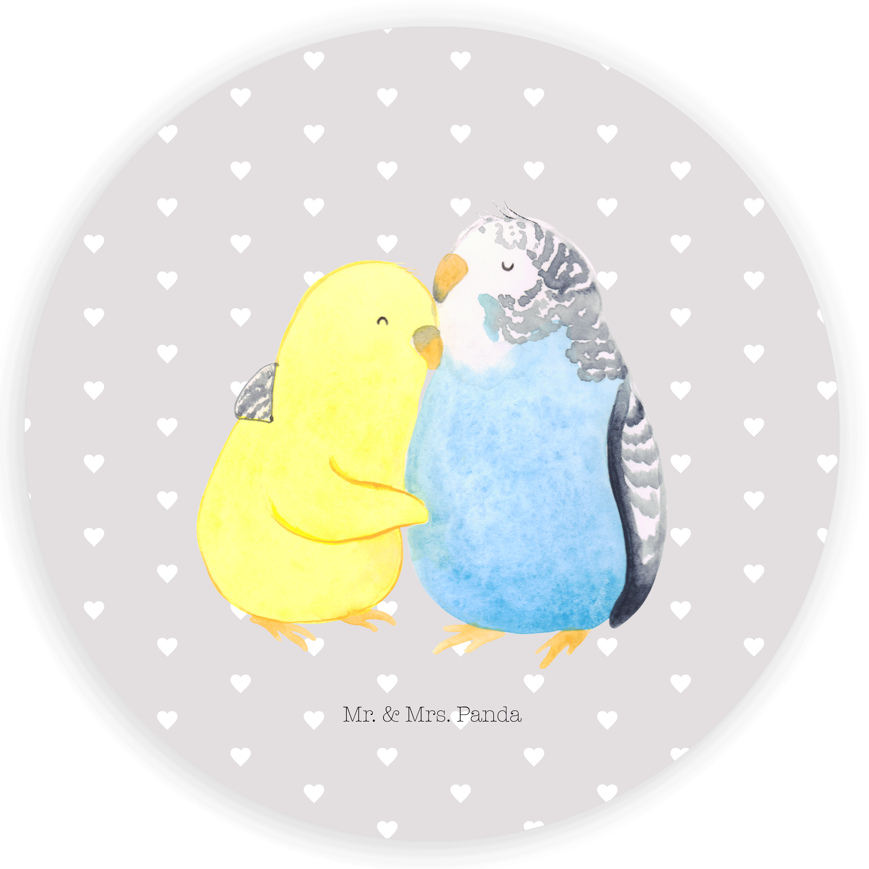 40mm Rund Aufkleber Wellensittich Liebe - Grau Pastell