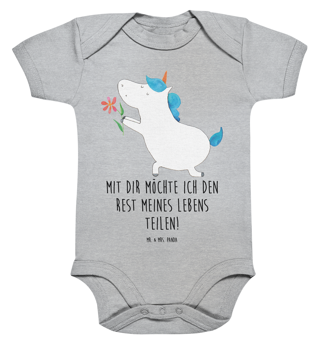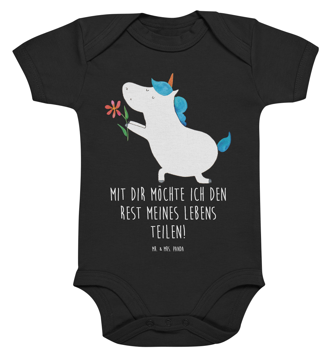 Organic Baby Body Einhorn Blume - 1. - 3. Monat - mit Spruch - Schwarz