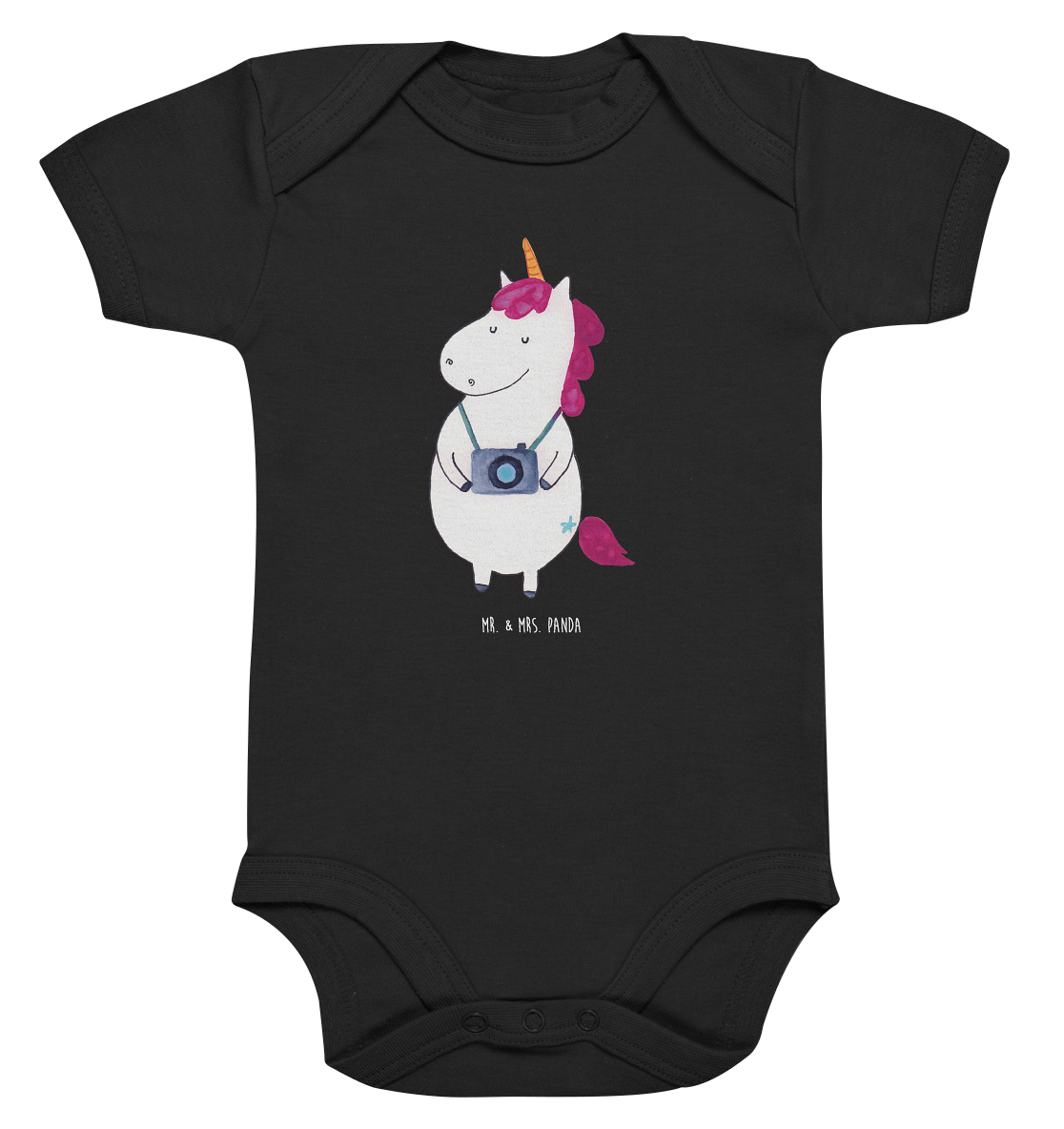 Organic Baby Body Einhorn Fotograf - 1. - 3. Monat - mit Spruch - Schwarz