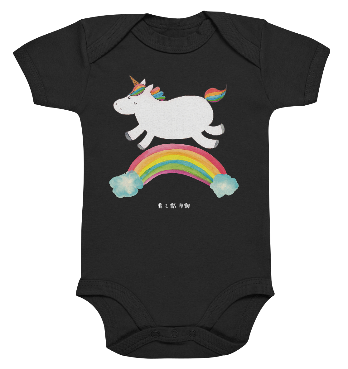 Organic Baby Body Einhorn Regenbogen - 1. - 3. Monat - mit Spruch - Schwarz